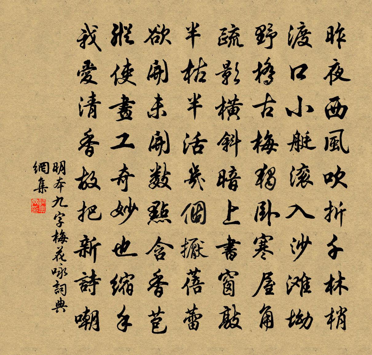 本公這首《九字梅花詠》流傳甚廣,同代中即獲盛譽。《風月堂雜誌》載:大書畫家趙子昂與本公為方外至交,對本公讚賞備至,翰林學士馮子振卻不以為然。趙子昂強拖本公同訪馮子振,馮出示自己所作《梅花百詠詩》,頗有炫耀之意。本公一覽,走筆亦成百首。馮子振仍未認可。本公出此《九字梅花詠》求和,馮悚然久之,難以下筆。乃服輸並致禮,遂成知交。這首詩用濃重的筆墨描繪寒梅忍受西風,含苞欲放的生動姿態。以詩喻人,提醒人們也要堅守自己的節操,保持自己的本性。