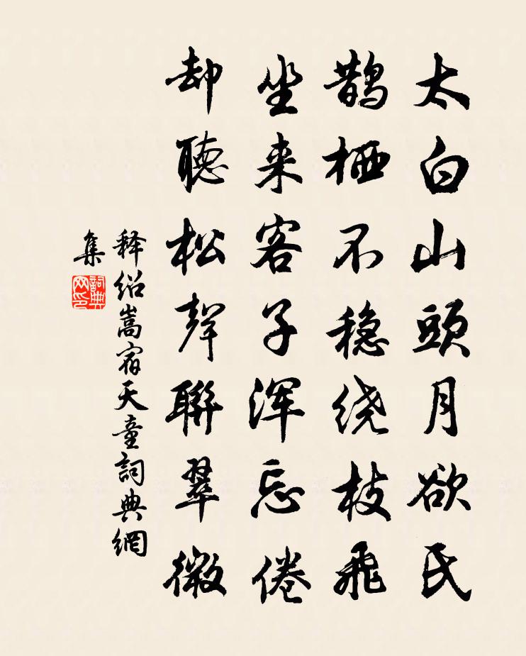 詩詞名句歷史字典書法欣賞書法字典國語詞典說文解字康熙字典古漢語字典標 題 作 者 詩 句 宿天童作者:釋紹嵩 朝代:宋代宿天童原文太白山頭月欲氏,鵲棲不穩繞枝飛。坐來客子渾忘倦,卻聽松聲聯翠微。詩詞問答問:宿天童的作者是誰?答:釋紹嵩問:宿天童寫於哪個朝代?答:宋代釋紹嵩宿天童書法欣賞宿天童書法作品詩詞推薦書齋俞桂〔宋代〕野草沿庭砌,清閒日掩扉。晚涼疎雨過,落葉覺蟬稀。天籟自鳴竹,砧聲誰搗衣。僧寮不過此,何必扣玄機。病起窺園十絕劉克莊〔宋代〕雲里金烏瞥見些,屋山鵲語亦查查。侵晨掃徑開籬戶,童子知翁出看花。左目痛六言九首劉克莊〔宋代〕晚歲甘為瞽史,前身不是離婁。喜梵夾書送老,惡巾箱本如讎。從登香爐峯詩鮑照〔南北朝〕辭宗盛荊夢。登歌美鳧繹。徒收杞梓饒。曾非羽人宅。羅景藹雲扃。沾光扈龍策。御風親列塗。乘山窮禹跡。含嘯冬佚名〔宋代〕蒼茫枯磧陰雲滿,古木號空晝光短。雲擁三峰岳色低,冰堅九曲河聲斷。浩汗霜風颳天地,溫泉火井無生意。澤國石中二首李壁〔宋代〕雲影沈沈玉一方,倚欄人意似濠梁。獨憐雪裡山茶樹,也向春風伴海棠。宮詞王珪〔唐代〕瑣聲金制閱門環,簾卷真珠十二間。別殿春風呼萬歲,中丞新押散朝班。憶母陳藻〔宋代〕蕭小八娘棄我去,我生方始十三年。如今七十零單五,生死途分竟杳然。題洛苑梧葉上天寶宮人〔唐代〕舊寵悲秋扇,新恩寄早春。聊題一片葉,將寄接流人。次韻陳季陵記夢陳棣〔宋代〕夜閒得安寢,方期萬事休。那知清夢中。蟻穴有勝游。朝把南柯麾,暮獵龜山頭。停杯猶未舉,俯仰二十秋。等為聞鵑楊公遠〔宋代〕春闌聞杜宇,歸去意難禁。蜀道連天嶮,郫城隱霧深。差池當日事,懊恨此生心。閱世多興廢,君休憶故林。寄題朱元晦武夷精舍十二釣磯楊萬里〔宋代〕月夜乘醉來,垂竿曲溪曲。水清無寸鱗,釣得半輪王。螢徐夤〔唐代〕月墜西樓夜影空,透簾穿幕達房櫳。流光堪在珠璣列,為火不生榆柳中。一一照通黃卷字,輕輕化出綠蕪叢。欲知水龍吟劉克莊〔宋代〕依然這後村翁,阿誰改換新曹號。虛名砂礫,旁觀冷笑,何曾明道。吟歇後詩,說無生話,熱瞞村獠。被兒童盤問客思釋紹嵩〔宋代〕欲暮多羈思,客行悲故鄉。背關余古木,落葉墮寒霜。驛樹收殘雨,柴門掩夕陽。此身南復北,雙鬢易蒼浪。離楚夜泊高麗館寄楊克一甥四首張耒〔宋代〕去城未五里,夜纜系衰柳。水亭暗風雨,人散聞吠狗。平生足羈旅,沉此還往久。有感不自知,悽然獨回首。送伯舅汪運乾樓鑰〔宋代〕人生自古悲別離,別離今日何足悲。試問今日行者誰,鄞江名族真男兒。虬須燕頷軀十圍,凜凜端有熊豹姿。毅然梅陳藻〔宋代〕野水橋邊幾樹梅,歲寒款款向人開。精神別帶陽春到,造化勻分臘月來。滿眼松筠皆臭味,一天霜雪是胚胎。看花同道士錢泠然尋澗水源陳師道〔宋代〕曉領黃冠子,步尋東澗源。拖筇探清淺,垂手弄潺湲。岸閣殘花片,槎留舊漲痕。鳳潛丹穴邃,龍臥古潭渾。修竹六州佚名〔宋代〕崇嚴配,衢室饗中宸。尋漢禮,崇唐典,襲映情文。方寶輅、羽衛星陳。藻繡填馳路,昭爛如雲。靈顧諟,德升聞名句推薦亦有白骨歸鹹陽,營家各與題本鄉。王建《渡遼水》 窮冬烈風,大雪深數尺,足膚皸裂而不知。宋濂《送東陽馬生序》 世間花葉不相倫,花入金盆葉作塵。李商隱《贈荷花》 料有牽情處,忍思量、耳邊曾道。時彥《青門飲·寄寵人》 年年歲歲望中秋,歲歲年年霧雨愁。曾幾《癸未八月十四日至十六夜月色皆佳》 大難不死,必有後祿。馮夢龍《喻世明言·卷二十一》 秋娘渡與泰娘橋,風又飄飄,雨又蕭蕭。蔣捷《一剪梅·舟過吳江》 蕭蕭遠樹疏林外,一半秋山帶夕陽。寇準《書河上亭壁》 暗凝佇。近重陽、滿城風雨。周密《掃花游·九日懷歸》 朱顏空自改,向年年、芳意長新。韓縝《鳳簫吟·鎖離愁》