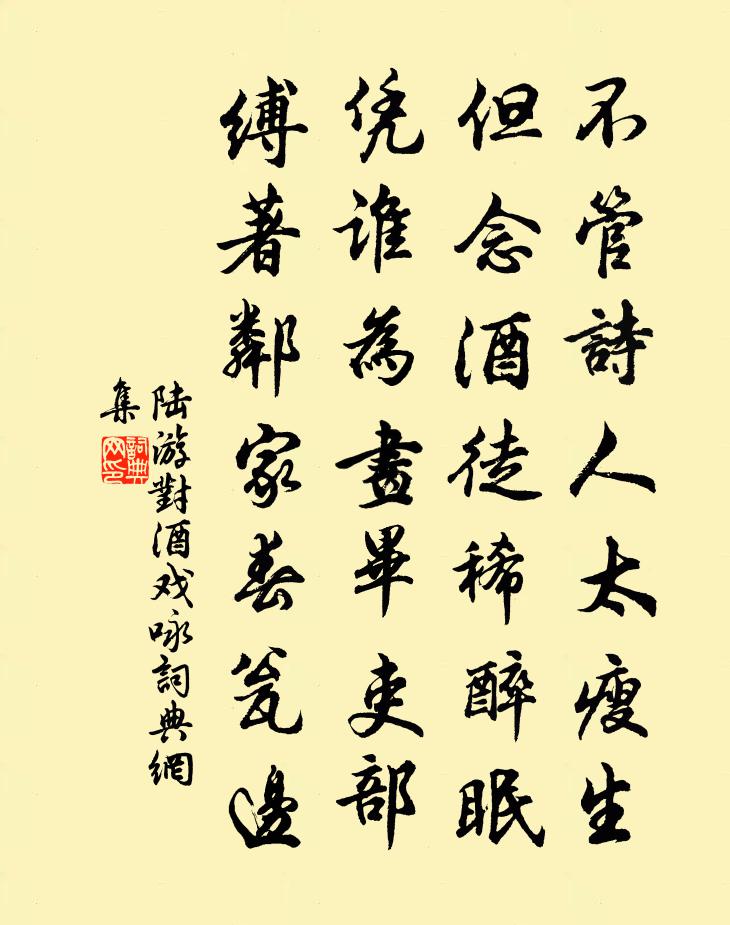不管詩人太瘦生,但念酒徒稀醉眠。憑誰為畫畢吏部,縛著鄰家春瓮邊。