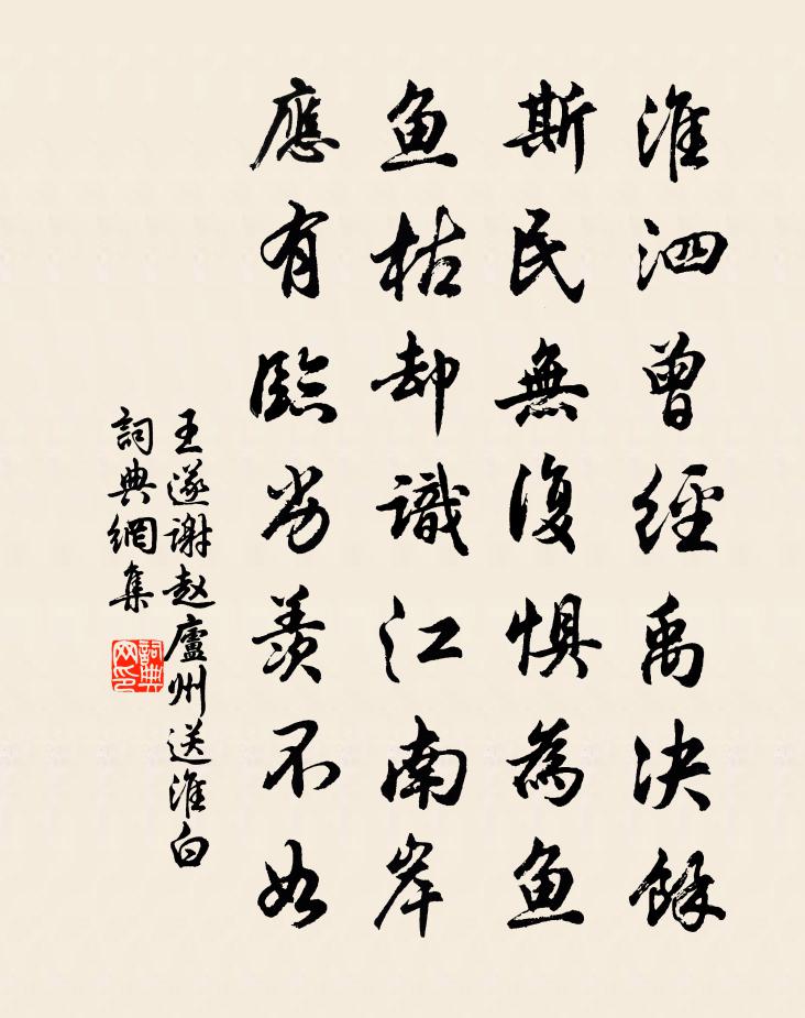 詩詞名句歷史字典書法欣賞書法字典國語詞典說文解字康熙字典古漢語字典標 題 作 者 詩 句 謝趙廬州送淮白作者:王遂 朝代:宋代謝趙廬州送淮白原文淮泗曾經禹決余,斯民無復懼為魚。魚枯卻識江南岸,應有臨劣羨不如。詩詞問答問:謝趙廬州送淮白的作者是誰?答:王遂問:謝趙廬州送淮白寫於哪個朝代?答:宋代王遂謝趙廬州送淮白書法欣賞謝趙廬州送淮白書法作品詩詞推薦避地李山舒岳祥〔宋代〕山居門早閉,雪後樹重青。不為艱危迫,誰能險阻登。寒機與舂應,村誦隔溪聽。絕枯觀滄海,海平峰上層。論語絕句一百首張九成〔宋代〕嘗稱管仲以如仁,仁者要之即是人。未可以仁稱管仲,可於人上試經綸。舟中值雨裴刁二君相與見過梅堯臣〔宋代〕江上渰淒淒,天形接野低。岸痕生舊水,馬跡踏春泥。風急侵衣重,山昏卷幔迷。誰驚二客論,不愧巨源妻。歡喜吟邵雍〔宋代〕揚善不揚惡,記恩不記讎。人人自歡喜,何患少交遊。偈頌六十七首釋原妙〔宋代〕吃粥了也,洗缽盂去,矢上加尖,一場敗露。西峰今日忍俊不禁,卻要向鷺鷥腿上割股。頌古四十八首釋慧開〔宋代〕西來直指,事因囑起。找聒叢林,元來是你。七夕崔顥〔唐代〕長安城中月如練,家家此夜持針線。仙裙玉佩空自知,天上人間不相見。長信深陰夜轉幽,瑤階金閣數螢流。班姬枕上陸游〔宋代〕斷香猶在夢初回,燈似孤螢闔復開。怪底詩情清徹骨,數聲新雁枕邊來。賦梅堂閒吟陳宓〔宋代〕地宜冬暖早韶華,回首牆東李亦花。畢竟晨妝自羞澀,豈堪位置壽陽家。移九江(效何水部。余自九江及今周一紀矣)李紳〔唐代〕秋波入白水,帆去侵空小。五兩劇奔星,檣烏疾飛鳥。盆城依落日,盆浦看雲眇。雲眇更蒼蒼,匡山低夕陽。楚客代琵琶婦解嘲陸宇燝〔清代〕不見春風花,花落隨地飛?不見南山鳥,年年擇新枝?抱此區區意,紅顏須及時。“非不慕古人,禮法難療飢。”送富朝奉還闕楊時〔宋代〕君不見慶曆承平道如砥,馳車八荒同一軌。虜人鴟張怒螳臂,百萬雲屯若封豕。又不見朔方橫流漲天起,腐麥蛾飛和大閫芍藥讌韻陳杰〔宋代〕雲霞一片從天墜,誰為淮南種好春。揮羽本調金鼎手,對花未老玉關人。萬紅清洛無前譜,四瑞平山曠後塵。坐上最高樓(鄉老十人皆年八十,淳熙丁酉三月十九日,作慶勸酒)史浩〔宋代〕當年尚父,一個便興周。今十倍,更何憂。沖融道貌丹為臉,扶疏漆發黑盈頭。世方知,非熊老,聚吾州。有智略謾書周邦彥〔宋代〕舊識回文譜,新諧遠調謳。望歸朝對鏡,合飲夜藏鉤。融蠟粘花蔕,燒檀暖麝油。雙眉誰與畫,張敞自風流。水調歌頭(同徐師川泛太湖舟中作)張元乾〔宋代〕落景下青嶂,高浪卷滄洲。平生頗慣,江海掀舞木蘭舟。百二山河空壯。底事中原塵漲。喪亂幾時休。澤畔行吟處洞虛堂白玉蟾〔宋代〕青牛人去幾千年,此道分明在眼前。要識箇中端的意,一堂風冷月嬋娟。郊廟歌辭。周朝饗樂章。忠順佚名〔唐代〕歲迎更始,節及朝元。冕旒仰止,冠劍相連。八音合奏,萬物齊宣。常陳盛禮,願永千年。酬李侍御書記秋夕雨中病假見寄孟郊〔唐代〕秋風繞衰柳,遠客聞雨聲。重茲阻良夕,孤坐唯積誠。果枉移疾詠,中含嘉慮明。洗滌煩濁盡,視聽昭曠生。未覺海棠落盡次謝司法韻方岳〔宋代〕花前誰與東西玉,但遣能詩一夔足。雨寒無奈雪飄零,酒醒卻愁香陸續。阿嬌深貯黃金屋,阿環初出華清浴。騎{名句推薦還將兩行淚,遙寄海西頭。孟浩然《宿桐廬江寄廣陵舊遊》 望雲慚高鳥,臨水愧游魚。陶淵明《始作鎮軍參軍經曲阿作》 形影忽不見,翩翩傷我心。曹植《雜詩六首·其一》 里仁為美,擇不處仁,焉得知?孔子弟子《論語·里仁篇》 桃李風前多嫵媚,楊柳更溫柔。辛棄疾《武陵春·桃李風前多嫵媚》 君子不怨天,不尤人。孟子《孟子·公孫丑章句下·第十三節》 至今思項羽,不肯過江東。李清照《夏日絕句》 蟲有虺者,一身兩口,爭食相齕遂相殺也,人臣之爭事而亡其國者,皆虺類也。韓非及後人《韓非子·說林下》 碧野朱橋當日事,人不見,水空流。秦觀《江城子·西城楊柳弄春柔》 堪笑楚江空渺渺,不能洗得直臣冤。文秀《端午》