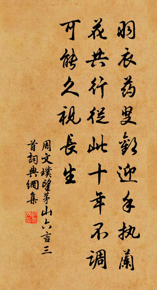 詩詞名句歷史字典書法欣賞書法字典國語詞典說文解字康熙字典古漢語字典標 題 作 者 詩 句 望茅山六言三首作者:周文璞 朝代:宋代望茅山六言三首原文羽衣藥叟歡迎,手執蘭花共行。從此十年不調,可能久視長生。詩詞問答問:望茅山六言三首的作者是誰?答:周文璞問:望茅山六言三首寫於哪個朝代?答:宋代周文璞望茅山六言三首書法欣賞望茅山六言三首書法作品詩詞推薦詠史下王荊公陳普〔宋代〕兩鳥相酬聲沸天,治平重新一啼鵑。鴛鸞鷗鷺無棲處,緘口於今三百年。次韻夏侯太沖秀才秦觀〔宋代〕儒官飽閒散,室若僧坊靜。北窗腹便便,支枕看斗柄。或時得名酒,亭午猶中聖。醒來復何事,弄筆賦秋興。焉知白拒霜林景熙〔宋代〕美人瀟灑江水東,玉為肌骨冰為容。豈無嫣紅鬧別浦,自性淡佇羞迎逢。燕脂百斛斗宮飾,白帝有令毋纖稼。霜紈秋日遣興孫應時〔宋代〕清秋佳月不尋常,何限歌樓醉夜長。要是超然塵外客,一杯差不負孤光。依韻和郭秘校昭亭山偶作梅堯臣〔宋代〕知君棄官後,江上尋名山。心既慣世內,跡欲還人間。昭亭忽來過,覽古興長嘆。野寺拂塵壁,丹陽已斕斒。殿角頌古十九首釋法全〔宋代〕日暖風和鶯囀新,柳垂金線擊東君。東君不惜無私力,一點花紅一點春。曲江秋佚名〔宋代〕如何是道。這一點、古今尋求顛倒。人人有分,個個不虧少。皆因動念錯,染著處、便生煩惱。若也般般放下,有寄留交代元子發曾鞏〔宋代〕青雲寶構雖同直,白髮魚符各未歸。倚玉詎應公論許,續貂還恐邑人非。莫辭海畔留連久,須惜天涯故舊衡。預想茅屋薛嵎〔宋代〕茅舍竹椽短,不勞朱惡施。高無神鬼瞰,貧與子孫宜。近古意全朴,當風勢亦危。梅花有幽致,一樹隔疎籬。桃花元稹〔唐代〕桃花淺深處,似勻深淺妝。春風助腸斷,吹落白衣裳。漢宮春(老人慶七十)洪咨夔〔宋代〕南極仙翁,占太微元蓋,洞府為家。身騎若木倒景,手弄青霞。芙蓉飛旆,映一川、新綠平沙。好與問,東風結子緣識宋太宗〔宋代〕靜非山里住,鬧即擬何之。緣識歸空寂,生前舊亦知。長門怨黃順之〔宋代〕錦瑟新添一歲塵,寶鸞空負百年身。建章萬戶鶯花好,只有長門更不春。元夕偶成蘇籀〔宋代〕里唱塗謳鐃吹轟,軟塵梁苑記前生。寶珠穿蟻嬉遊肆,蓮蕊然犀 * 。透碗燈繁人晝繡,隔羅光醖酒澠清。春娃吳音子晁端禮〔宋代〕細想當初事,又非是、取次相知。一年來、覰著尚遲。疑□時、敢共些兒。似恁秤停期克了,便一成望不相離。卻宿山中寺李中〔唐代〕寄宿深山寺,惟逢老病僧。風吹幾世樹,雲暗暮秋燈。瞑目忘塵慮,談空入上乘。明晨返名路,何計戀南能。四月十七日侍立集英殿觀進士唱名楊萬里〔宋代〕殿上臚傅第一聲,殿前拭目萬人驚。名登龍虎黃金榜,人在煙霄白玉京。香滿乾坤書一卷,風吹鬢髮雪千莖。舊時文儒見和四詩欽嘆高妙謹用韻為答卒章問訊汝陳長方〔宋代〕記公當日事,天上冠群英。偕計旅庭實,稚齒先飛聲。胸中五色絹,補袞澤斯民。雲胡卷而歸,不效岐山鳴。翛然次韻和楊公濟見贈三首孔武仲〔宋代〕魯國鯫生與俗同,何嘗孤訐慕龍逢。邑佳不及陶彭澤,官小差肩邴曼容。故國安棲無一瓦,高堂失養感千鍾。賢豪元日溫庭筠〔唐代〕神耀破氛昏,新陽入晏溫。緒風調玉吹,端日應銅渾。威鳳蹌瑤簴,升龍護璧門。雨暘春令煦,裘冕晬容尊。名句推薦志士仁人無求生以害仁,有殺身以成仁。孔子弟子《論語·衛靈公篇》 蘇小門前柳萬條,毿毿金線拂平橋。溫庭筠《楊柳八首·其三》 煢煢白兔,東走西顧。佚名《古艷歌》 與人不求備,檢身若不及佚名《尚書·商書·伊訓》 昨日入城市,歸來淚滿巾。張俞《蠶婦》 妖嬈艷態,妒風笑月,長殢東君。李清照《慶清朝·禁幄低張》 少室眾峰幾峰別,一峰晴見一峰雪。李頎《少室雪晴送王寧》 砌下落花風起,羅衣特地春寒。馮延巳《清平樂·雨晴煙晚》 守身必謹嚴,凡足以戕吾身者宜戒之王永彬《圍爐夜話·第九八則》 故人早晚上高台。贈我江南春色、一枝梅。舒亶《虞美人·寄公度》