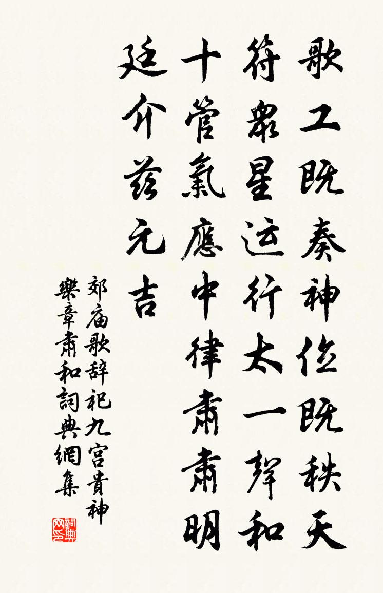 詩詞名句歷史字典書法欣賞書法字典國語詞典說文解字康熙字典古漢語字典標 題 作 者 詩 句 郊廟歌辭。祀九宮貴神樂章。肅和作者:佚名 朝代:唐代原文歌工既奏,神位既秩。天符眾星,運行太一。聲和十管,氣應中律。肅肅明廷,介茲元吉。詩詞問答問:《郊廟歌辭。祀九宮貴神樂章。肅和》的作者是誰?答:佚名問:該詩寫於哪個朝代?答:唐代問:佚名的名句有哪些?答:佚名名句大全書法欣賞郊廟歌辭。祀九宮貴神樂章。肅和書法作品詩詞推薦無夢令馬鈺〔元代〕三髻山侗愛笑。好弱歸之一笑。不是我如斯,有個內容欣笑。欣笑。欣笑。真樂自然歡笑。雜詠十首方鳳〔宋代〕馬舞睨祿山,猴朝識朱溫。人豈不若獸,變故輒負恩。道從上人釋祖欽〔宋代〕惟道是從,惟心是宗。空即是色,色即是空。夢幻了了,來去匆匆。水中之月,樹上之風。作如是觀,無塞不通。正初奉酬歙州刺史邢群杜牧〔唐代〕翠岩千尺倚溪斜,曾得嚴光作釣家。越嶂遠分丁字水,臘梅遲見二年花。明時刀尺君須用,幽處田園我有涯。一壑禁酒陳普〔宋代〕五穀之中有 * ,堯舜未嘗得涓滴。剛柔張馳理或容,兩間緣此生儀狄。初如濫觴出眠山,中作江漢橫人間。沃焦春曉謠張玉孃〔宋代〕到枕一聲鶯,曉窗生虛白。煙柳影參差,薹薇紅半拆。乘風雙蛺蝶,欲入珠簾隔。獨向花下吟,翠知剌羅襟。徘徊明月篇蒲壽宬〔宋代〕海賈不愛死,適值驪龍眠。深淵頃刻命,平地千丈川。丈夫豈無志,固為兒女煎。彼美頭上粲,它人口中涎。鮫人詠琵琶(一作太宗詩)佚名〔唐代〕半月無雙影,金花有四時。摧藏千里態,掩抑幾重悲。促節縈紅袖,清音滿翠帷。駛彈風響急,緩曲釧聲遲。空餘暮春聯句九首許月卿〔宋代〕燮調能十雨,具訓微三風。希聖如顏子,何時笑叔通。明經徒為利,穢史不能公。落落經綸腹,悠悠錦繡胸。茶煙觀舞梅堯臣〔宋代〕誰憐嬌小好腰支,老大而今莫那伊。太守風流未應淺,更教多唱楚人辭。和卓廷瑞贈詩之韻四絕陳淳〔宋代〕長書一卷墨新題,志在斯民壽域躋。歷歷愛君憂國語,施行須自起鋤犁。行香子王哲〔元代〕五鼓才成,土德行香。偏能將、四象包藏。如今盡顯,聚在中央。沒白歸青,紅歸黑,不歸黃。已證空虛,便出昆望江南(六·江景)王琪〔宋代〕江南雨,風送滿長川。碧瓦煙昏沈柳岸,紅綃香潤入梅天。飄灑正瀟然。朝與暮,長在楚峰前。寒夜愁敧金帶枕,送津赴紹興倅八首吳芾〔宋代〕當年我鎮臥龍山,曾種千花與萬竿。歲久不知無恙否,因來且為報平安。張猩猩胡琴引楊維楨〔元代〕張猩猩,嗜酒復嗜音。春雲小宮鸚鵡吟,猩猩帳底軋胡琴。一雙銀絲紫龍口,瀉下驪珠三百斗。劃焉火豆爆絕弦,和聖俞飲廷老家晚又飲原甫家韓維〔宋代〕人生花天地間,花常為外物驅。自非無心者,不能忘所趨。所趨既若一,莫如飲花娛。飲花既復醉,萬事皆分銖。鷓鴣天姬翼〔元代〕過隙光陰抵死催。浮生屈指有多來。芥城業識填將滿,拂石迷雲撥不開。功打底,罪爭魁。英雄呈徹死堆灰。一團寓懷李商隱〔唐代〕彩鸞餐顥氣,威鳳入卿雲。長養三清境,追隨五帝君。煙波遺汲汲,矰繳任云云。下界圍黃道,前程合紫氛。金書秋懷十首以竹藥閉深院琴樽開小軒為韻陸游〔宋代〕丈夫素所學,致主齊羲軒。恨無同志人,徒欲起九原。痛哭驚世俗,著書成空言。歲月去袞袞,吾其死空村!次韻知縣兄蘇泂〔宋代〕露坐仙人餐沆瀣,水行漁父燭鬚眉。民間闔戶紛紛是,如此清涼睡不知。名句推薦擬泛煙中片葉,但兩湖佳處,任風吹泊徐燦《念奴嬌·西湖雨感次素庵韻》 巧而好度,必節;勇而好同,必勝;知而好謙,必賢。荀子《荀子·仲尼》 見人惡,即內省。有則改,無加警。李毓秀《弟子規·信》 雲雨朝還暮,煙花春復秋。李珣《巫山一段雲·古廟依青嶂》 流水便隨春遠,行雲終與誰同。晏幾道《臨江仙·鬥草階前初見》 當年得意如芳草。日日春風好。辛棄疾《虞美人·賦虞美人草》 壚邊人似月,皓腕凝霜雪。韋莊《菩薩蠻·人人盡說江南好》 秋風萬里動,日暮黃雲高。岑參《鞏北秋興寄崔明允》 媼引濃妝女,兒扶爛醉翁。范成大《寒食郊行書事》 念天地之悠悠,獨愴然而涕下。陳子昂《登幽州台歌》