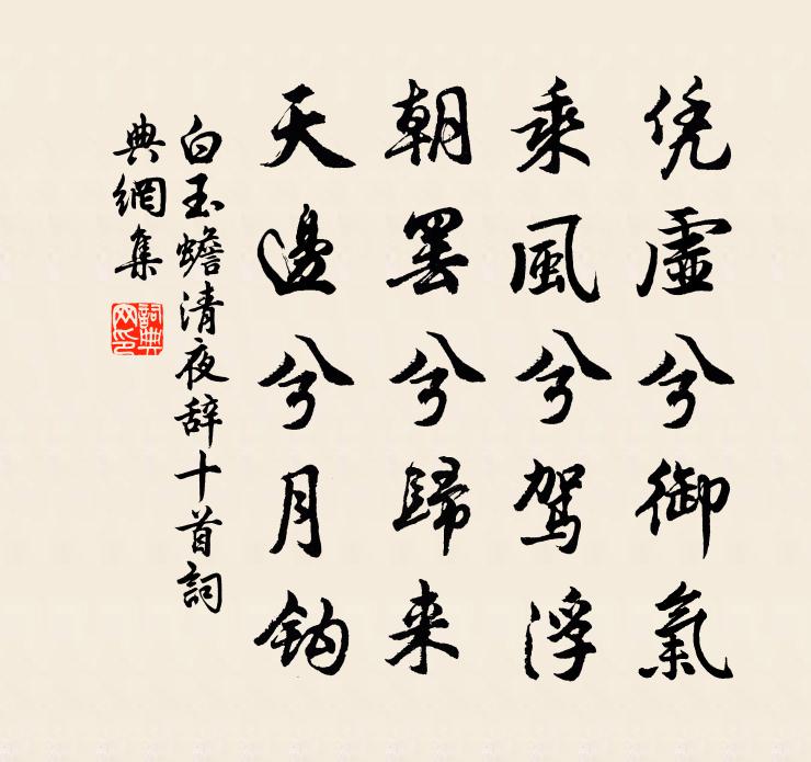 詩詞名句歷史字典書法欣賞書法字典國語詞典說文解字康熙字典古漢語字典標 題 作 者 詩 句 清夜辭十首作者:白玉蟾 朝代:宋代清夜辭十首原文憑虛兮御氣,乘風兮駕浮。朝罷兮歸來,天邊兮月鉤。詩詞問答問:清夜辭十首的作者是誰?答:白玉蟾問:清夜辭十首寫於哪個朝代?答:宋代問:清夜辭十首是什麼體裁?答:樂府白玉蟾清夜辭十首書法欣賞清夜辭十首書法作品詩詞推薦橫山劉倓〔宋代〕大小萬竹望不見,上下牢岩過若飛。紅綴舞衣山躑躅,白裁玉版野薔薇。過上湖楊萬里〔宋代〕上湖名是實全非,只合松江鴈騖池。若與五湖通譜系,澹臺湖弟太湖兒。後秋興之十三八首·其二錢謙益〔清代〕海角崖山一線斜,從今也不屬中華。更無魚腹捐軀地,況有龍涎泛海槎?望斷關河非漢幟,吹殘日月是胡笳。嫦娥五日觀妓萬楚〔唐代〕西施謾道浣春紗,碧玉今時鬥麗華。眉黛奪將萱草色,紅裙妒殺石榴花。新歌一曲令人艷,醉舞雙眸斂鬢斜。誰道畫堂春(和秦少游韻)仲並〔宋代〕春波淺碧漲方池。池台深鎖煙霏。緩歌爭勝早鶯啼。客忍輕歸。合坐香凝宿霧,墊巾梅插寒枝。漸西蟾影漾餘輝。夜讀杜詩契心喜成王邁〔宋代〕夜永如年眠較遲,寒聲贔屭薄書幃。靜看香篆縈茶碗,細嚼檳榔當酒卮。詩卷一工明病眼,騷人千載契心期。偶逢九日陪金市諸友登高陽山二首王阮〔宋代〕讀書懷古恨難逢,不謂斯時乃有公。心自對談名利外,士知增價品題中。一樽此地論文樂,三逕何年結社同。待得與弁山道士飲周文璞〔宋代〕采茗歸來日未斜,更攜苦菜入仙家。後園同坐枯桐樹,仰看紅桃落澗花。孤雁王鎡〔宋代〕叫入青雲憶弟兄,影隨雙翮見分明。黃昏獨過秋江上,自揀蘆花歇又驚。古意謝崔楊州辟七首洪咨夔〔宋代〕突兀誰家樓,風雨歲薄之。水染危欲壓,小柱亦半欹。匠斧睨其旁,搏手難獨支。南山有奇材,細鉅不可遺。再用前韻二首吳潛〔宋代〕行雨龍公屢易方,魃妖誰敢扇餘殃。田疇接得三年熟,枕簟供來幾夜涼。更喜征夫無減灶,定應行旅不齎糧。寄聲贈劉叉姚合〔唐代〕自君離海上,垂釣更何人。獨宿空堂雨,閒行九陌塵。避時曾變姓,救難似嫌身。何處相期宿,鹹陽酒市春。別希魯回馬上口占強至〔宋代〕兄佐諸侯幕,愚居孝子廬。賓士他自得,情味獨相於。先送秋帆動,還嗟友席虛。平生感知淚,今日為漣如。萬安道中書事德三首楊萬里〔宋代〕桃花薄相點燕脂,輸與梨花雪作肌。只有垂楊不脂粉,縷金鋪翠襯腰支。依韻謝登封劉李裴三君見約游山邵雍〔宋代〕諸公見約往嵩前,重走新詩各一篇。擺落塵埃非敢後,訪尋雲水柰輸先。三陽宮近叢幽石,萬歲峰高羃紫煙。多少浣溪沙(次韻王子弁紅梅)侯置〔宋代〕倚醉懷春翠黛長。肉紅衫子半窺牆。蘭湯浴困嫩勻妝。應為長年餐絳雪,故教丹頰耐清霜。弄晴飛馥笑馮唐。秋懷林之奇〔宋代〕槭槭庭樹葉,朝零非昔稠。呦呦草蟲鳴,暮急曉未休。爾蟲無不平,豈亦有哀憂。胡為勞呻吟,與士感傷投。壯士祥符寺得句許必勝〔宋代〕安蔬自足慰平生,峰靜松閒澗水平。山意悟時僧不語,落花聲間梵音清。送蕭穎士赴東府,得離字長孫鑄〔唐代〕大德詎可擬,高梧有長離。素懷經綸具,昭世猶安卑。落日去關外,悠悠隔山陂。我心如浮雲,千里相追隨。詩去得仰之報雲旦夕必有風雨可速相過走笑以王洋〔宋代〕幕下郎君發醉吟,多如年少惜花心,預排尊俎當長日,不遣詔華負雨陰。種竹澗邊排坐石,讀書窗下聽鳴禽。草堂名句推薦天之生物必因其材而篤焉。故栽者培之,傾者覆之。子思《中庸·第十七章》 五月天山雪,無花只有寒。李白《塞下曲六首·其一》 子胥既棄吳江上,屈原終投湘水濱。李白《行路難三首》 廬山秀出南斗傍,屏風九疊雲錦張。李白《廬山謠寄盧侍御虛舟》 眼前直下三千字,胸次全無一點塵。于謙《觀書》 執道循理,必從本始,順為經紀,禁伐當罪,必中天理。佚名《黃帝四經·經法·四度》 落葉人何在,寒雲路幾層。李商隱《北青蘿》 欹枕數秋天,蟾蜍下早弦。納蘭性德《菩薩蠻·蕭蕭幾葉風兼雨》 凡道字,重且舒。勿急疾,勿模糊。李毓秀《弟子規·信》 常將有日思無日,莫把無時當有時。佚名《增廣賢文·上集》