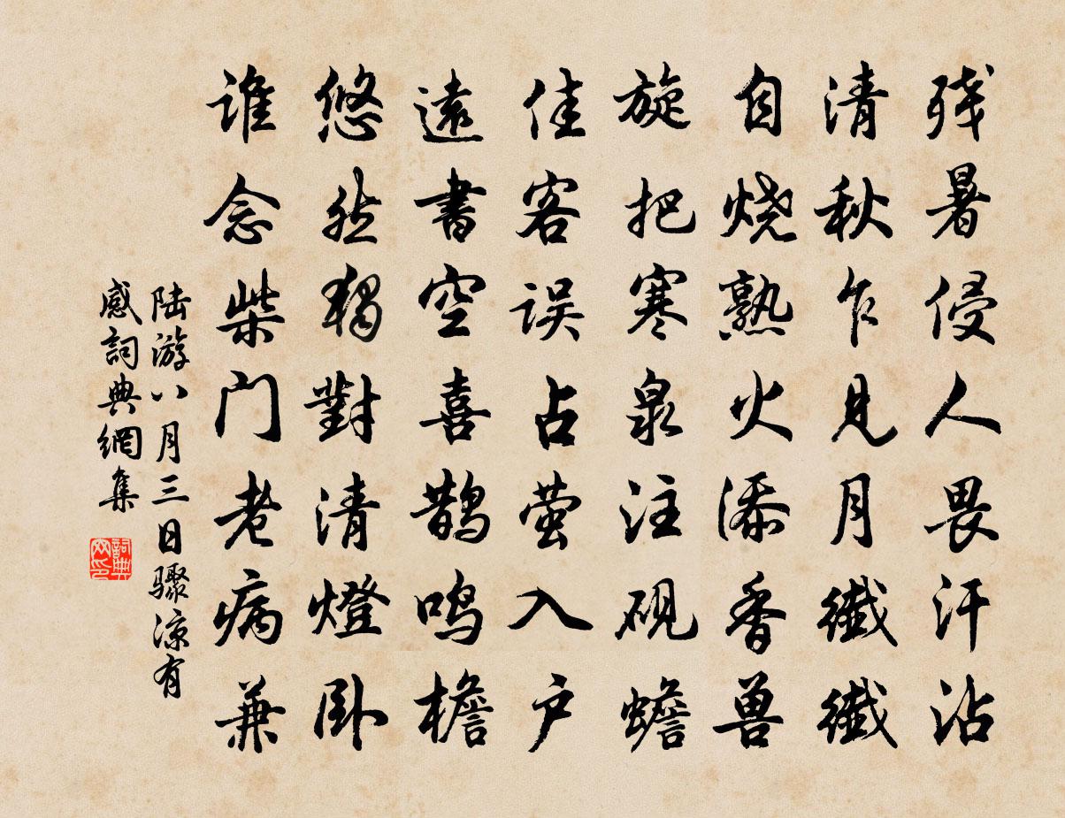 陸游八月三日驟涼有感書法欣賞