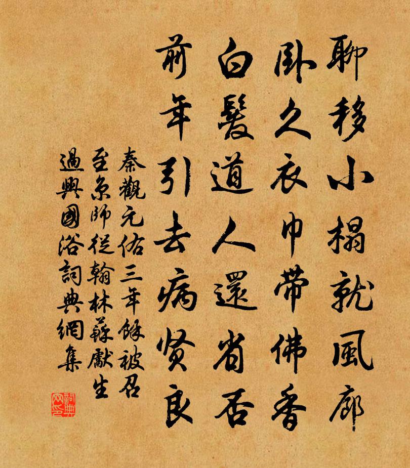 問:《元佑三年余被召至京師從翰林蘇先生過興國浴》的作者是誰?答:秦觀