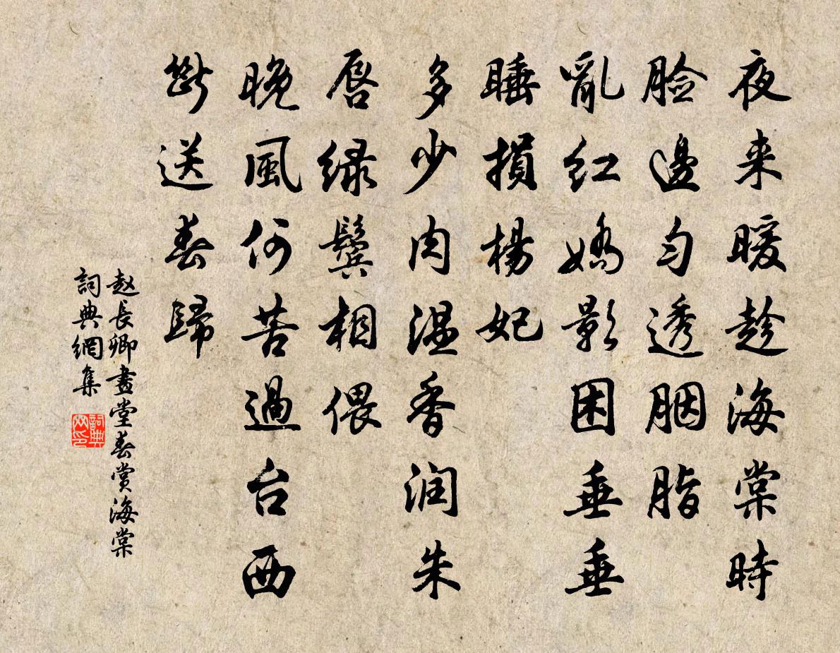 夜來暖趁海棠時。臉邊勻透胭脂。