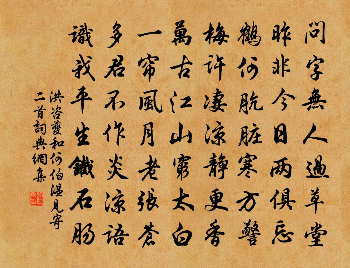 詩詞名句歷史字典書法欣賞書法字典國語詞典說文解字康熙字典古漢語字典標 題 作 者 詩 句 和何伯溫見寄二首作者:洪咨夔 朝代:宋代和何伯溫見寄二首原文問字無人過草堂,昨非今日兩俱忘。鶴何骯髒寒方警,梅許淒涼靜更香。萬古江山窮太白,一簾風月老張蒼。多君不作炎涼語,識我平生鐵石腸。詩詞問答問:和何伯溫見寄二首的作者是誰?答:洪咨夔問:和何伯溫見寄二首寫於哪個朝代?答:宋代洪咨夔和何伯溫見寄二首書法欣賞和何伯溫見寄二首書法作品詩詞推薦酬皇甫侍御望天灊山見示之作獨孤及〔唐代〕早歲慕五嶽,嘗為塵機礙。孰知天柱峰,今與郡齋對。隱嶙抱元氣,氤氳含青靄。雲崖媚遠空,石壁寒古塞。漢皇蕃嘗以閏九日約謝章二丈會南堂有事而止既欲趙蕃〔宋代〕已後兒曹疾走夸,分同杜叟客忠嘉。白衣莫致有名物,青眼謾看無數花。念我豈無岩壑暇,從君恐及簿書嘩。不唯金縷曲 泊南浦梁寅〔元代〕南浦歸帆暮。喜重看、螺江煙柳,鶴汀雲樹。畫棟朱簾歌舞地,風景已非前度。只浩蕩、江濤如故。相望飛樓鵬翅傳神悅躬上人陳舜俞〔宋代〕倦轡曾投林下宿,短篷重見越江邊。人歸河嶽儀型在,事隔桑溟特色傳。弟子共談庭際柏,公卿多識社中蓮。高風朝飯罷登淨遠亭楊萬里〔宋代〕近水孤亭迥,縈城一徑斜。霜林烏鵲國,冰岸鷺鷥家。殊覺冬曦暖,還拈小扇遮。傳呼惠山水,來瀹建溪茶。王才臣求園中六詩楊秘監謝尚書皆賦南谷周必大〔宋代〕志士非匏瓜,焉能擊不食。毋安白駒空,請放鳴騶入。春別曲張籍〔唐代〕長江春水綠堪染,蓮葉出水大如錢。江頭橘樹君自種,那不長系木蘭船。和澧州喜雨韻杜范〔宋代〕秋色在何許,浮嵐疊翠間。江清雙鳥渡,天闊片雲閒。雅量肩文舉,新詩壓子山。更深聽遠溜,喔詠答濺濺。歲晚幽興陸游〔宋代〕殘年欲遂迫期頤,追數朋儔死已遲。卜冢治棺輸我快,染須種齒笑人痴。野梅角地草生後,街柳拂鞍冰泮時。滿眼寄任山人錢起〔唐代〕天階崇黼黻,世路有趨競。獨抱中孚爻,誰知苦寒詠。行潦難朝海,散材空遇聖。豈無鳴鳳時,其如問津命。所思憶昨呈元老吳則禮〔宋代〕憶昨參戎幕,交情子獨真。共為關塞客,各負水雲身。跡遠金閨籍,衣沾玉壘塵。雕鞍暮橫槊,錦幄曉行春。隱几探杏二首楊萬里〔宋代〕曾見乾條撼雪飛,一暄爆出萬萸枝。從今日日須來看,看到紅紅白白時。僑寄山居霍然幾月凡見之於目聞之於耳者輒綴王志道〔宋代〕早蠶上箔將成趼,晚界蠶方起大眠。兩月辛勤敢胥怨,成絲成絹更成綿。怨王孫(春情)姚寬〔宋代〕毿毿楊柳綠初低。澹澹梨花開未齊。樓上情人聽馬嘶。憶郎歸。細雨春風濕酒旗。依韻答宋中道梅堯臣〔宋代〕朝回布思見子,布疲馬不及換。入門呼僮僕,雞犬屢鳴嚾。中廚尚青煙,知未畢晨爨。曾不留我餐,忍餒固已慣。送劉公度縣丞赴江陵周必大〔宋代〕投分復連牆,閒居味更長。送春慵斲句,惜別怕傳觴。我正群麋鹿,君當騖驌驦。但令同臭味,不必共行藏。和人李洪〔宋代〕池面粼粼已送涼,小窗危坐聽風篁。不應尚厭秋來熱,已減炎天五刻長。交傍晚凝子華見寄陳著〔宋代〕老矣息林邱,平生不徑由。知心時一見,安分別無求。寒臥死中活,榮華樂處憂。世閒何限事,曾看過雲不。頌一百則釋重顯〔宋代〕由基箭射猿,遶樹何太直。千箇與萬箇,是誰曾中的。相喚相呼歸去來。曹溪路上休登陟。題都城南莊崔護〔唐代〕去年今日此門中,人面桃花相映紅。人面不知何處去,桃花依舊笑春風。名句推薦三日柴門擁不開,階平庭滿白皚皚。柳宗元《酬王二十舍人雪中見寄》 年年遊子惜余春,春歸不解招遊子。賀鑄《惜余春·急雨收春》 煙柳畫橋,風簾翠幕,參差十萬人家。柳永《望海潮·東南形勝》 如今卻憶江南樂,當時年少春衫薄。韋莊《菩薩蠻·如今卻憶江南樂》 憶與君別年,種桃齊蛾眉。李白《獨不見》 鑒懸日月,辭富山海。百齡影徂,千載心在。劉勰《文心雕龍·徵聖》 美人梳洗時,滿頭間珠翠。鄭遨《富貴曲》 亭亭山上松,瑟瑟谷中風。劉楨《贈從弟》 斷虹霽雨,淨秋空,山染修眉新綠。黃庭堅《念奴嬌·斷虹霽雨》 盈盈一點芳心,占多少春光,問卿知否?紅妝莫斗顧太清《玉燭新·白海棠》