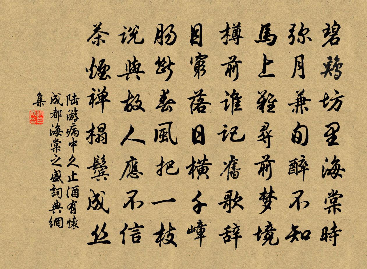 碧雞坊裏海棠時,彌月兼旬醉不知。馬上難尋前夢境,樽前誰記舊歌辭?目窮落日橫千嶂,腸斷春風把一枝。