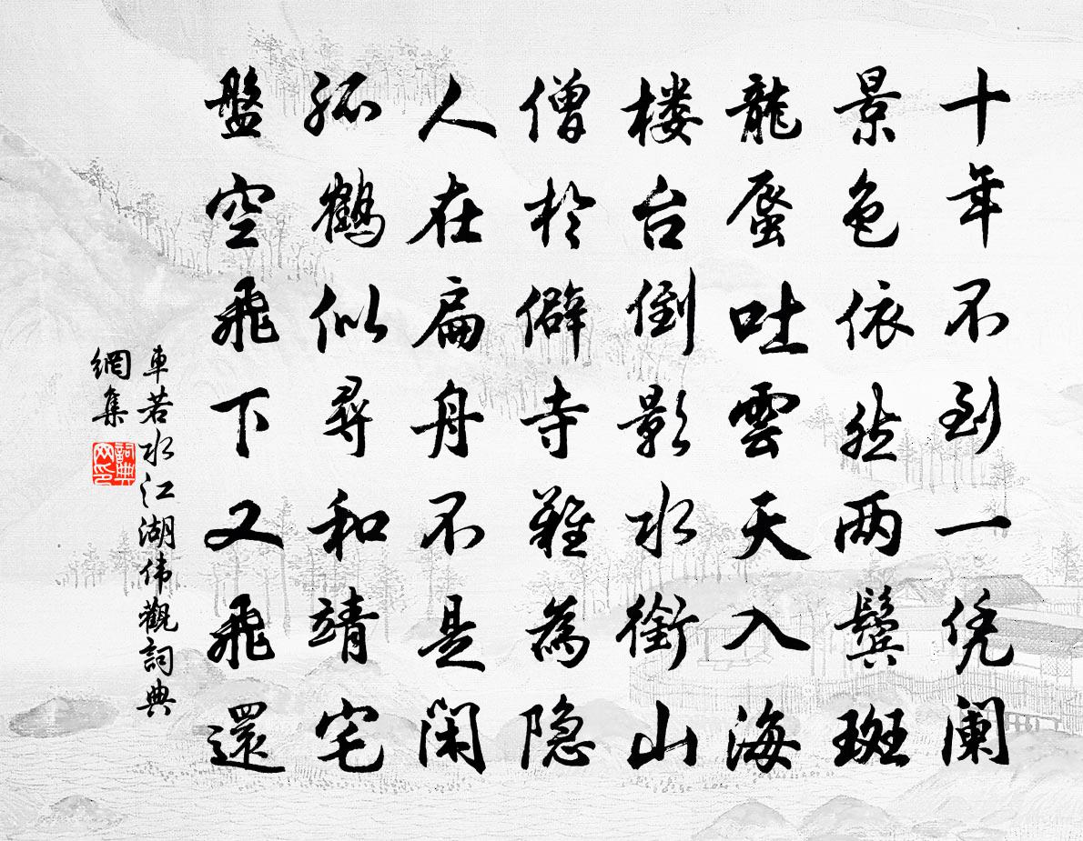 詩詞名句歷史字典書法欣賞書法字典國語詞典說文解字康熙字典古漢語字典標 題 作 者 詩 句 江湖偉觀作者:車若水 朝代:宋代江湖偉觀原文十年不到一憑闌,景色依然兩鬢斑。龍蜃吐雲天入海,樓台倒影水銜山。僧於僻寺難為隱,人在扁舟不是閒。孤鶴似尋和靖宅,盤空飛下又飛還。詩詞問答問:江湖偉觀的作者是誰?答:車若水問:江湖偉觀寫於哪個朝代?答:宋代問:江湖偉觀是什麼體裁?答:七律車若水江湖偉觀書法欣賞江湖偉觀書法作品詩詞推薦張騫乘槎圖戴表元〔宋代〕數尺苦槎底易騎,海風吹浪白瀰瀰。如今市上君平少,曾到天河也不知。贈延福端老二絕黃公度〔宋代〕我來欲問小乘禪,慚愧塵埃未了緣。忽憶去年秋夜話,共聽風雨不成眠。題周子中司戶乘成台三首楊萬里〔宋代〕先生無劓何須補,上到乘成盡放懷。松樹尚堪驅使在,為公一一捧詩牌。寄翁石龜潘璵〔宋代〕慣呼風月入毫端,人作神仙以上看。天賦此清梅亦遜,地因所寓稿隨坤。符分半刺於今易,詩得全名自古難。洗去水調歌頭王炎〔宋代〕千里倦遊客,老眼厭塵煙。蒸湘平遠,他處無此好江山。把酒一聽欸乃,過了黃花時節,水國倍生寒。輸與滄浪叟將去廣陵別史員外南齋徐鉉〔唐代〕家聲曾與金張輩,官署今居何宋間。起得高齋臨靜曲,種成奇樹學他山。鴛鸞終日同醒醉,蘿薜常時共往還。賤子靖啟伏蒙觀文相公以靖忝承善政特寄嘉篇謹依余靖〔宋代〕幸奉前規盡所懷,閒身吏隱裕春台。山回翠幌憑欄見,花簇紅房繞郭開。愛樹細民思美化,續貂孤跡愧非才。南河論鄰人陸游〔宋代〕鄰曲有米當共舂,何至一旦不相容?為善何嘗分士農,堯民皆當變時雍。和樞上人韻陳宓〔宋代〕禪心獨理燈無盡,曲論懷私物不齊。拱木已嚴千歲冢,狂瀾難決萬金堤。古今蔽顯神功相,天地韜藏裕眼迷。會看不浮次歆予亦再賦高斯得〔宋代〕咨余運頹侵,非復少年日。嵇康既習懶,長卿又嬰疾。避客如避仇,俗子意多失。獨於聲氣同,跡兩心事一。糲飯晚泊釋文珦〔宋代〕煙生浦欲無,日暮潮初落。客帆何處來,又近垂楊泊。張良徐鈞〔宋代〕博浪椎揮四海驚,虎狼雖暴已無秦。興劉滅項猶餘事,豈是蕭韓行輩人。八礪三首鄭思肖〔宋代〕憤氣填膺奈若何,千生萬死不消磨。夷齊道喪綱常壞,湯武兵興叛逆多。天外游心窮碧落,風前注目寄蒼波。此時紹興祀高禖十首佚名〔宋代〕[太簇為徽]猗歟禖宮,祀典所貴。備自艱難,禮工弗備。以迄於今,始建壇壝。顧武雲車,歆此誠意。早渡長蘆江梅堯臣〔宋代〕帶月出寒浦,殘星浸水濆。帆開風色正,舟急浪花分。霧氣橫江白,雞聲隔岸聞。天晴建業近,鍾岫起孤雲。滿庭芳 贈洞雲散人陳姑馬鈺〔元代〕清清淨淨,搜獲玄玄。觀天可認根源。敷布參羅萬象,日月相傳。做效女媧手段,撮虛無、五色新鮮。下火煉,大酬邢端公濟春日蘇台有呈袁州李使君…辛陽王三侍御皎然〔唐代〕大賢當佐世,堯時難退身。如何丹霄侶,卻在滄江濱。柳色變又遍,鶯聲聞亦頻。賴逢宜春守,共賞南湖春。營道偈頌一百二十三首釋普度〔宋代〕二大老,一人船行,一人步到。狹路相逢,掀眉一笑。東甌雪中山茶盛開方鳳〔宋代〕海色連蓬島,同雲一望迷。寒花空故故,醉酒只悽悽。卜世無三兆,傷心有五噫。仲宣樓上賦,愁絕不堪題。易州過郝逸人居賈島〔唐代〕每逢詞翰客,邀我共尋君。果見閒居賦,未曾流俗聞。也知鄰市井,宛似出囂氛。卻笑巢由輩,何須隱白雲。名句推薦吾任天下之智力,以道御之,無所不可。陳壽《三國志·魏書·武帝紀》 新年都未有芳華,二月初驚見草芽。韓愈《春雪》 奴為出來難,教君恣意憐。李煜《菩薩蠻·花明月暗籠輕霧》 昨夜笙歌容易散,酒醒添得愁無限馮延巳《鵲踏枝·梅落繁枝千萬片》 逕直夫何細!橋危可免扶?楊萬里《寒食上冢》 萬里橋西一草堂,百花潭水即滄浪。杜甫《狂夫》 正見空江明月來,雲水蒼茫失江路。歐陽修《晚泊岳陽》 春田龜坼苗不滋,猶賴立春三日雪。王士禎《春不雨》 雨中山果落,燈下草蟲鳴。王維《秋夜獨坐 / 冬夜書懷》 君歌楊叛兒,妾勸新豐酒。李白《楊叛兒》