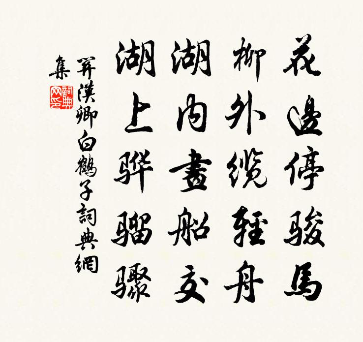花邊停駿馬,柳外纜輕舟。湖內畫船交,湖上驊騮驟。
