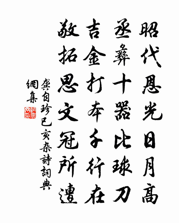 昭代恩光日月高,丞彝十器比球刀。吉金打本千行在,敬拓思文冠所遭。