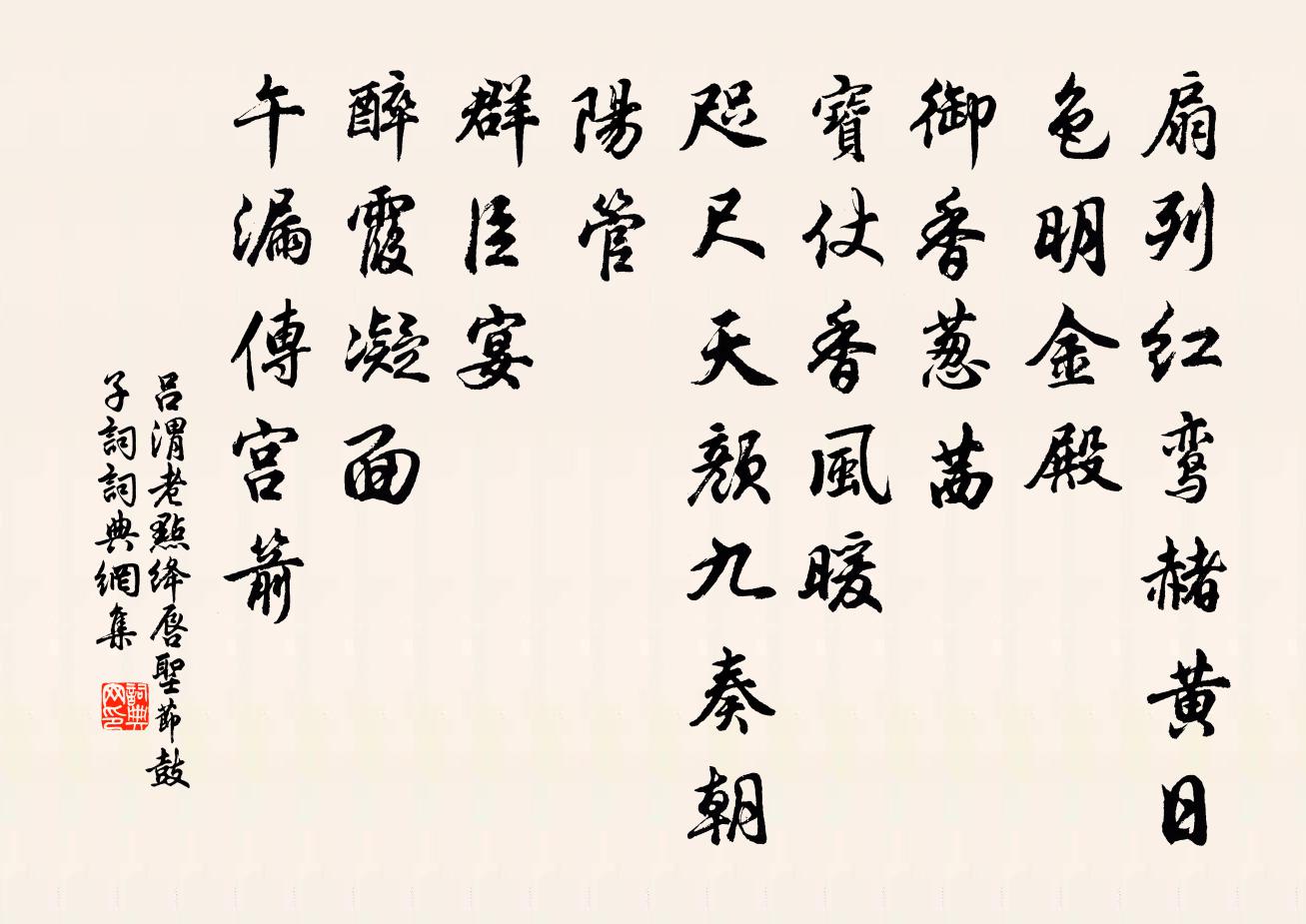 扇列紅鸞,赭黃日色明金殿。御香蔥茜。