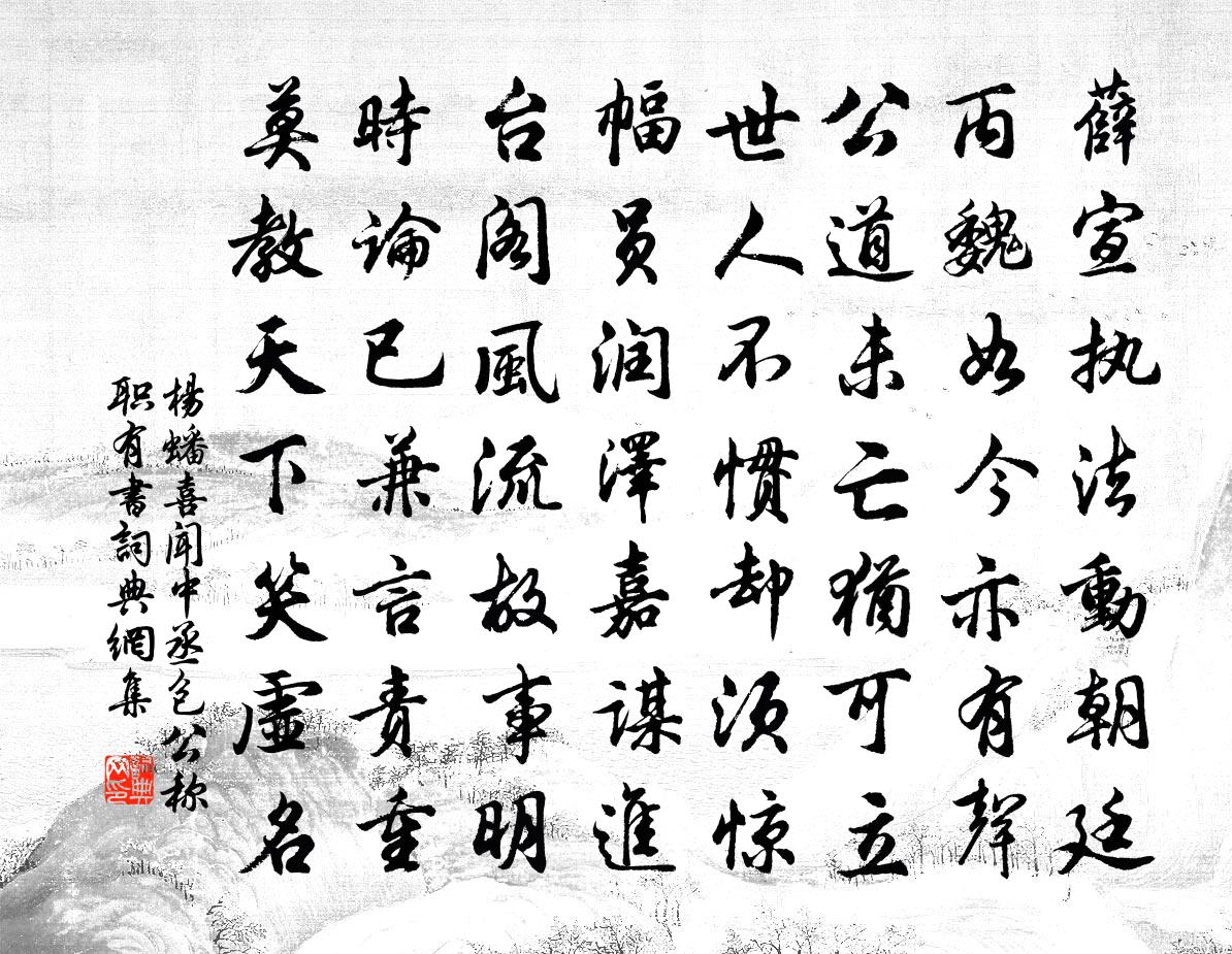 詩詞名句歷史字典書法欣賞書法字典國語詞典說文解字康熙字典古漢語字典標 題 作 者 詩 句 喜聞中丞包公稱職有書作者:楊蟠 朝代:宋代喜聞中丞包公稱職有書原文薛宣執法動朝廷,丙魏如今亦有聲。公道未亡猶可立,世人不慣卻須驚。幅員潤澤嘉謀進,台閣風流故事明。時論已兼言責重,莫教天下笑虛名。詩詞問答問:喜聞中丞包公稱職有書的作者是誰?答:楊蟠問:喜聞中丞包公稱職有書寫於哪個朝代?答:宋代楊蟠喜聞中丞包公稱職有書書法欣賞喜聞中丞包公稱職有書書法作品詩詞推薦挽德慶塗守二首陳元晉〔宋代〕九京嗟已矣,今吏孰如君。律已嚴三尺,活人寬一分。清名寒蜀雪,嘉誦藹南雲。杉柏風一切,黃陂原上墳。過湖方岳〔宋代〕才出城來便不同,綠楊微指藕花風。過湖船用百錢買,臥看雲歸南北峰。期盡鮑溶〔唐代〕魚鎖生衣門不開,玉筐金月共塵埃。青山石婦千年望,雷雨曾知來不來。點絳唇陳允平〔宋代〕鶯語愁春,海棠風裡胭脂雨。酒懷慵舉。閒撲亭前絮。漠漠斜陽,截斷愁來路。憑闌佇。滿懷離苦。分付樓南鼓。樊氏莊龜泉陸游〔宋代〕曳尾穹龜不負圖,一泓寒碧照庭除。醉中只合長來此,臥聽蠻童放轆轤。觀插秧葛立方〔宋代〕秧把束西畦,東畦翠罽齊。甘心鶴俯啄,不用馬行泥。井井塍千曲,泱泱水半犁。黃雲它日事,歡喜舞齬齯。亂後經表兄瓊華觀舊居唐彥謙〔唐代〕一去仙居似轉蓬,再經花謝倚春叢。醉中篇什金聲在,別後音書錦字空。長憶映碑逢若士,未曾攜杖逐壺公。東風奉和汴州令狐令公二十二韻(同用淹字)白居易〔唐代〕客有東征者,夷門一落帆。二年方得到,五日未為淹。[相府領鎮隔年,居易方到。既到,陪奉游宴,凡經五日。漢宮春(吳中齊雲樓)吳潛〔宋代〕樓觀齊雲,正霜明天淨,一雁高飛。江南倦客徙倚,目斷雙溪。憑闌自語,算從來、總是兒痴。青鏡里,數絲點鬢送許子擢第歸江寧拜親,因寄王大昌齡岑參〔唐代〕建業控京口,金陵款滄溟。君家臨秦淮,傍對石頭城。十年自勤學,一鼓游上京。青春登甲科,動地聞香名。解榻蘄春李丈解後游江上園勸遊人不可折花木禁漁戴復古〔宋代〕坐斷此江乾,池亭百畝寬。禽魚全性命,花竹報平安。有道行其志,非時做甚官。丰神更閒雅,野服竹皮冠。贊歷代天師第二十四代諱正隨字寶神白玉蟾〔宋代〕人在犂鋤煙水鄉,結茅高臥小松崗。敕封真靜先生號,一卷仙經一炷香。偈頌一百零四首釋紹曇〔宋代〕花禁冷葉紅,劃滴虛嵐翠。清淨盧舍那,全身荊棘里。曹主簿涇自卜壽藏追范石湖韻謹依虛谷使君例汪炎昶〔宋代〕百的孰不寄荒隅,螻蟣嘆欣悵野鳥。畏死固知非過士,輕生斷亦是狂夫。樂天陶令詞堪續,荷鍤劉伶跡易模,石礅送韋整尉長沙張祜〔唐代〕遠遠長沙去,憐君利一官。風帆彭蠡疾,雲水洞庭寬。木客提蔬束,江烏接飯丸。莫言卑濕地,未必乏新歡。送宗密上人歸南山草堂寺,因謁河南尹白侍郎劉禹錫〔唐代〕宿習修來得慧根,多聞第一卻忘言。自從七祖傳心印,不要三乘入便門。東泛滄江尋古蹟,西歸紫閣出塵喧。河南朱世同喜雪中得酒出佳篇相謝用韻奉酬吳芾〔宋代〕吾子一布衣,抱道仍懷德。人呻仰其高,耐寒如松柏。亦復誚其介,忍窮如鐵石。欲耕且無田,欲住且無宅。借人獲硯劉克莊〔宋代〕二硯溫如玉琢成,信知天地有精英。馬肝紫潤尤宜沐,鵒眼青圓宛似生。未愛潘郎呼作友,便教米老拜為兄。今年靈苑寺錢朝隱〔宋代〕馬前山色連天起,竹外溪聲動地來。試過溪橋訪山寺,清風為我拂塵埃。送田(一作沈)光鄭谷〔唐代〕九陌低迷誰問我,五湖流浪可悲君。著書笑破蘇司業,賦詠思齊鄭廣文。理棹好攜三百首,阻風須飲幾千分。耒陽名句推薦銅盤燭淚已流盡,霏霏涼露沾衣周邦彥《夜飛鵲·河橋送人處》 致君堯舜上,再使風俗淳。杜甫《奉贈韋左丞丈二十二韻》 見肝之病,知肝傳脾,當先實脾張仲景《金匱要略·卷上·藏府經絡先後病脈證一》 金陵津渡小山樓,一宿行人自可愁。張祜《題金陵渡》 湖上春來似畫圖,亂峰圍繞水平鋪。白居易《春題湖上》 荒村帶返照,落葉亂紛紛。劉長卿《碧澗別墅喜皇甫侍御相訪》 燕燕輕盈,鶯鶯嬌軟,分明又向華胥見。姜夔《踏莎行·自沔東來丁未元日至金陵江上感夢而作》 賢者在位,能者在職。孟子《孟子·公孫丑章句上·第四節》 此情可待成追憶?只是當時已惘然。李商隱《錦瑟》 一夜相思,水邊清淺橫枝瘦。陳亮《點絳唇·詠梅月》