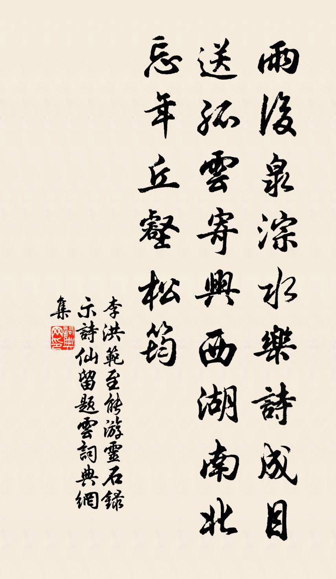 詩詞名句歷史字典書法欣賞書法字典國語詞典說文解字康熙字典古漢語字典標 題 作 者 詩 句 范至能游靈石錄示詩仙留題雲作者:李洪 朝代:宋代原文雨後泉淙水樂,詩成目送孤雲。寄興西湖南北,忘年丘壑松筠。詩詞問答問:《范至能游靈石錄示詩仙留題雲》的作者是誰?答:李洪問:該詩寫於哪個朝代?答:宋代書法欣賞范至能游靈石錄示詩仙留題雲書法作品詩詞推薦寒熱不調病一月余方回〔宋代〕不肯中和按故常,膈痰鼻涕更頭瘍。塵飛泥涴三春盡,熱熯寒僵一月強。乍把酒杯嫌藥氣,屢翻詩卷寫醫方。年年和叔夏視獲三首胡寅〔宋代〕天賜豐年豈不時,閔公荒度效徂岐。經丘烈日能焦扉,獨夜秋風已泛帷。豈愧石兄推竹弟,聊斟杜酒破張梨。過門挽呂東萊先生黃人傑〔宋代〕天意高難問,胡為奪巨賢。後生安取正,聖道不容傳。感意悲風木,傷心慘暮煙。翩翩丹旐去,徒有淚潸然。酬謝仲通初提舉崇福宮見寄司馬光〔宋代〕富壽安民舊學違,符移擁筆素心非。青雲有路那足顧,白髮滿頭胡不歸。永日杜門無俗客,臨風隱几得天機。西山依來韻答謝教授尚還鄙藁語李復〔宋代〕老便收氣自暖腹,厭見先漿動人目。乘間索思似秋蟲,終日牽絲不成幅。廣文嗜好背時利,妙律開雲發孤竹。已驚山中效陶曹鄴〔唐代〕落第非有罪,茲山聊歸止。山猿隔雲住,共飲山中水。讀書時有興,坐石忘卻起。西山忽然暮,往往遺巾履。經時卜運算元(壽族弟藻夫婦八十)陳著〔宋代〕月下百年緣,天上雙星樣。九秩齊開自是稀,清健那堪兩。紅葉景翻新, * 香宜晚。笑擁眉開祝壽聲,滿勸鴛鴦寒食曾鞏〔宋代〕一麾飄泊在天涯,寒食園林不見花。唯有市亭酤酒客,俚歌聲到日西斜。嘉泰壬戌上元日訪全老於淨林廣福院觀深傳師姜夔〔宋代〕深衣跨羸驂,杳杳春山路。入寺君未知,閒看移桂村。深碑含秀潤,隆畫出神奇。道人那得此,老子秘耽之。挽崇寧王雅橋楊公善宣教詞李新〔宋代〕何秘他楊重蜀苗,關西華胄固遙遙。大成殿老身先介,貝葉書成血未消。金馬祥光開舊地,玉虹寒影臥新橋。偉翁蜂李商隱〔唐代〕小苑華池爛熳通,後門前檻思無窮。宓妃腰細才勝露,趙後身輕欲倚風。紅壁寂寥崖蜜盡,碧簾迢遞霧巢空。青陵和東澗丁卯上元日見寄三絕句劉克莊〔宋代〕身已偏枯無一邊,還丹悔不問師傳。便教老壽如彭祖,僅活人間八百年。百舌鳥魏野〔宋代〕長截鄰雞叫五更,數般名字百般聲。饒伊饒舌爭先曉,也待青天明即鳴。小重山(賦雲屋)張炎〔宋代〕清氣飛來望似空。數椽何用草,膝堪容。卷將一片當簾櫳。難持贈,只在此山中。魚影倦隨風。無心成雨意,又西次張節推山字韻詩留其行陳造〔宋代〕粹學堂堂真有本,玄談亹亹盡無間。小回餘事入詩律,句法還能逼後山。和宋英叟先塋建亭作何夢桂〔宋代〕誰表新阡瞰石關,要將孝義軌人寰。千年永宅歸元亮,百尺豐碑葬魯山。旌旐尚存青檟外,亭台半在白雲間。兒孫如夢令(處梅列芍藥於几上酌余,不覺醉酒,陶然有感)張炎〔宋代〕隱隱煙痕輕注。拂拂脂香微度。十二小紅樓,人與玉簫何處。歸去。歸去。醉插一枝風露。菩薩蠻 靈嚴嵐翠沈禧〔元代〕幽軒東面靈岩麓。四時佳氣供吟目。雨過斷纖埃。郁藍屏障開。嵐光浮翡翠。日射添明媚。高湧出雲間,只疑西子句李堪〔宋代〕雷風有約春虯起,霜露無情紫蕙枯。平江清明書所聞見陳藻〔宋代〕早插綠楊檐外去,晚攜黃騰杖頭歸。富者幾家貧者眾,年年漸見賞人稀。名句推薦淡盪春光寒食天。玉爐瀋水裊殘煙。李清照《浣溪沙·淡盪春光寒食天》 但見淚痕濕,不知心恨誰。李白《怨情》 滿眼韶華,東風慣是吹紅去。幾番煙霧,只有花難護。陳子龍《點絳唇·春日風雨有感》 勝概日相與,思君心鬱陶。岑參《鞏北秋興寄崔明允》 秋送新鴻哀破國,晝行飢虎齧空林。鄭思肖《二礪》 長歌吟松風,曲盡河星稀。李白《下終南山過斛斯山人宿置酒》 先拂商弦后角羽,四郊秋葉驚摵摵。李頎《聽董大彈胡笳聲兼寄語弄房給事》 更深人去寂靜,但照壁孤燈相映。周邦彥《關河令·秋陰時晴漸向暝》 念去去,千里煙波,暮靄沉沉楚天闊。柳永《雨霖鈴·寒蟬淒切》 東家頭白雙女兒,為解挑紋嫁不得。元稹《織婦詞》