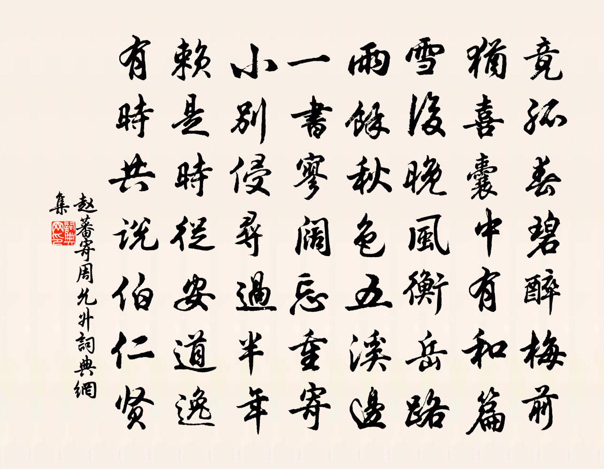 詩詞名句歷史字典書法欣賞書法字典國語詞典說文解字康熙字典古漢語字典標 題 作 者 詩 句 寄周允升作者:趙蕃 朝代:宋代寄周允升原文竟孤春碧醉梅前,猶喜囊中有和篇。雪後晚風衡岳路,雨余秋色五溪邊。一書寥闊忘重寄,小別侵尋過半年。賴是時從安道逸,有時共說伯仁賢。詩詞問答問:寄周允升的作者是誰?答:趙蕃問:寄周允升寫於哪個朝代?答:宋代趙蕃寄周允升書法欣賞寄周允升書法作品詩詞推薦聞琵琶王珪〔唐代〕夜拍水雲非故鄉,未聞終曲已淒涼。舟中月白寒江闊,馬上酸風紫塞長。思婦有懷停別杵,征人無語對清觴。平時見侍者乞語為入道蹊徑釋惟一〔宋代〕入道蹊徑無蹊徑,日用現行何不省。和南問訊已乖張,應對賓朋曾不隱。同盂共飯況三年,話破那知萬萬千。今日示資福諭老蘇轍〔宋代〕幽居百無營,孤坐若假寐。根塵兩相接,逆流就一意。意念紛無端,中止不及地。寂然了無覺,乃造真實際。百川吊嚴陵李甲〔宋代〕蕙蘭香泛,孤嶼潮平,驚鷗散雪。迤邐點破,澄江秋色。暝靄向斂,疏雨乍收,染出藍峰千尺。漁舍孤煙鎖寒磧。讀曲歌佚名〔宋代〕奈何許!石闕生口中,銜碑不得語。漁父詞十三首蒲壽宬〔宋代〕飄忽狂風一霎間,長魚吹浪勢如山。牢擊纜,蓼花灣。白鷗沙上伴人閒。挽陳兗仲吳芾〔宋代〕慷慨平群盜,能為眾所難。身雖淹武弁,志不負儒冠。義概千鈞重,心田萬頃寬。故山方適意,清夢忽驚殘。胥口范成大〔宋代〕扁舟拍浪信西東,何處孤帆萬里風。一雨快晴雲放樹,兩山中斷水粘空。清平樂王千秋〔宋代〕吹花何處。桃葉江頭路。碧錦障泥沖暮雨。一霎峭寒如許。歸來索酒澆春。潮紅秋水增明。卻自不禁春惱,偎人低河傳溫庭筠〔唐代〕同伴,相喚。杏花稀,夢裡每愁依違。仙客一雲燕已飛,不歸,淚痕空滿衣。天際雲鳥引情遠,春已晚,煙靄渡南聞蛙二首宋祁〔宋代〕蛙聲直可厭,聒耳橫相干。怒氣何關勇,私鳴不為官。秋懷三十六首邵雍〔宋代〕晴窗日初曛,幽庭雨乍洗。紅蘭靜自披,綠竹閒相倚。榮利若浮雲,情懷淡如水。身非天外人,意眾天外起。按麥行和魏定父韻王之道〔宋代〕號啼莫怪妻子疏,麥秋恰了償官租。噓嚅濕沫魚在陸,傷時令我思唐虞。平和還易有何說,大要豐財貴知節。相扶和李校書新題樂府十二首馴犀元稹〔唐代〕建中之初放馴象,遠歸林邑近交廣。獸返深山鳥構巢,鹰鵰鷂鶻無羈鞅。貞元之歲貢馴犀,上林置圈官司養。玉盆十月三夜省愆二絕陳文蔚〔宋代〕新為父子須還愛,分屬君臣合用欽。細算天心無負我,我生猶有負天心。好事近蔣子云〔宋代〕葉暗乳鴉啼,風定亂紅猶落。蝴蝶不隨春去,入薰風池閣。 休歌金縷勸金巵,酒病煞如昨。簾卷日長人靜,任楊晚春客愁五絕方回〔宋代〕老身何可病,客舍只宜晴。曉鼎催煎藥,窗間又雨聲。東門路於武陵〔唐代〕東門車馬路,此路在浮沉。白日若不落,紅塵應更深。從來名利地,皆起是非心。所以青青草,年年生漢陰。和彥沖胡寅〔宋代〕詩腑五字城,酒腸九曲灣。興來摧高堅,觴至輸潺湲。眷此山澗曲,素緇邀畿寰。人境俱寄陶,陋巷同樂顏。新黍醉落魄/一斛珠趙善括〔宋代〕梯橫畫閣。月明江靜煙光薄。碧山迴繞欄乾角。一縷行雲,忽向杯中落。櫻歌柳舞俱柔弱。羅衣不耐江風惡。憑誰名句推薦武帝宮中人去盡,年年春色為誰來。岑參《登古鄴城》 木從繩則正,後從諫則聖。佚名《尚書·商書·說命上》 秋風別蘇武,寒水送荊軻。庾信《擬詠懷二十七首·其二十六》 竹樹帶飛嵐,荇藻俱明麗。劉道著《湘江秋曉》 無端和淚拭胭脂,惹教雙翅垂張泌《蝴蝶兒·蝴蝶兒》 亭皋木葉下,隴首秋雲飛柳惲《搗衣詩》 綠竹半含籜,新梢才出牆。杜甫《嚴鄭公宅同詠竹》 一道鵲橋橫渺渺,千聲玉佩過玲玲。徐凝《七夕》 尺之木必有節目,寸之玉必有瑕適。呂不韋《呂氏春秋·覽·離俗覽》 致虛極;守靜篤。老子《老子·道經·第十六章》