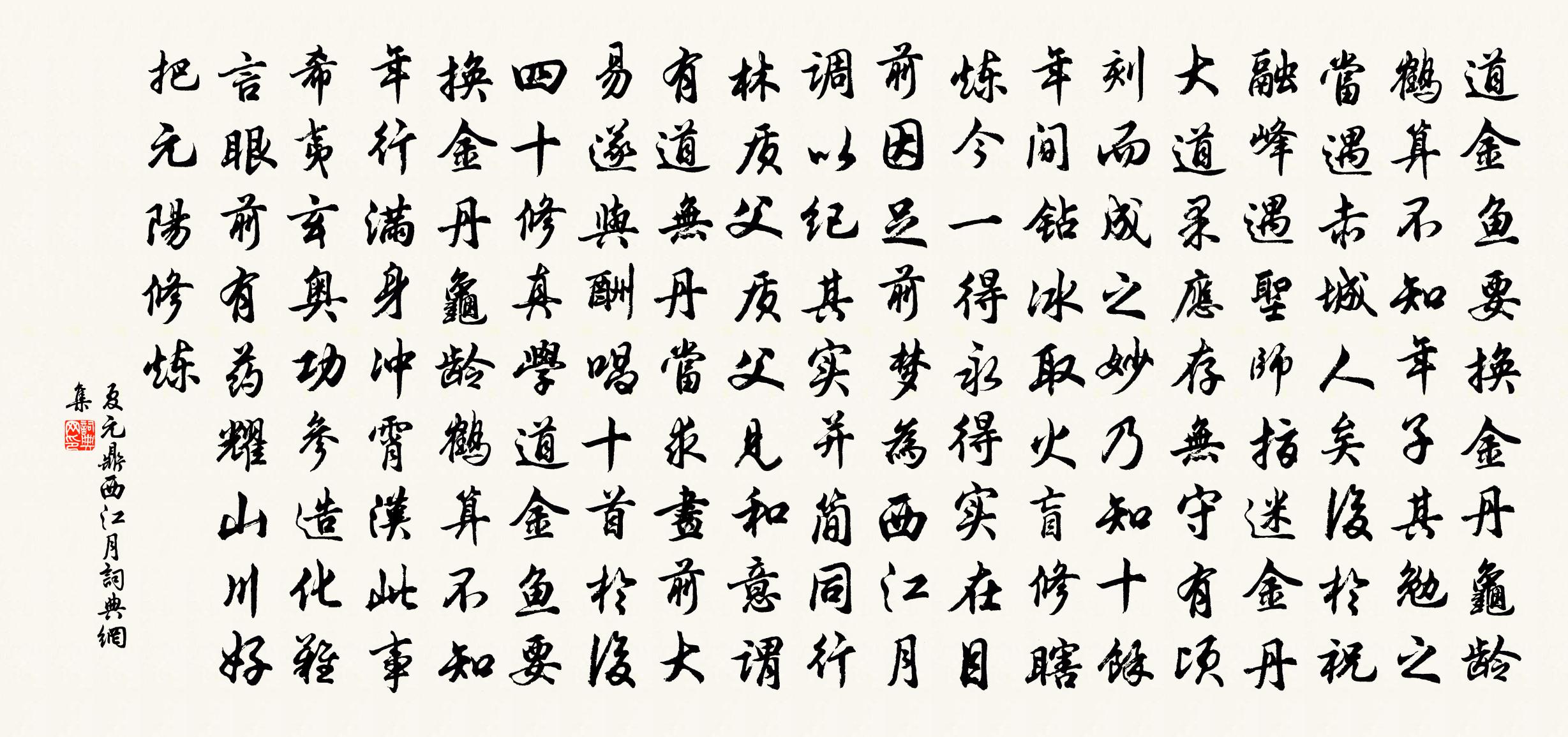 四十修真學道,金魚要換金丹。龜齡鶴算不知年。行滿身沖霄漢。