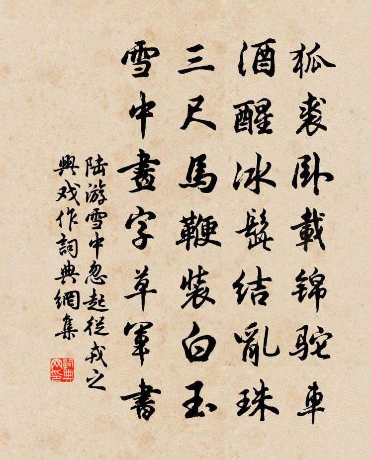 狐裘臥載錦駝車,酒醒冰髭結亂珠;三尺馬鞭裝白玉,雪中畫字草軍書。詩詞問答