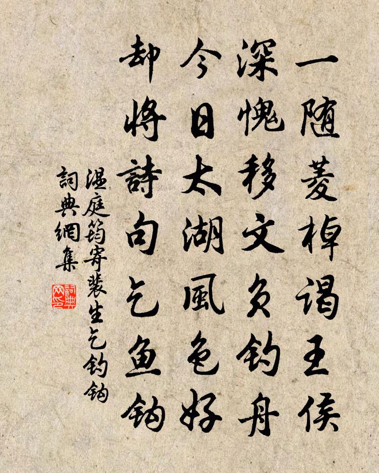 一隨菱棹謁王侯,深愧移文負釣舟。今日太湖風色好,卻將詩句乞魚鉤。