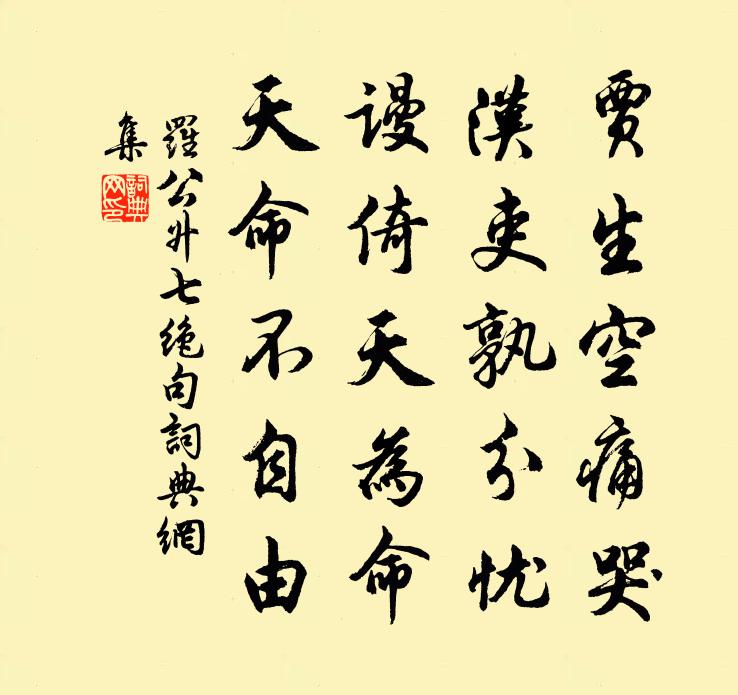 詩詞名句歷史字典書法欣賞書法字典國語詞典說文解字康熙字典古漢語字典標 題 作 者 詩 句 七絕句作者:羅公升 朝代:宋代七絕句原文賈生空痛哭,漢吏孰分憂。謾倚天為命,天命不自由。詩詞問答問:七絕句的作者是誰?答:羅公升問:七絕句寫於哪個朝代?答:宋代羅公升七絕句書法欣賞七絕句書法作品詩詞推薦山礬曾幾〔宋代〕青雲葉底雪花繁,只與田家插髻鬟。不枉涪翁初著句,能令大士久開顏。沁園春佚名〔宋代〕學富總龜,英蜚漕鶚,正當少年。向山陰發軔,從容蓮幕,結知當路,翠剡爭先。萬斛龍驤,湖襄飛餉,賞秩新綸村舍陸游〔宋代〕氣全自可忘憂患,心動安能敵死生。若論老人真受用,已多稗飯與藜羹。獨樂園七題種竹齋司馬光〔宋代〕吾愛五子猷,借宅亦種竹。一日不可無,蕭灑常在目。雪霜徒自白,柯葉不改綠。殊勝石季倫,珊瑚滿金谷。夜坐月感施樞〔宋代〕不為名所累,應是得安居。客夢方知幻,身謀反似疏。風高秋塞遠,雨急夜窗虛。猶望收來效,頻翻舊讀書。次韻贈汪解元行衛博〔宋代〕平湖畫鷁春無際,古寺名花色斬新。走馬未同追勝處,出門翻作送行頻。詩成轉覺傷離緒,別去應煩說舊因。野店答李正議見貽韓維〔宋代〕如公舉世幾何人,八十年齡自在身。處俗不繞諸有相,持心肯受一微塵。逢僧便出衣中寶,待士多陳席上珍。火宅念奴嬌(用傳安道和朱希真梅詞韻)朱熹〔宋代〕臨風一笑,問群芳誰是,真香純白。獨立無朋,算只有、姑射山頭仙客。絕艷誰憐,真心自保,邈與塵緣隔。天然享太廟樂章李回〔唐代〕受天明命,敷祐下土。化時以儉,衛文以武。氛消夷夏,俗臻往古。億萬斯年,形於律呂。次道子中書問歸期曾鞏〔宋代〕竊食東州歲未期,蓬萊人問幾時歸。憑闌到處臨清泚,開閣終朝對翠微。兩印每閒軍市靜,雙旌多偃送迎稀。一枝龍潭(一作僧應物詩)韋莊〔唐代〕激石懸流雪滿灣,九龍潛處野雲閒。欲行甘雨四天下,且隱澄潭一頃間。浪引浮槎依北岸,波分晚日見東山。垂髯次時敘韻送至先兄赴調范成大〔宋代〕梅柳欲動風作難,行人意在飛鴻間。一官遠遊門戶弱,百歲上策身心閒。胸次饒渠有廊廟,夢魂叵使無江山。栽桃澹津園看梅林泳〔宋代〕三嗅清香水月邊,冷然著我玉虛天。何須白雪黃芽訣,只服梅花也解仙。八月初二日方回〔宋代〕蟬聲漸漸怯西風,閒捻青枝玩菊叢。老去一身都是病,寤來萬夢總成空。喜分果餌小兒女,浪費薪蔬頑僕僮。嚴瀨送於總持歸京賈島〔唐代〕出家初隸何方寺,上國西明御水東。卻見舊房階下樹,別來二十一春風。蓬萊閣 述懷丘處機〔元代〕棲霞客。西遊棲在南溪側。南溪側。千尋赤岸,萬株蒼柏。無心只有輕雲白。舉頭不見繁華色。繁華色。空華雜亂秋夕即事劉得仁〔唐代〕永夕坐暝久,蕭蕭猿狖啼。漏微砧韻隔,月落斗杓低。危葉無風墜,幽禽並樹棲。自憐在岐路,不醉亦沉迷。偈頌一百零四首釋紹曇〔宋代〕雲收麥壟,水足秋田。繭繰白雪,鶯弄朱弦。無象太平還有象,蕢桴土鼓樂堯年。誰知聲色里,心印是渠傳。和史侍郎游澹岩韻六首曾協〔宋代〕九重溫詔下江邊,應覽甘泉舊奏篇。卻背煙嵐理歸棹,曉猿夜鶴總悽然。吊岳文二公二首何夢桂〔宋代〕如此光陰冉冉何,青萍失手意蹉跎。門前流水溪山在,簾外落花風雨多。百歲身名頭半雪,十年世事淚懸河。相逢名句推薦不知何歲月,得與爾同歸?韋承慶《南中詠雁詩》 名無細而不聞,行無隱而不彰。劉向《列女傳·節義傳·周主忠妾》 安而不忘危,存而不忘亡,治而不忘亂佚名《易傳·繫辭傳下·第五章》 落梅庭榭香,芳草池塘綠。晏幾道《生查子·落梅庭榭香》 一生大笑能幾回,斗酒相逢須醉倒。岑參《涼州館中與諸判官夜集》 人之初,性本善。王應麟《三字經·全文》 竹柏皆凍死,況彼無衣民。白居易《村居苦寒》 銅壺漏報天將曉,惆悵佳期又一年。羅隱《七夕》 一春略無十日晴,處處浮雲將雨行。汪藻《春日·一春略無十日晴》 黑雲翻墨未遮山,白雨跳珠亂入船。蘇軾《六月二十七日望湖樓醉書》