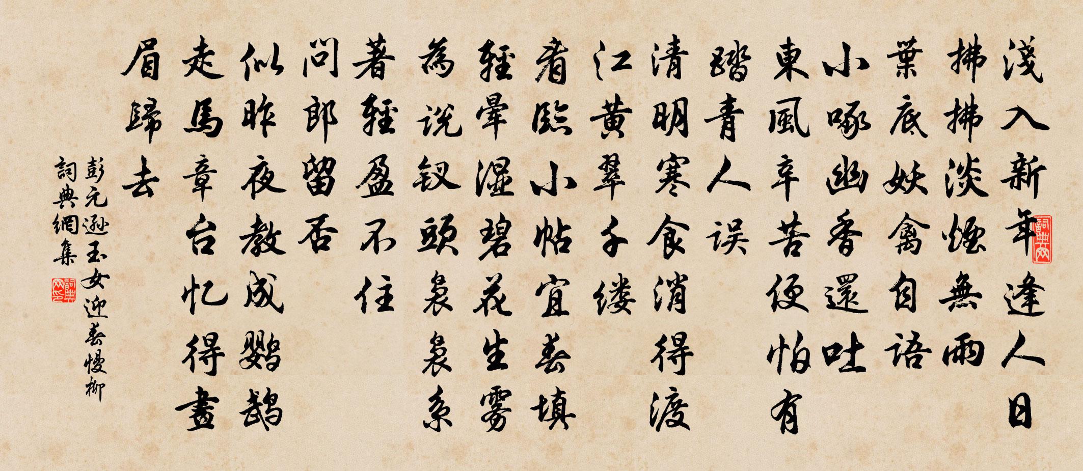 - 甚時躍馬歸來,認得迎門輕笑。時彥《青門飲·寄寵人》