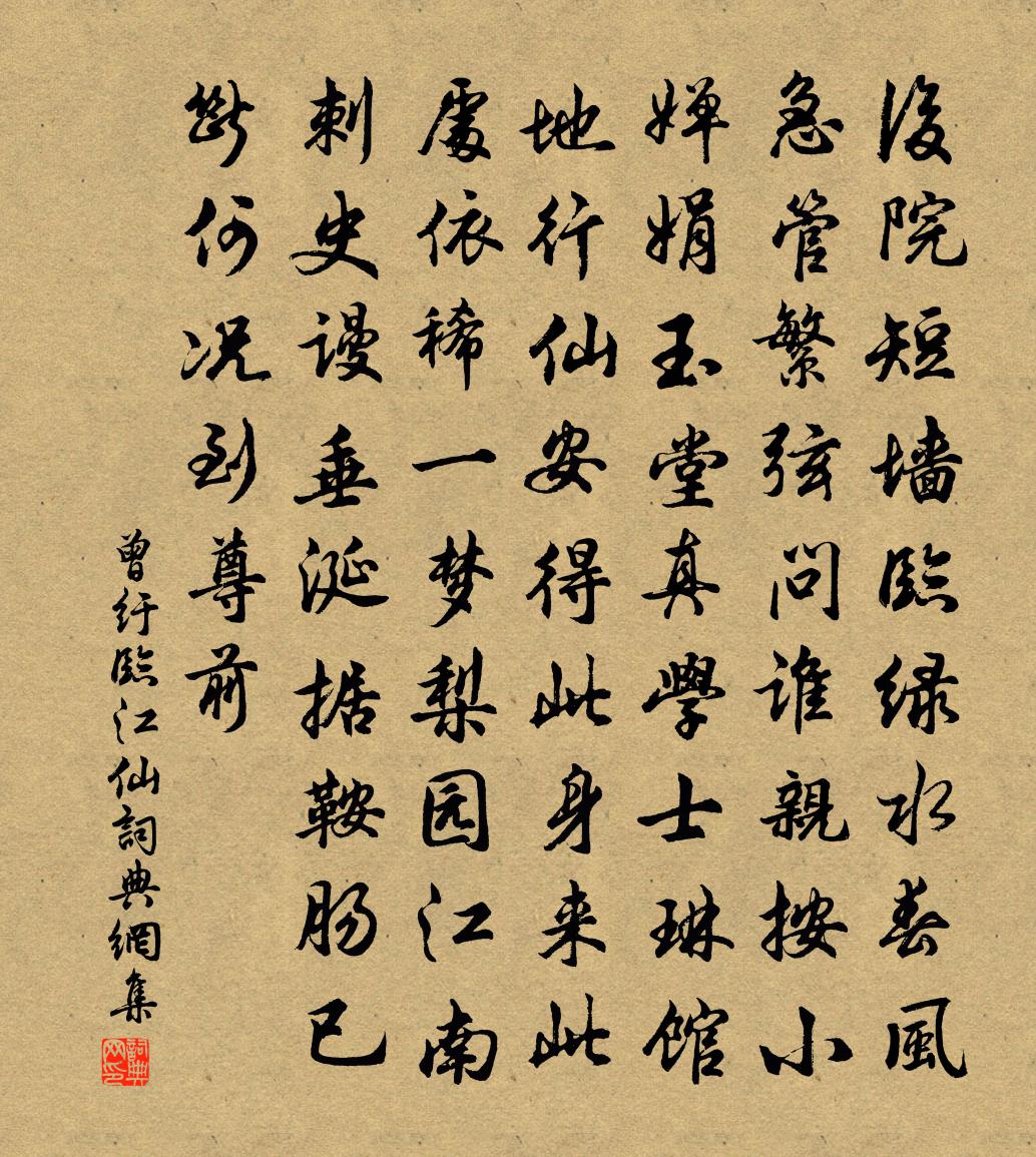 詩詞名句歷史字典書法欣賞書法字典國語詞典說文解字康熙字典古漢語字典標 題 作 者 詩 句 臨江仙作者:曾紆 朝代:宋代臨江仙原文後院短牆臨綠水,春風急管繁弦。問誰親按小嬋娟。玉堂真學士,琳館地行仙。安得此身來此處,依稀一夢梨園。江南刺史謾垂涎。據鞍腸已斷,何況到尊前。詩詞問答問:臨江仙的作者是誰?答:曾紆問:臨江仙寫於哪個朝代?答:宋代曾紆臨江仙書法欣賞臨江仙書法作品詩詞推薦送孫舍人歸湘州梁陟〔唐代〕盛才傾世重,清論滿朝歸。作隼他年計,為鴛此日飛。比肩移日近,抗首出郊畿。為報清漳水,分明照錦衣。鄰女白居易〔唐代〕娉婷十五勝天仙,白日嫦娥旱地蓮。何處閒教鸚鵡語,碧紗窗下繡床前。柏堂楊蟠〔宋代〕零落雪霜後,猶含千載春。一株化為石,誰是種時人。楚宮怨二首·其一李涉〔唐代〕十二山晴花盡開,楚宮雙闕對陽台。細腰爭舞君沉醉,白日秦兵天下來。送特進李嶠入都袝廟徐彥伯〔唐代〕特進三公下,台臣百揆先。孝圖開寢石,祠主卜牲筵。恩級青綸賜,徂裝紫橐懸。綢繆金鼎席,宴餞玉潢川。北斗贈莆陽卓大著順寧精舍三十韻文天祥〔宋代〕人生天地間,一死非細事。識破此條貫, * 分地位。趙岐圖壽藏,杜牧擬墓誌。祭文潛自撰,荷鍤伶常醉。此等送胡平一赴召六絕曾豐〔宋代〕匪旦參兮伊夕樞,收藏名跡不容書。史官強立功臣傳,房本無功功有餘。觀音詩釋契適〔宋代〕覺源非有等差心,物性陶溶逐淺深。昏惑道中瞻月角,辨才門裡聽潮音。彩雲輕罩山輝玉,花雨斜飛地涌金。終擬百一詩 二十二應璩〔魏晉〕城狐不可掘。社鼠不可熏。辛卯春日劉克莊〔宋代〕甫報弓旌召,俄聞彈射攻。匹如飲甘露,又似斬春風。雲夢吞伊輩,須彌納箇中。故山多芧栗,不必問狙公。望永阜陵陸游〔宋代〕聖主乘乾臨斧扆,小臣承詔上丹墀。寧知齒豁頭童後,更遇天崩地陷時!泣至眼枯無血續,夢隨魂斷獨心知。白頭鶴褚載〔唐代〕欲洗霜翎下澗邊,卻嫌菱刺污香泉。沙鷗浦雁應驚訝,一舉扶搖直上天。題薦福寺楊萬里〔宋代〕千山底里著樓台,半夜松風萬岳哀。曉起巡檐看題壁,雨聲一片隔林來。建安暮秋華岳〔宋代〕斜陽望斷水平橋,古柳蕭疏已半雕。魚躍浪花翻水面,雁托煙練束林腰。花時無鏹能追驥,月夜有詩堪續貂。回首行香子張翥〔元代〕傳癖詩逋。野逸山*。是幽人、平日稱呼。過如飯袋,勝似錢愚。盡我為牛,人如虎,子非魚。石銚風爐。雪碗冰歷陽十詠之三濡須塢賀鑄〔宋代〕孫郎昔鷹揚,曹瞞方虎視。敢忘板築勤,遠推兵鋒銳。俄聞青蓋謠,無復金陵氣。六代迭傾亡,長江亦平地。郊廟朝會歌辭紹熙元年恭上壽星聖皇太后至尊佚名〔宋代〕仰瞻慈闈,登進寶冊。惟時蟄御,祗率厥職。日壽日名,母兮兼得。儷我尊父,億載無極。答王侍郎和紫極宮詩劉克莊〔宋代〕侍郎如蒼官,歲寒友梅竹。步行以當車,瓢飲不如掬。舊人存者少,靈光巋然獨。朝野推意新,州閭敬齒宿。嗟余游烏龍山寺范仲淹〔宋代〕高嵐指天近,遠溜出山遲。萬事不到處,白雲無盡時。異花啼鳥樂,靈草隱人知。信是棲真地,林僧半雪眉。春雨喻良能〔宋代〕晚風吹雨過西疇,惻惻輕寒似早秋。燕乳鳩鳴春又老,可堪芳草喚人愁。名句推薦良弓難張,然可以及高入深;良馬難乘,然可以任重致遠墨子《墨子·01章 親士》 黃葉覆溪橋,荒村唯古木。柳宗元《秋曉行南谷經荒村》 瓜熟蒂落,水到渠成。佚名《增廣賢文·下集》 凡彼禍難也,先者恆凶,後者恆吉。佚名《黃帝四經·十大經·雌雄節》 人怕出名豬怕壯曹雪芹《紅樓夢·第八十三回》 長記別伊時,和淚出門相送。李存勖《如夢令·曾宴桃源深洞》 相顧無言,惟有淚千行。蘇軾《江城子·乙卯正月二十日夜記夢》 紫萸一枝傳賜,夢誰到、漢家陵。姚雲文《紫萸香慢·近重陽》 投我以木瓜,報之以瓊琚。佚名《木瓜》 詩言志,歌永言佚名《尚書·虞書·舜典》