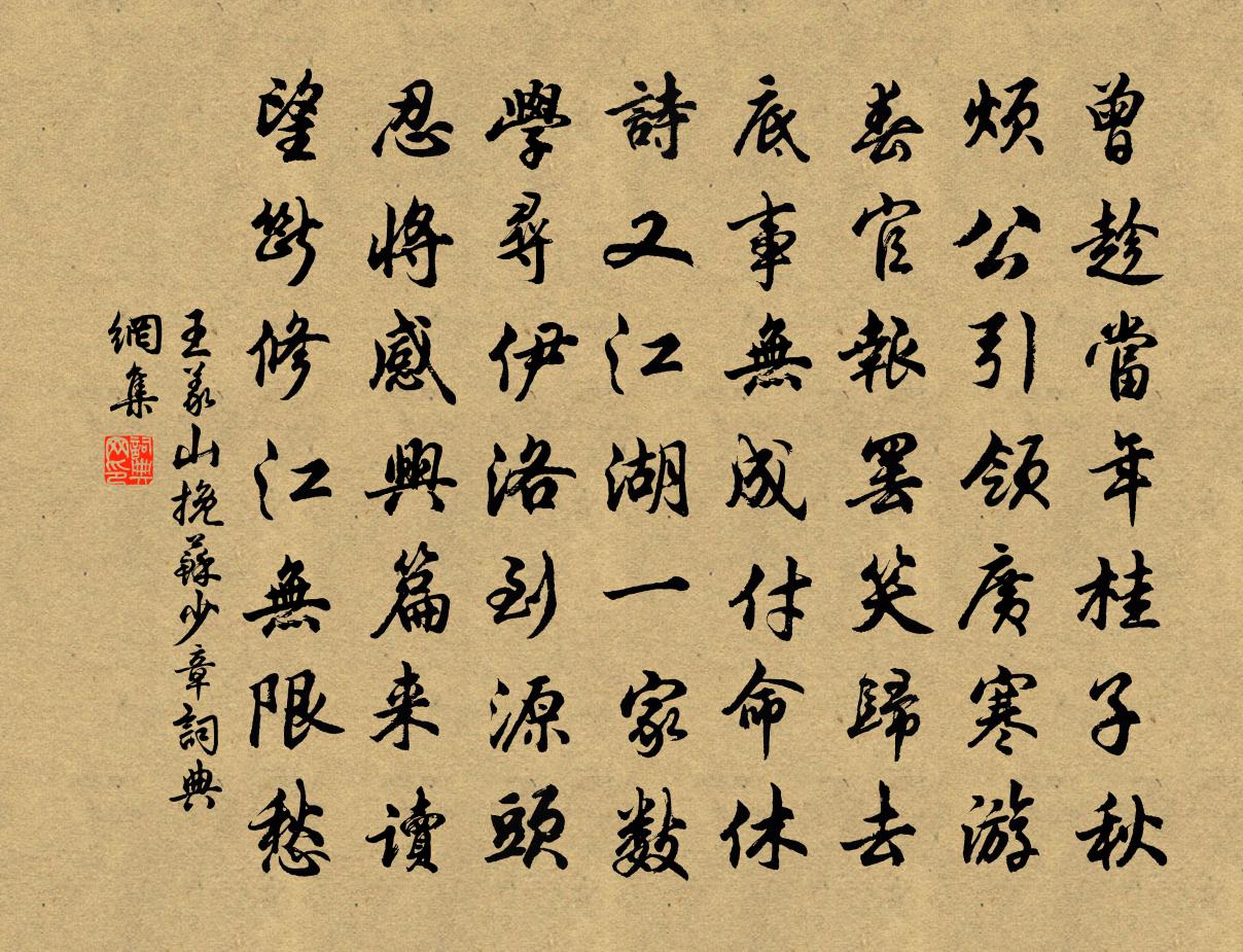 詩詞名句歷史字典書法欣賞書法字典國語詞典說文解字康熙字典古漢語字典標 題 作 者 詩 句 挽蘇少章作者:王義山 朝代:宋代挽蘇少章原文曾趁當年桂子秋,煩公引領廣寒游。春官報罷笑歸去,底事無成付命休。詩又江湖一家數,學尋伊洛到源頭。忍將感興篇來讀,望斷修江無限愁。詩詞問答問:挽蘇少章的作者是誰?答:王義山問:挽蘇少章寫於哪個朝代?答:宋代王義山挽蘇少章書法欣賞挽蘇少章書法作品詩詞推薦敘州弟輓詩魏了翁〔宋代〕禍我天何酷,子歸自古誠。女孥俄別父,宗直亦辭兄。家難已稠疉,寇氛方滿盈。分明天有眼,不照此時情。雜曲歌辭熱戲樂張祜〔唐代〕熱戲爭心劇火燒,銅槌暗執不相饒。上皇失喜寧王笑,百尺幢竿果動搖。夜大風明日視新竹無恙黎廷瑞〔宋代〕牆陰老龍孫,氣欲乾雲霄。共愛秉勁節,終虞忌高標。東風撼南極,萬壑翻江潮。挑燈不成寐,念爾心搖搖。天明琴潘牥〔宋代〕只是尋常操,傳來便不同。初疑聲已心,旋覺曲方中。清碎如章草,和平似國風。自從今夕聽,吾耳一生聾。水調歌頭(題張晉英提舉玉峰樓)辛棄疾〔宋代〕木末翠樓出,詩眼巧安排。天公一夜,削出四面玉崔嵬。疇昔此山安在,應為先生見挽,萬馬一時來。白鳥飛不盡謁金門佚名〔宋代〕休只坐。也去看花則個。明日滿庭紅欲墮。花還愁似我。索性痴眠一和。憑個夢兒好做。杜宇不知春已過。枝頭聲解連環(橄欖)王沂孫〔宋代〕萬珠懸碧。想炎荒樹密,□□□□。恨絳娣、先整吳帆,政鬟翠逞嬌,故林難別。歲晚相逢,薦青子、獨夸冰頰。菊坡崔參政說平叛卒不得已拜經略之命豈敢言戴復古〔宋代〕角巾私第自逍遙,諸老之中此老高。無可柰何懷印綬,甚非得已用弓力。風生玉帳千兵肅,天落金牌一札褒。緩急十二年冬江西溫暖喜元八寄金石棱到因題此詩白居易〔唐代〕今冬臘候不嚴凝,暖霧溫風氣上騰。山腳崦中才有雪,江流慢處亦無冰。欲將何藥防春瘴?只有元家金石棱。西江月王玠〔元代〕離位翻為奼女,坎宮卻是嬰兒。自因兩個隔東西。始用黃婆通意。每遇陽生冬至,方能夫唱妻隨。一時齊會赴瑤池熙州再乞罷李復〔宋代〕末途潦倒愧知音,幕府重來歲月侵。狂見請纓憎往策,禮容著帽感虛襟。白頭久厭戎衣窄,黧面空嗟寒色深。東望夢中吟邵雍〔宋代〕夢中說夢猶能憶,夢覺夢中還又隔。今日恩光空喜歡,當年意愛難尋{上不下見}。水成流處豈無聲,花到謝時安送左殿丞入蜀歐陽修〔宋代〕傳聞蜀道難,行客若登天。紫竹深無路,黃花忽見川。聞禽嗟異域,問俗訪耆年。欲識京都遠,惟應望日邊。晏望驛釋舟走信州王安石〔宋代〕病起行山山更險,下窮溪谷上通天。乘高欲作東南望,青壁松杉滿我前。僧門林景熙〔宋代〕一間每笑不如僧,及到僧門間未能。昨夜褐袍風雨裹,隔溪犬吠入林燈。持敬齋吟金朋說〔宋代〕恭己時存養,敬以充四端。唯狂能克念,作聖抑何難。同水心吊薛子舒墓戴栩〔宋代〕自劚青雲去,長途墜玉鑣。有名天所吝,無病藥為妖。月斧千家寂,霓梭五色銷。夢靈虛吐鳳,數短實如鴞。筦庫齒酬舌贈舒岳祥〔宋代〕子任高和逸,吾當噬嗑勞。生年雖後子,未老得無焦。念奴嬌(二首催雪)朱淑真〔宋代〕冬晴無雪。是天心未肯,化工非拙。不放玉花飛墮地,留在廣寒宮闕。雲欲同時,霰將集處,紅日三竿揭。六花翦九日溪偶成錢熙〔宋代〕漁家深處住,鷗鷺泊柴扉。雨過山迷徑,潮來風滿衣。岸幽分遠景,波冷漾清暉。卻憶曾游賞,嚴陵有舊磯。名句推薦四月十七,正是去年今日,別君時。韋莊《女冠子·四月十七》 菊暗荷枯一夜霜。新苞綠葉照林光。蘇軾《浣溪沙·詠橘》 山高月小,水落石出。蘇軾《後赤壁賦》 狡兔盡則良犬烹,敵國滅則謀臣亡。韓非及後人《韓非子·內儲說下六微》 東風兮東風,為我吹行雲使西來。李白《久別離》 遠牧牛,繞村四面禾黍稠。李涉《牧童詞》 還背垂虹秋去,四橋煙雨,一宵歌酒。吳文英《瑞龍吟·送梅津》 無人知此意,歌罷滿簾風。陳與義《臨江仙·高詠楚詞酬午日》 故人離別盡,淇上轉驂騑。王維《送魏郡李太守赴任》 徒善不足以為政,徒法不能以自行。孟子《孟子·離婁章句上·第一節》