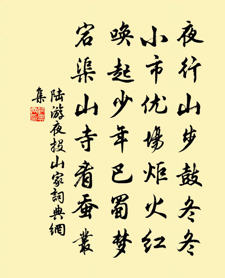夜行山步鼓冬冬,小市優場炬火紅。喚起少年巴蜀夢,宕渠山寺看蠶叢。