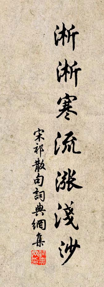詩詞名句歷史字典書法欣賞書法字典國語詞典說文解字康熙字典古漢語字典標 題 作 者 詩 句 句作者:宋祁 朝代:宋代句原文淅淅寒流漲淺沙。詩詞問答問:句的作者是誰?答:宋祁問:句寫於哪個朝代?答:宋代問:宋祁的名句有哪些?答:宋祁名句大全宋祁句書法欣賞句書法作品詩詞推薦朝中措(和張文伯元夕)王之道〔宋代〕江城春霽雪初融。樓觀瑞煙中。向晚金蓮無數,一時開遍東風。多情太守,行攜紅袖,坐引金鍾。時出陽春絕唱,贈相士釋道璨〔宋代〕面如生鐵鑄崑崙,有底榮枯到你論。謾說青青亭畔竹,春風幾個有兒孫。題徐氏書院黃庭堅〔宋代〕學書但學溪老鵝,讀書可觀樵父歌。紫髯將軍不復見,空餘岩桂綠婆娑。送比部孫郎中將漕二浙張舜民〔宋代〕前朝使節擁朱軒,乃是君家小狀元。不獨官資如令祖,更將學術付賢孫。上供旋搗新禾米,行部時驚舊水痕。游遍回前詩曹雪芹〔清代〕浮生著甚苦奔忙,盛席華筵終散場。悲喜千般同幻渺,古今一夢盡荒唐。漫言紅袖啼痕重,更有情痴抱恨長。字字雲門道中陸游〔宋代〕度嶺穿林一徑斜,旋篝新火試新茶。箬包粉餌祠寒食,雨濕青鞋上若耶。石罅微泉來滴瀝,溪涯老木臥槎牙。不須閒居即事王炎〔宋代〕稍稍開三徑,徐徐辦一廛。歸來非失計,老去只隨緣。旋蠟登山屐,時操泛月船。生涯且如此,蕭散樂餘年。村花晚(庚寅)元稹〔唐代〕三春已暮桃李傷,棠梨花白蔓菁黃。村中女兒爭摘將,插刺頭鬢相誇張。田翁蠶老迷臭香,曬暴奄聶熏衣裳。非無春帖子詞夫人閣十首宋祁〔宋代〕雪罷雲初暖,天和日便遲。玉樓新燕子,禖下記來時。詠松胡仲弓〔宋代〕蕭蕭琴瑟鳴,灑灑霜露下。願期素心人,同游明月夜。春日題相思寺馮時行〔宋代〕系艇依寒渚,扶筇上晚林。山山春已立,樹樹雨元深。掃葉移床坐,穿雲買酒斟。相思思底事,老大更無心。瑞鶴仙(元夕為王史君賦)楊炎正〔宋代〕風光開舊眼。正梅雪初消,柳絲新染。樓台競裝點。照金荷十里,珠簾齊卷。湘弦楚管。動香風、旌旗影轉。望雲清思詩江淹〔南北朝〕趙後未至麗。陰妃非美極。情理儻可論。形有焉足識。帝女在河洲。晦映西海側。陰陽無定光。雜錯千萬色。終歲冬夜岩居二首白玉蟾〔宋代〕孤澗月華明水,半簾梅影香風。惆悵謫仙何處,無人共倒金鐘。挽侍講先生王夫人詩二首陳舜俞〔宋代〕師牆童稚被陶鈞,穴鳳仍同桂籍春。豈獨慈良尊有道,就論恩分即吾親。生前未許升堂拜,原上空陪執紼人。一曲農謠方岳〔宋代〕漠漠余香著草花,森森柔綠長桑麻。池塘水滿蛙成市,門巷春深燕作家。次韻答張迪功坐上見貽張將赴南都任二首陳與義〔宋代〕千首能輕萬戶侯,誦君佳句解人憂。夢闌塵里功名晚,笑罷尊前歲月流。世事無窮悲客子,梅花欲動憶吾州。明朝採石渡王景月〔宋代〕興亡懷此渡,貫酒易為醺。數樹松青處,千年李白墳。曉山看夜雪,淮甸沒江雲。牛渚磯邊過,驚濤不可聞。喜周妹自四明到范成大〔宋代〕團欒話里老龐衰,一妹仍從海浦來。孤苦尚余史弟樂,如今雖病也眉開。句王隨〔宋代〕晴樓憑月吟魂冷,春席眠花醉夢香。名句推薦邯鄲驛里逢冬至,抱膝燈前影伴身。白居易《邯鄲冬至夜思家》 他鄉共酌金花酒,萬里同悲鴻雁天。盧照鄰《九月九日玄武山旅眺》 笑殺陶淵明,不飲杯中酒。李白《嘲王歷陽不肯飲酒》 早歲那知世事艱,中原北望氣如山。陸游《書憤五首·其一》 月有盈虧花有開謝,想人生最苦離別。張鳴善《普天樂·詠世》 波面澄霞,蘭艇采香去。高觀國《祝英台近·荷花》 分手脫相贈,平生一片心。孟浩然《送朱大入秦》 凡有血氣,皆有爭心左丘明《左傳·昭公·昭公十年》 分不盡,半涼天。可憐閒剩此嬋娟。吳文英《思佳客·閏中秋》 夜喧山門店,獨宿不安席。韋應物《聽嘉陵江水聲寄深上人》