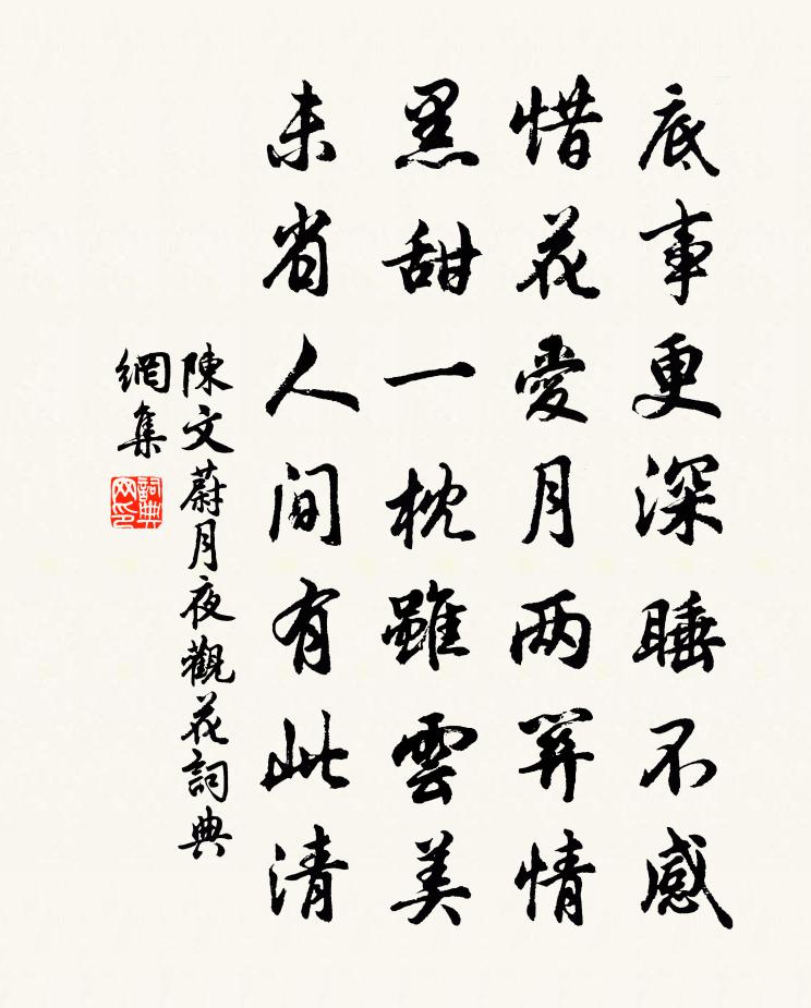 詩詞名句歷史字典書法欣賞書法字典國語詞典說文解字康熙字典古漢語字典標 題 作 者 詩 句 月夜觀花作者:陳文蔚 朝代:宋代月夜觀花原文底事更深睡不感,惜花愛月兩關情。黑甜一枕雖雲美,未省人間有此清。詩詞問答問:月夜觀花的作者是誰?答:陳文蔚問:月夜觀花寫於哪個朝代?答:宋代陳文蔚月夜觀花書法欣賞月夜觀花書法作品詩詞推薦試闈即事三絕蘇籀〔宋代〕一坐據梧床刃消,五星競耀燭秋宵。掃廳禁近延僧孺,孰謂詩書避賦繇。和茅山高拾遺憶山中雜題五首小樓儲嗣宗〔唐代〕松杉風外亂山青,曲幾焚香對石屏。空憶去年春雨後,燕泥時污太玄經。宴桃源/如夢令周紫芝〔宋代〕林外野塘煙膩。衣上落梅香細。瘦馬步凌兢,人在亂山叢里。憔悴。憔悴。回望小樓千里。三月二十七日自撫州往南城縣舟行見拂水薔薇因有是作韓偓〔唐代〕江中春雨波浪肥,石上野花枝葉瘦。枝低波高如有情,浪去枝留如力斗。綠刺紅房戰褭時,吳娃越艷醺酣後。且將贈吏部尚書建安郡正肅吳公輓辭三首蘇頌〔宋代〕疇昔商楹夢,吁嗟魯鳳衰。清朝橈隆棟,多士失元龜。墳闕開京壤,帷旌出洛師。孤生懷舊感,西望涕交頤。八月十八日觀潮喻良能〔宋代〕萬疊銀山出海門,百川渺渺不勞吞。晴江鬥起黏天浪,一洗忠胥憤屈魂。送秘上人游京皎然〔唐代〕共君方異路,山伴與誰同。日冷行人少,時清古鎮空。暖瓶和雪水,鳴錫帶江風。撩亂終南色,遙應入夢中。秋日步至湖桑埭西陸游〔宋代〕伏枕衰方劇,搘筇氣忽增。細泉鳴暗竇,疏樹映孤燈。斷雁寒依渚,強魚健脫罾。行纏已無用,卻作在家僧。玉樓春莫崙〔宋代〕綠楊芳徑鶯聲小。簾幕烘香桃杏曉。餘寒猶峭雨疏疏,好夢自驚人悄悄。憑君莫問情多少。門外江流羅帶繞。直饒空城雀陳陶〔唐代〕古城濛濛花覆水,昔日住人今住鬼。野雀荒台遺子孫,千年飲啄枯桑根。不隨海燕柏梁去,應無玉環銜報恩。近村蚊孟郊〔唐代〕五月中夜息,飢蚊尚營營。但將膏血求,豈覺性命輕。顧己寧自愧,飲人以偷生。願為天下幮,一使夜景清。李才翁懶窩林憲〔宋代〕山林日月長,城市炎涼急。方看夏太清,已覺秋淅瑟。因之念故山,鶴歸松露滴。收足否願余,此舟徒役役。送人還闕強至〔宋代〕談笑三年陪主帥,文章二紀在公卿。莫辭別酒傾秦地,且聽離歌唱渭城。鞍馬入關侵臘尾,宮鶯到闕破春聲。朝廷洋州蔡交〔宋代〕武定新雄閫,豐寧舊奧墟。地兼秦蜀美,川會漢洋紆。翠壘環封嶺,清流躍野渠。安知下斜谷,別得上華胥。乾酒雨夜釋文珦〔宋代〕身同水上萍,老去尚飄零。遠客人誰到,空床夢獨醒。閃雲雙電紫,晦雨一燈青。慷慨長歌發,歌聲入杳冥。煙雨館葛紹體〔宋代〕酒杯光動柳梢月,衣袖涼生蘆葉風。露坐夜深醒似困,釣船人語過湖東。孟子不動心陳普〔宋代〕見道分明了不疑,氣常無暴志常持。確乎理氣為標準,變故艱危豈足移。讀杜詩陸游〔宋代〕城南杜五少不羈,意輕造物呼作兒。一門酣法到孫子,熟視嚴武名挺之。看渠胸次隘宇宙,惜哉千萬不一施!空回梅花引(次韻篔房賦落梅)周密〔宋代〕瑤妃鸞影逗仙雲。玉成痕。麝成塵。露冷鮫房,清淚霰珠零。步繞羅浮歸路遠,楚江晚,賦宮斜,招斷魂。酒醒。眉州披風榭拜東坡先生遺像陸游〔宋代〕萬里橋邊白版扉,三年高臥謝塵鞿。半窗竹影棋僧去,滿棹苹風釣伴歸。看鏡已添新雪鬢,聽雞重拂舊朝衣。故人名句推薦江南幾度梅花發,人在天涯鬢已斑。劉著《鷓鴣天·雪照山城玉指寒》 稻根科斗行如塊,田水今年一尺寬。范成大《夏日田園雜興》 天秋日正中,水碧無塵埃。柳宗元《湘口館瀟湘二水所會》 留連光景惜朱顏,黃昏獨倚闌。李煜《阮郎歸·呈鄭王十二弟》 門隔花深舊夢遊,夕陽無語燕歸愁。玉纖香動小簾鉤。吳文英《浣溪沙·門隔花深舊夢遊》 鞭撲之子,不從父之教劉向《說苑·雜言》 玉顏憔悴三年,誰復商量管弦。王建《宮中調笑·團扇》 事在四方,要在中央。韓非及後人《韓非子·揚權》 傷心莫問前朝事,重上越王台。倪瓚《人月圓·傷心莫問前朝事》 青林翠竹,四時俱備。陶弘景《答謝中書書》