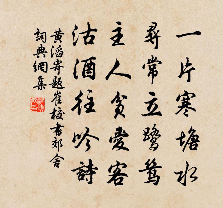 詩詞名句歷史字典書法欣賞書法字典國語詞典說文解字康熙字典古漢語字典標 題 作 者 詩 句 寄題崔校書郊舍作者:黃滔 朝代:唐代寄題崔校書郊舍原文一片寒塘水,尋常立鷺鷥。主人貧愛客,沽酒往吟詩。詩詞問答問:寄題崔校書郊舍的作者是誰?答:黃滔問:寄題崔校書郊舍寫於哪個朝代?答:唐代問:寄題崔校書郊舍是什麼體裁?答:五絕黃滔寄題崔校書郊舍書法欣賞寄題崔校書郊舍書法作品注釋全唐詩:卷706-21詩詞推薦訪古田劉無競戴復古〔宋代〕前說建陽宰,古田今似之。難兄與難弟,能政更能詩。文字定交久,江湖識面遲。人傳花萼集,俱受水心知。題章和甫釣亭放言黃庭堅〔宋代〕斬木開亭,卻倚石壁。寒潭百雷,古木千尺。觀魚樂而相忘,聽鳥啼而自得。去而之京洛之間數年,猶常夢嶄岩之送徐正時歸浦城曹勛〔宋代〕徐子志義士,觸熱如探湯。遠從南浦來,訪我存與亡。語兼瓊瑤溫,氣回蘭蕙芳。炎雲正爍石,懷抱為清涼。顧予薛端明挽章三首曹彥約〔宋代〕客本何為者,逢公幕府開。兵間雖有志,度外本非才。流不音何在,高風首屢回。只今岩石望,寧忍泰山頹。紹興祀岳鎮海瀆四十三首佚名〔宋代〕薦徹豆籩,熙事備成。發兮將歸,羽旄紛紜。飄其逝矣,浮雲籋雲。悵然顧瞻,有撫懷心。秋思絕句陸游〔宋代〕一片雲生便作陰,東軒草樹共蕭森。秋風豈必關人事,自是衰翁感慨深。賢者之孝二百四十首東海王疆林同〔宋代〕史以太伯比,斯評恐未真。我知東海意,不忍母他人。雨中送客觀魚閣程公許〔宋代〕送客觀魚閣,山光水色中。最憐秋慘澹,況復雨溟濛。坐久覺衣薄,杯行到手空。恨無佳句子,喚醒少陵翁。江陵道中王建〔唐代〕菱葉參差萍葉重,新蒲半折夜來風。江村水落平地出,溪畔漁船青草中。初夏三首王鎡〔宋代〕芳歇紅稀蝶懶來,瀟瀟風雷送春回。綠陰如許無人看,軟玉枝頭已有梅。蠟梅四絕楊冠卿〔宋代〕枝上編鐘萬顆垂,凌寒傲視雪霜姿。從今疏影暗香句,不數西湖處士詩。過往歲避地之所屋燬人遷汪炎昶〔宋代〕依舊蒼苔小徑斜,當時從此入山家。心疑謬誤還疑是,雨淶棠梨一樹花。秋日遣興孫應時〔宋代〕今年炎毒異他年,及此秋風意洒然。身世還須幾寒暑,吾生何事不隨緣。宴徐大參方大琮〔宋代〕麟符久合又貂蟬,又向鄉邦擁十年。眼赤腰黃天寵澤,顏紅鬢綠地神仙。極知書繡堪行染,見說宵衣正渴賢。好事寄題趙侯澄碧軒秦觀〔宋代〕風流公子四難井,更引清漪作小亭。潤及玉階春漲雨,光浮藻井夜涵星。捲簾幾硯成圖書,倚檻須鬟人鍾屏。何日寄意於石〔宋代〕妾家有明鏡,百鍊方能成。寶匣玉為台,持以奉良人。自恃妾貌妍,懶拂鏡上塵。妾貌未及衰,妾鏡先已昏。貌衰積雨作寒范成大〔宋代〕已報舟浮登岸,更憐橋場平池。養成蛙吹無謂,掃盡蚊雷卻奇。題梅山趙必橦〔宋代〕一隱吳門訪此山,深憐漢鼎尚多艱。片言倘得回天聽,未必仙名滿世間。夏旱五首劉克莊〔宋代〕井以瓶罌竭,溪堪揭厲行。蟹泉一摘子,辛苦上山迎。退朝王安石〔宋代〕門外鳴騶送響頻,披衣強起赴雞人。火城夜闇雲藏闕,玉座朝寒雪被宸。邂逅欲成雙白鬢,蕭條難得兩朱輪。猶憐名句推薦新年都未有芳華,二月初驚見草芽。韓愈《春雪》 千里江山寒色遠,蘆花深處泊孤舟,笛在月明樓。李煜《望江南·閒夢遠》 知君慣度祁連城,豈能愁見輪台月。岑參《送李副使赴磧西官軍》 士有妒友,則賢交不親;君有妒臣,則賢人不至。荀子《荀子·大略》 師嚴然後道尊,道尊然後民知敬學。戴聖《禮記·學記》 若有知音見采,不辭遍唱陽春。晏殊《山亭柳·贈歌者》 客子過壕追野馬,將軍韜箭射天狼。李夢陽《秋望》 庶人莫與官爭,貴人不結人怨。來俊臣《羅織經·保身卷第七》 萬條千縷綠相迎。舞煙眠雨過清明。晏幾道《浣溪沙·二月和風到碧城》 關山萬里不可越,誰能坐對芳菲月。盧思道《從軍行》