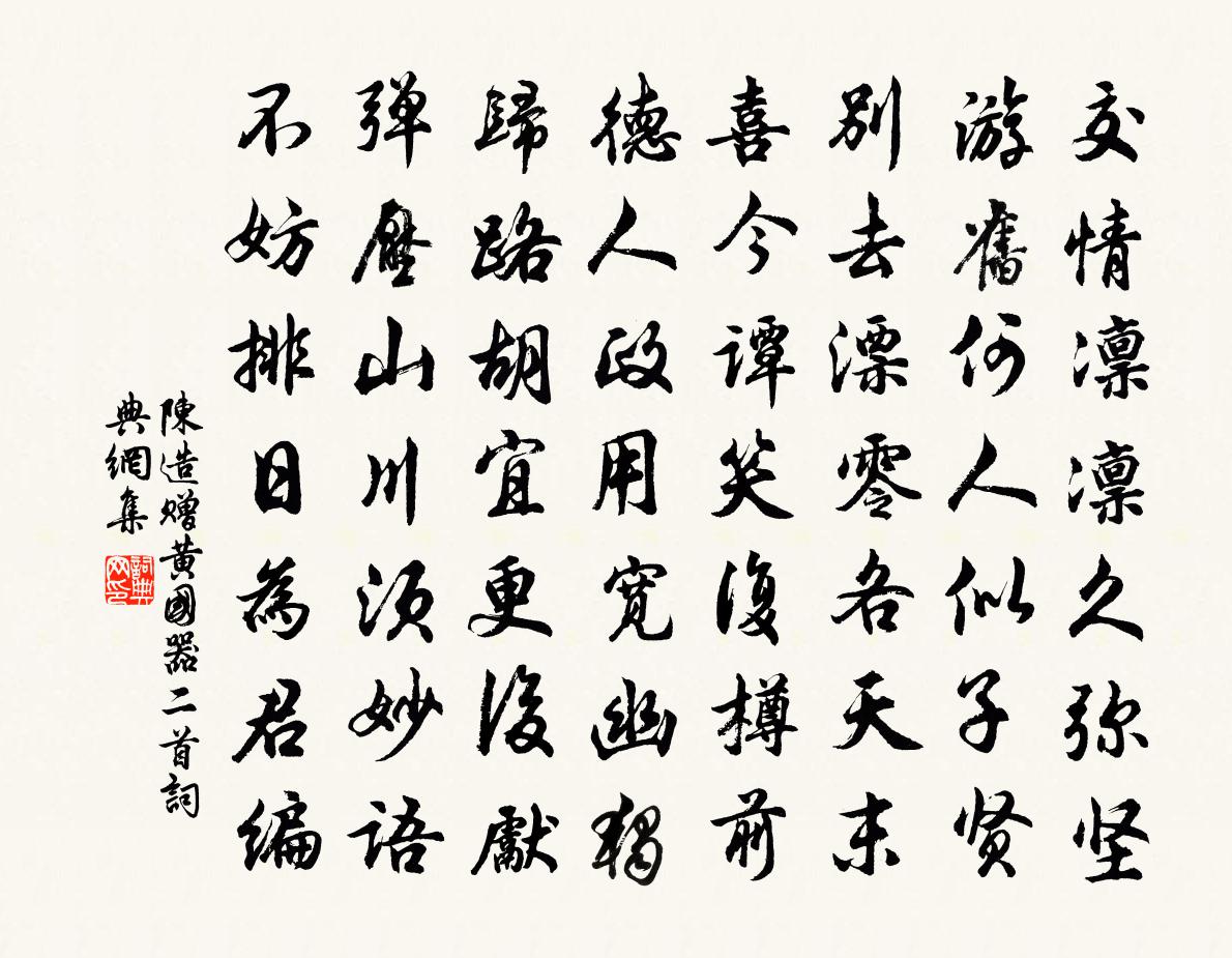 詩詞名句歷史字典書法欣賞書法字典國語詞典說文解字康熙字典古漢語字典標 題 作 者 詩 句 贈黃國器二首作者:陳造 朝代:宋代贈黃國器二首原文交情凜凜久彌堅,游舊何人似子賢。別去漂零各天末,喜今譚笑復樽前。德人政用寬幽獨,歸路胡宜更後先。彈壓山川須妙語,不妨排日為君編。詩詞問答問:贈黃國器二首的作者是誰?答:陳造問:贈黃國器二首寫於哪個朝代?答:宋代陳造贈黃國器二首書法欣賞贈黃國器二首書法作品詩詞推薦寄無相禪師羅隱〔唐代〕老住西峰第幾層,為師回首憶南能。有緣有相應非佛,無我無人始是僧。爛椹作袍名複利,鑠金為講愛兼憎。何如游龍山靜勝寺張說〔唐代〕每上襄陽樓,遙望龍山樹。郁茀吐岡嶺,微蒙在煙霧。下車歲已成,飾馬閒餘步。苦霜裛野草,愛日揚江煦。雲對題范子濟雙頭芍藥二首王洋〔宋代〕春風隨律入花房,三月淮南春書長。聞道傳呼催近侍,雙垂羅袖引花王。秋興王柏〔宋代〕巷底蕭蕭絕市塵,供愁疎雨打黃昏。悠然一曲泉鳴調,燒了夜香深閉門。入常山界二首楊萬里〔宋代〕老隨千騎赴毗陵,騎吏朝來有喜聲。未到常山三十里,此身已在浙中行。宮詞一百首岳珂〔宋代〕神霄九府絢雲霞,寶錄仙衣御絳紗。擲火流鈴傳帝蹕,蕊珠殿里降菁華。水龍吟(賡韻中秋)盧炳〔宋代〕晚晴一碧天如水,風約塵埃都掃。素娥睡起,玉輪穩駕,初離海表。碾破秋雲,涌成銀闕,光欺南斗。想廣寒宮裡自和梅堯臣〔宋代〕沉水香焚金博山,杜陵誰復與車還。馬尋綺陌知何曲,人在珠簾第幾間。法部樂聲長滿耳,上樽醇味易酡顏。更貧次韻張真父著作游湖山周必大〔宋代〕今休閣鉛黃,昔念長安遠。出遊寫我憂,駕言豈顧返。撐舟度平湖,蠟屐試疊巘。境幽客更佳,風靜日亦烜。爾仆送台倅趙叔明趨朝高文虎〔宋代〕羲輪正弭節,別駕忽揚鞭。游從亦雨暑,朋盍知何年。欲敘情繾綣,難得形周旋。譜系玉為牒,輝華珠在淵。漢家常州留別耿湋〔唐代〕萬里南天外,求書禹穴間。往來成白首,旦暮見青山。夜浦涼雲過,秋塘好月閒。殷勤陽羨桂,別此幾時攀。木芙蓉艾性夫〔宋代〕露冷紅酥不帶愁,湘蘭楚菊共清修。靈均死去無人問,閒卻滄江一片秋。喜雨用前韻黃榦〔宋代〕睡覺歌聲古道傍,有人中夜攬衣裳。床頭斗酒聊自酌,不為書窗一夜涼。宮詞王仲修〔宋代〕八寶盤龍玉色明,未央排仗慶熙成。斂時福瑞為天赦,五嶽齊呼萬歲聲。胡程寺二首李呂〔宋代〕上天一何慘,盛夏忽霜飛。竟奪慈母去,焉用此身為。空餘白雲念,無復彩戲時。一恨一灑血,何以報春暉。池上篇白居易〔唐代〕十畝龜之宅,五龜畝之園。有水一池,有竹千竿。勿謂土狹,勿謂地偏。足以容膝,足以息肩。有堂有庭,有橋有賀程帥因任四首且言久缺詩筒之意陳造〔宋代〕詩律寧惟似變風,姓名久矣御屏中。逢辰千載合致主,入夢九華仍插空。鐵瓮倚聽新號令,銅蹄終舞舊兒童。煩奭趙紫芝墓徐集孫〔宋代〕晚唐吟派續於誰,一脈才昌復已而。對月難招青冢魄,見梅如揖紫芝眉。四靈人物嗟寥落,千古風騷憶俊奇。公去鑑湖晚望夏竦〔宋代〕新霜脫衰葉,寒日下疏蓬。岸細低疑盡,波平闊似空。橋通越谿水,帆帶剡川風。何處鳴簫鼓,叢祠杳靄中。贈趙子野歌周文璞〔宋代〕與君雖為外兄弟,語話尋常見肝肺。自從不見半年餘,每望吳雲輒流涕。苹溪松江同一波,半年不見當奈何。長安名句推薦正是天山雪下時,送君走馬歸京師。岑參《天山雪歌送蕭治歸京》 斜風細雨不須歸。蘇軾《浣溪沙·漁父》 一年好景君須記,最是橙黃橘綠時。蘇軾《贈劉景文 / 冬景》 何處望神州?滿眼風光北固樓。辛棄疾《南鄉子·登京口北固亭有懷》 翠葆參差竹徑成。新荷跳雨淚珠傾。曲闌斜轉小池亭。周邦彥《浣沙溪·翠葆參差竹徑成》 黃河西來決崑崙,咆哮萬里觸龍門。李白《公無渡河》 力拔山兮氣蓋世。時不利兮騅不逝。項羽《垓下歌》 天不老,情難絕。張先《千秋歲·數聲鶗鴂》 春風得意馬蹄疾,一日看盡長安花。孟郊《登科後》 聖人之道,寬而栗,嚴而溫,柔而直,猛而仁。劉安及其門客《淮南子·汜論訓》