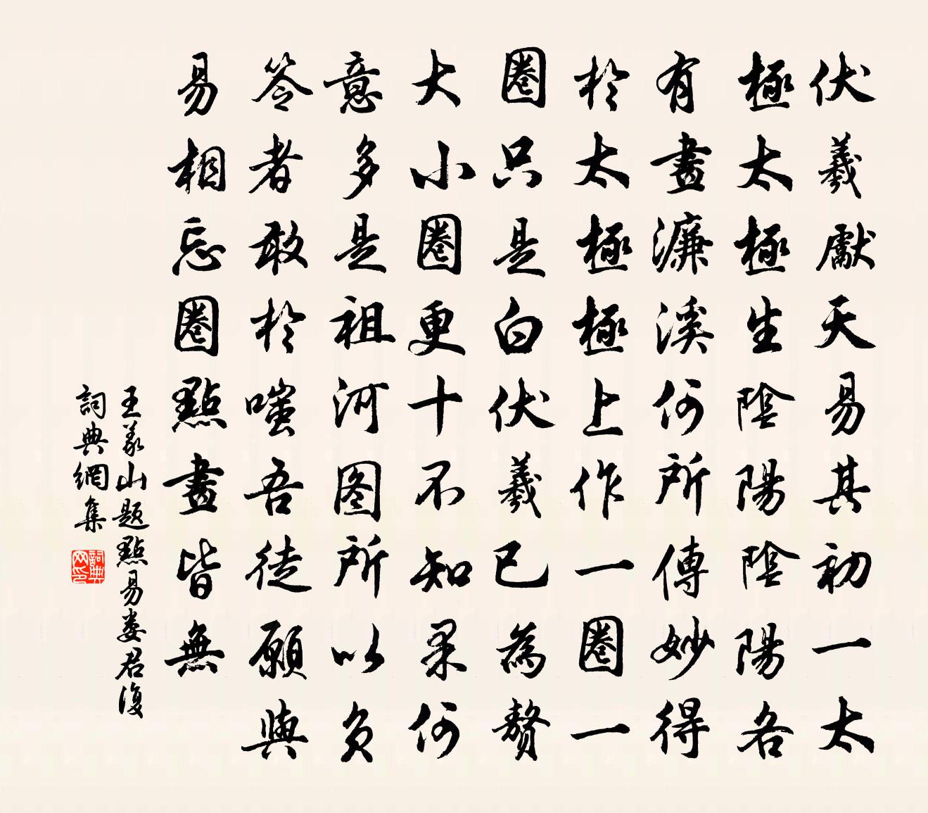 詩詞名句歷史字典書法欣賞書法字典國語詞典說文解字康熙字典古漢語字典標 題 作 者 詩 句 題點易婁君復作者:王義山 朝代:宋代題點易婁君復原文伏羲先天易,其初一太極。太極生陰陽,陰陽各有畫。濂溪何所傳,妙得於太極。極上作一圈,一圈只是白。伏羲已為贅,大小圈更十。不知果何意,多是祖河圖。所以負笭者,敢於嗤吾徒。願與易相忘,圈點畫皆無。詩詞問答問:題點易婁君復的作者是誰?答:王義山問:題點易婁君複寫於哪個朝代?答:宋代王義山題點易婁君復書法欣賞題點易婁君復書法作品詩詞推薦陰伯庸悼詞李新〔宋代〕妙年詞墨一何工,漢苑家聲戚里雄。居避飛塵門似水,客投漫刺袂生風。香消絳帳魚難蠹,月照銀杯酒不空。旭報用戴帥初韻寄孫常州陳著〔宋代〕溪繞山園楊柳遮,戰蝸國里退閒家。兒孫滿眼堂萬卷,賓客多賢館五花。立腳東皋看倦鳥,回頭溫水笑跳蟆。相知蝶戀花(為錢守壽)丘崈〔宋代〕梅子著花當獻壽。得得天工,有意還知否。教在歲寒雙雪後。長年不羨松筠茂。莫厭杯深歌舞奏。約略絲綸,正是花庵二首司馬光〔宋代〕誰謂花庵陋,徒為見者嗤。此中勝廣廈,人自不能知。古戍劉基〔明代〕古戍連山火,新城殷地笳。九洲猶虎豹,四海未桑麻。天迥雲垂草,江空雪覆沙。野梅燒不盡,時見兩三花。留題仙遊潭中興寺,寺東有玉女洞,洞南有馬蘇軾〔宋代〕清潭百尺皎無泥,山木陰陰谷鳥啼。蜀客曾游明月峽,秦人今在武陵溪。獨攀書室窺岩竇,還訪仙姝款石閨。猶有秋懷連文鳳〔宋代〕西北多陰風,日夜吹裳衣。草蟲動機杼,札札鳴聲悲。百憂彌中腸,歡樂復何時。今日忽已逝,來日未可知。且飲佛圖市項安世〔宋代〕雨意陰連日,秋容淡滿溪。水穿平野斷,去截遠山低。客路朝昏畏,村墟卯酉齊。傅聞近湖北,漸喜脫江西。次韻章堯文梅花陳棣〔宋代〕先生讀書常閉戶,卒歲優遊娛藝圃。風雷筆舌待時攄,錦繡肝腸終日吐。鳴騶未驗北山文稿,絳帳且為東道主。忽競渡櫂歌黃公紹〔宋代〕看龍舟,看龍舟,兩堤未斗水悠悠。一片笙歌催鬧晚,忽然鼓棹起中流。謝滕宰彥可惠詩樓鑰〔宋代〕與君相遇海東頭,明月如何忽暗投。自愧重來千歲鶴,永懷靜對五湖鷗。新編不覺成三復,妙思誠堪比四愁。還肯挽北山子何子三首金履祥〔宋代〕每侍圖書右,令人俗慮空。隱憂惟世變,臥病亦春融。聖處一言敬,天然萬理中。音容今永已,哀痛隔幽宮。明月雨再用韻方岳〔宋代〕竹君頗介特,高節凌秋霜。朝來雨聲寒,意色俱淒涼。此豈子敗盟,而不能相忘。秋色雨亦佳,遣我冥搜忙。離騷寄李頤老趙汝騰〔宋代〕易說刊成未,心傳自能雲。寄聲揚舶使,一力主斯文。治園二首胡寅〔宋代〕涉圃親鋤草,分畦剩種蔬。潤通鄰沼近,色映野雲虛。瘴重難求藥,心閒易看書。但令羹有梜,那嘆食無魚。城上白居易〔唐代〕城上鼕鼕鼓,朝衙復晚衙。為君慵不出,落盡繞城花。傷友李群玉〔唐代〕玉棺來九天,鳧舄掩窮泉。蕪沒池塘嶼,淒涼翰墨筵。短期存大夢,舊好委浮煙。我有幽蘭曲,因君遂絕弦。迓杜丞相檥舟白鶴山下有感高斯得〔宋代〕維舟候新弦,薄言憩茲山。叢祠倚層阜,回阡俯澄灣。佇立心目瞿,白鶴懸榜顏。嘉名契舊隱,身疑墮其間。沓嶂擬魏太子鄴中集詩 徐幹謝靈運〔南北朝〕少無宦情,有箕潁之心事,故仕世多素辭。伊昔家臨淄,提攜弄齊瑟。置酒飲膠東,淹留憩高密。此歡謂可終,外秋夕遣懷姚合〔唐代〕昨宵白露下,秋氣滿山城。風勁衣巾脆,窗虛筆墨輕。臨書愛真跡,避酒怕狂名。只擬隨麋鹿,悠悠過一生。名句推薦年年雪裡。常插梅花醉。李清照《清平樂·年年雪裡》 惟有綠荷紅菡萏,卷舒開合任天真。李商隱《贈荷花》 小荷才露尖尖角,早有蜻蜓立上頭。楊萬里《小池》 積善在身,猶長日加益,而人不知也;積惡在身,猶火之銷膏,而人不見也。班固《漢書·傳·董仲舒傳》 離愁不管人飄泊。年年孤負黃花約。黃機《憶秦娥·秋蕭索》 為學日益,為道日損。老子《老子·德經·第四十八章》 荷葉五寸荷花嬌,貼波不礙畫船搖;石濤《荷花》 天仙碧玉瓊瑤,點點揚花,片片鵝毛。薛昂夫《蟾宮曲·雪》 寒雨連江夜入吳,平明送客楚山孤。王昌齡《芙蓉樓送辛漸》 今古河山無定據。納蘭性德《蝶戀花·出塞》
