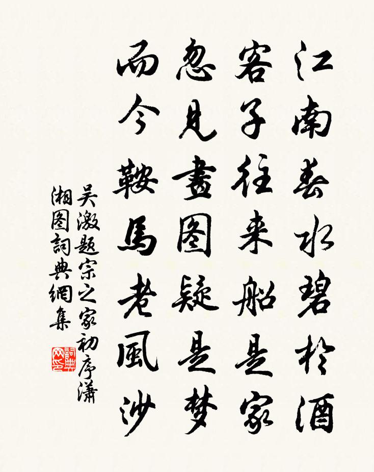 江南春水碧於酒,客子往來船是家。忽見畫圖疑是夢,而今鞍馬老風沙。