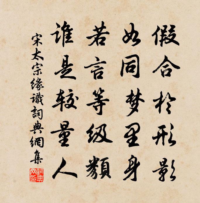 詩詞名句歷史字典書法欣賞書法字典國語詞典說文解字康熙字典古漢語字典標 題 作 者 詩 句 緣識作者:宋太宗 朝代:宋代緣識原文假合於形影,如同夢裡身。若言等級類,誰是較量人。詩詞問答問:緣識的作者是誰?答:宋太宗問:緣識寫於哪個朝代?答:宋代宋太宗緣識書法欣賞緣識書法作品詩詞推薦題乾明寺壁陳造〔宋代〕不待車輪四角生,欲行還駐為交情。又成一笑淥樽晚,詩卷竹風相與清。梅花喜神譜小蕊一十六枝宋伯仁〔宋代〕阿堵本何物,貫朽殊堪羞。空囊留得一,千古欽清流。讀夷堅志趙汝淳〔宋代〕千古丘明法度書,豕啼蛇斗未為誣。後來更有無窮事,付與蘭台鬼董狐。頌古四十八首釋慧開〔宋代〕獅子教兒迷子訣,擬前跳躑早翻身。無端再敘當頭著,前箭猶輕後箭深。次韻寫興吳錫疇〔宋代〕不學韓公咎鬥牛,此心無愧許沙鷗。陰晴明日自雞料,得失頻年已熟籌。痴計空為千載盧,虛名翻誤不生憂。閒中黃雀痴王維〔唐代〕〔雜言走筆〕黃雀痴。黃雀痴。謂言青[彀,“鳥”代“弓”]是我兒。一一口銜食。養得成毛衣。到大啁啾解游六月望日月堂老禪示仆眾偈隨喜愧甚唐士恥〔宋代〕江月主人清冰壺,以月名堂月不如。門前船泊五湖客,兩眼歷照心與俱。我來追涼暑雲徂,牛腰大軸開我愚。萬口送冷朝陽還上元韓翃〔唐代〕青絲纜引木蘭船,名遂身歸拜慶年。落日澄江烏榜外,秋風疏柳白門前。橋通小市家林近,山帶平湖野寺連。別後春日七首呂祖謙〔宋代〕江梅已過杏花初,尚 * 著萼疎。待得重來幾枝在,半隨蝶翅半蜂須。頌古一○一首釋子淳〔宋代〕歸家豈坐碧雲床,出戶不行青草地。南北東西本自由,渠無向背那迴避。幽明吟邵雍〔宋代〕明有日月,幽有鬼神。日月照物,鬼神依人。明由物顯,幽由人陳。人物不作,幽明何分。雜曲歌辭。車遙遙張祜〔唐代〕東方曨曨車軋軋,地色不分新去轍。閨門半掩窗半空,斑斑枕花殘淚紅。君心若車千萬轉,妾身如轍遺漸遠。碧川邢兄大聲以重九日置酒約梁丈仁伯段兄元衡蕃趙蕃〔宋代〕栗里當年節,柯山七字詩。舉觴非徇俗,懷往要銷悲。暑絡膚侵凜,風巾鬢颯衰。多君能醉我,有客更同之。爽軒方師尹〔宋代〕鶴嶺重登不作難,自綠蘿月喜月攀。勝游不減謝安石,佳士況逢元魯山。眼底更無塵事擾,窗開又得許時閒。丁仙章季子攜所作樂府來以詩謝之曾協〔宋代〕平生尚幽僻,塵務百不省。屢從松竹游,身閒愛官冷。何知事大繆,窮日厭鞭打。抽身對佳客,屣倒冠不整。吏徒紀事二十四首梁啓超〔清代〕我非太上忘情者,天賜奇緣忍能謝。思量無福消此緣,片言乞與卿憐借。樊籠雀王冕〔元代〕野雀不向山林宿,如何卻傍人家屋?山林怕遭羅綱圍,人家又恐人驅逐。飲啄頻驚殊不足,辛苦營巢隨養育。昨日朝天子劉克莊〔宋代〕宿雨頻飄灑。歡喜西疇耕者。終朝連夜。有珠璣鳴瓦。漸白水、青秧鷗鷺下。老學種花兼學稼。心兩掛。這幾樹、二月十七日偕賓暘市飲二首方回〔宋代〕無官豈畏犯金科,飲量真能海納河。人老自於春色淡,花開最恨雨聲多。向來伴侶今都盡,乃後光陰復幾何。更挈鵲丁謂〔宋代〕匣照光芒里,熏爐想像間。營巢登大歲,采粟上仙山。玉璞驚心起,星河盡力還。上林無限樹,枯卉莫登攀。名句推薦醉後涼風起,吹人舞袖回。李白《與夏十二登岳陽樓》 己不自信,何以信於人?張廷玉《明史·列傳·卷四十九》 來是空言去絕蹤,月斜樓上五更鐘。李商隱《無題四首》 願我如星君如月,夜夜流光相皎潔。范成大《車遙遙篇》 春朝秋夜思君甚,愁見繡屏孤枕。魏承班《滿宮花·雪霏霏》 改章難於造篇,易字艱於代句劉勰《文心雕龍·附會》 見侮而不鬥,辱也!公孫龍《公孫龍子·跡府》 野橋經雨斷,澗水向田分。劉長卿《碧澗別墅喜皇甫侍御相訪》 箭徑酸風射眼,膩水染花腥。吳文英《八聲甘州·靈岩陪庾幕諸公游》 紫泉宮殿鎖煙霞,欲取蕪城作帝家。李商隱《隋宮》