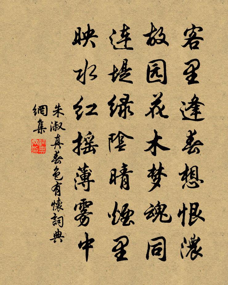 客里逢春想恨濃,故園花木夢魂同。連堤綠陰晴煙里,映水紅搖薄霧中。