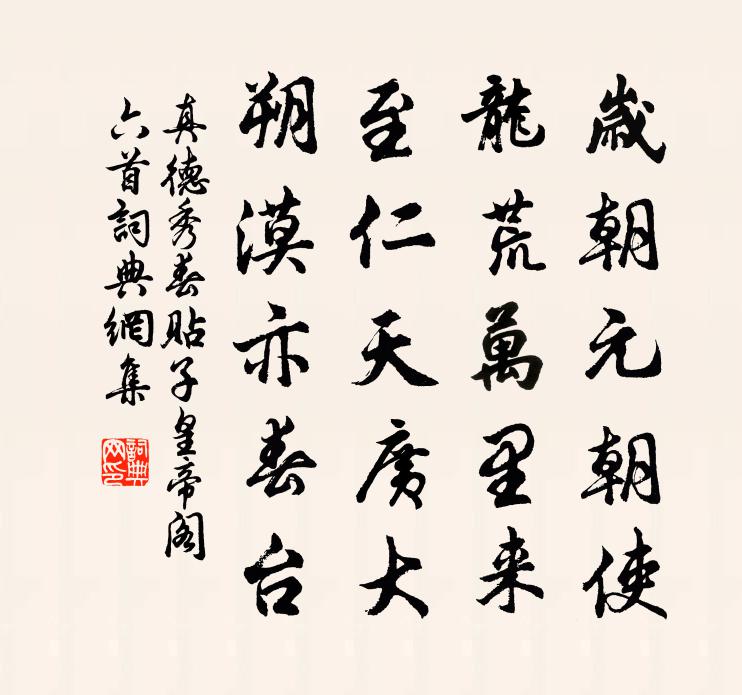 詩詞名句歷史字典書法欣賞書法字典國語詞典說文解字康熙字典古漢語字典標 題 作 者 詩 句 春貼子皇帝閣六首作者:真德秀 朝代:宋代春貼子皇帝閣六首原文歲朝元朝使,龍荒萬里來。至仁天廣大,朔漠亦春台。詩詞問答問:春貼子皇帝閣六首的作者是誰?答:真德秀問:春貼子皇帝閣六首寫於哪個朝代?答:宋代真德秀春貼子皇帝閣六首書法欣賞春貼子皇帝閣六首書法作品詩詞推薦故安國夫人輓詩虞儔〔宋代〕雅趣工書畫,高懷陋鼎鍾。家聲推兩大,壼范見三從。賢得魯侯配,榮開安國封。平生耽靜勝,宸翰煥鸞龍。冬日小齋即事仇遠〔宋代〕蘆葦周遭舊楮糊,就中穴地砌磚爐。儒酸官冷渾相稱,草臥氈眠本不拘。窗外十分西日照,簾間半點北風無。一瓶九日同盧使君幼平吳興郊外送李司倉赴選皎然〔唐代〕重陽千騎出,送客為踟躕。曠野多搖落,寒山滿路隅。晴空懸蒨旆,秋色起菱湖。幾日登司會,揚才盛五都。量移自解王禹偁〔宋代〕商山五百五十日,若比昔賢非滯留。試看江陵元相國,四年移得向通州。頌釋法升〔宋代〕我誦光明經,自得三昧力。興起便周圓,何用高聲覓。一日三百部,日輪猶未昃。見者總生疑,我自心堅實。詠竹雪張玉孃〔宋代〕凍雪霏霏隨九阜,竹枝垂地翠旋鎖。玉龍戰退飛鱗甲,青鳳翻成白羽毛。歲晚餘寒知勁節,夢回佳興訝清剽。隔雲贈陸稼村陳深〔宋代〕風雨雞鳴江上村,只今遺叟幾人存。煎茶陸羽忘塵世,學稼攀遲老聖門。百尺蒼松心不朽,千年古井水無渾。丹崖嘗春酒王績〔唐代〕野觴浮鄭酌,山酒漉陶巾。但令千日醉,何惜兩三春。送宋周臣赴殿詩李若水〔宋代〕近侍傳呼到集英,參差宮殿曉霞明。丹墀日對三千字,雲翼風高九萬程。天子臨軒應動色,諸生閣筆總銷聲。臚傳中秋月薛瑩〔唐代〕三十六旬盈復缺,百年堪喜又堪傷。勸君莫惜登樓望,雲放嬋娟不久長。甘棠梨王安石〔宋代〕甘棠詩所歌,自足夸眾果。愛其凌秋霜,萬玉懸磊砢。園夫盛採摘,市賈爭包裹。車輸動盈箱,舟載輒連柁。朝分酬浙東李侍郎越州春晚即事長句劉禹錫〔唐代〕越中藹藹繁華地,秦望峰前禹穴西。湖草初生邊雁去,山花半謝杜鵑啼。青油晝卷臨高閣,紅旆晴翻繞古堤。明日可惜白玉蟾〔宋代〕人間何似神霄府,我今面目蒙塵土。年來無夢到神霄,一度傷懷淚如雨。風前無奈倚欄乾,雪裡不堪聞杜宇。此情次韻泮宮直宿早秋四首傅察〔宋代〕一方明月落長空,萬里餘輝鎖玉櫳。蟬韻啾啾來遠木,槐雲裊裊弄清風。共邀載酒陶彭澤,走訪談經載侍中。景物世弼惠詩求舜泉輒欲以長安酥共泛一杯次韻戲黃庭堅〔宋代〕寒齏薄飯留佳客,蠹簡殘編作近鄰。避地梁鴻真好學,著書揚子未全貧。玉酥鏈得三危露,石火燒成一片春。沙鼎答晁以道陳師道〔宋代〕轉走東南復帝城,故人相見眼偏明。十年作吏仍餬口,兩地為鄰闕寄聲。冷眼尚堪看細字,白頭寧復要時名。孰知啄木齊己〔唐代〕啄木啄啄,鳴林響壑。貪心既緣,利嘴斯鑿。有朽百尺,微蟲斯宅。以啄去害,啄更彌劇。層崖豫章,聳乾蒼蒼。東湖四詠陳宓〔宋代〕西山老禪叟,依廠安數椽。趺坐看東海,滄溟幾桑田。前此復誰居,今逾三百年。鐘鼓如一日,從教歲徂遷。人生德麟留詩相別輒次韻賀送晁說之〔宋代〕安穩王孫一葉舟,朅來京國淡無求。任生白髮曾料虎,分絕紅塵自狎鷗。桓笛不堪留往恨,膺門誰復憶同游。重陽浣溪沙佚名〔宋代〕酒拍胭脂顆顆新。丹砂然火棄精神。暑天秋杪錦生春。香味已驚櫻實淡,絳皮還笑荔枝皴。美人偏喜破朱唇。名句推薦花紅易衰似郎意,水流無限似儂愁。劉禹錫《竹枝詞·山桃紅花滿上頭》 以國為國,以天下為天下。劉向 編《六親五法》 摘青梅薦酒,甚殘寒,猶怯薴蘿衣。湯恢《八聲甘州·摘青梅薦酒》 春思亂,芳心碎。惠洪《千秋歲·半身屏外》 風摧寒棕響,月入霜閨悲。李白《獨不見》 道之以政,齊之以刑,民免而無恥。道之以德,齊之以禮,有恥且格。司馬遷《史記·七十列傳·酷吏列傳》 而今識盡愁滋味,欲說還休。辛棄疾《醜奴兒·書博山道中壁》 瞿塘嘈嘈十二灘,此中道路古來難。劉禹錫《竹枝詞九首·其七》 莫道讒言如浪深,莫言遷客似沙沉。劉禹錫《浪淘沙九首》 今何許。憑闌懷古。殘柳參差舞。姜夔《點絳唇·丁未冬過吳松作》