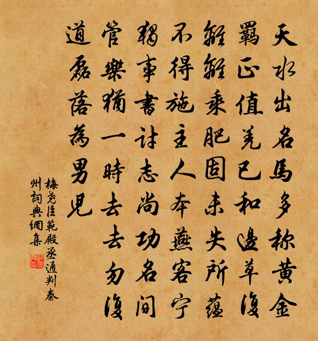 天水出名馬,多稱黃金羈。正值羌已和,邊草復離離。