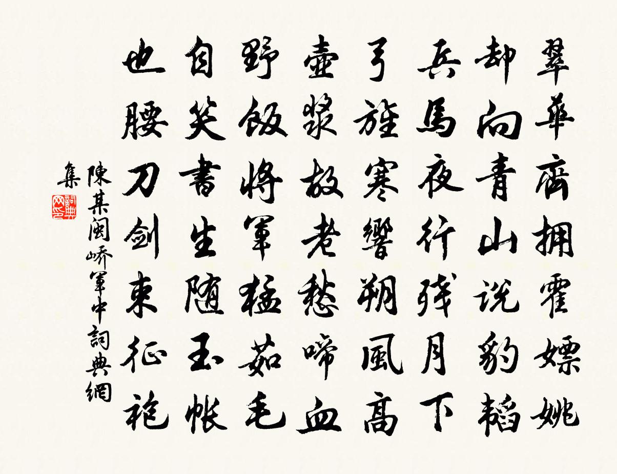 詩詞名句歷史字典書法欣賞書法字典國語詞典說文解字康熙字典古漢語字典標 題 作 者 詩 句 閩嶠軍中作者:陳某 朝代:宋代閩嶠軍中原文翠華齊擁霍嫖姚,卻向青山說豹韜。兵馬夜行殘月下,弓旌寒響朔風高。壺漿故老愁啼血,野飯將軍猛茹毛。自笑書生隨玉帳,也腰1~1刀劍束征袍。詩詞問答問:閩嶠軍中的作者是誰?答:陳某問:閩嶠軍中寫於哪個朝代?答:宋代陳某閩嶠軍中書法欣賞閩嶠軍中書法作品詩詞推薦撲蝴蝶曹組〔宋代〕人生一世。思量爭甚底。花開十日,已隨塵共水。且看欲盡花枝,未厭傷多酒盞,何須細推物理。幸容易。有人爭閏夏六月書事一首劉克莊〔宋代〕自矜力健爪距剛,乘夜陰黑來康莊。東家亡羊西失狗,不覺杲日升扶桑。村農賈勇群捕逐,一農奮戈扼其吭。虎立一剪梅(莆中賞梅)趙師俠〔宋代〕雪裡盈盈玉破花。遐想風流,壓盡京華。點酥團粉任敧斜。獨露春妍誰似他。有酒何須稚子賒。訪戴歸來,倚棹溪游浮玉三首蔡肇〔宋代〕中{氵靈}南畔大叢林,龍象初排四眾欽。一月遍收銀 * ,兩山相擊海潮音。安心已竟元無法,舉意全拋莫浪尋題秋塘圖二首陳深〔宋代〕寒塘淨如鏡,雲冷水葓秋。溪鳥無情物,悠悠不解愁。霜天曉角楊均〔宋代〕當年宋壁。血擁河流赤。全護東南形勝,百易萬、五神力。人心同奮激。立此生民極。哀角載歌霜曉,瓊ⅳ、聖挽黃幾道張耒〔宋代〕異政潁川鳳,遺風叔度陂。聞哀苦朋友,歸葬束書詩。百歲鄉人社,他年故吏碑。知公萬金產,故在阿戎兒。杜處士新居羅隱〔唐代〕翠斂王孫草,荒誅宋玉茅。寇余無故物,時薄少深交。迸筍穿行徑,飢雛出壞巢。小園吾亦有,多病近來拋。壽趙推官趙福元〔宋代〕天枝分秀藹璇杓,光涌銀河半夜潮。西母誕彌先十日,壽星頒朔恰三朝。騎龍曾把黃金斧,駕鳳旋登紫玉霄。兩國和石解元白蓮釋慧遠〔宋代〕玉女欹冠瑩夜塘,雪敷仙掌犯秋香。江南五月多風韻,素艷天資難點妝。發金陵折柳亭二首張耒〔宋代〕桃李蕃晴日,江山秀晚春。孤舟多病客,長道未歸人。豪俗競行樂,倦遊慵問津。南山還暮雨,疑有楚台神。重陽陳與義〔宋代〕去歲重陽已百憂,今年依舊嘆羈游。籬底菊花唯解笑,鏡中頭髮不禁秋。涼風又落宮南木,老雁孤鳴漢北州。如許荔枝香近·七夕吳文英〔宋代〕睡輕時聞,晚鵲噪庭樹。又說今夕天津,西畔重歡遇。蛛絲暗鎖紅樓,燕子穿簾處。天上、未比人間更情苦。秋鬢奉和陳賢良蘇軾〔宋代〕不學孫吳與六韜,敢將駑馬並英豪。望窮海表天還遠,傾盡葵心日愈高。身外浮名休瑣瑣,夢中歸思已滔滔。三山送潘德久之官建康陳傅良〔宋代〕平生不解通毛刺,萬事無能改鬢華。豈是襟懷堪逆旅,直須詩句可名家。老為賓客從戎幙,強使妻孥理帽紗。不有樂府雜擬黃彥平〔宋代〕古來達士志,愛日懷兢慎。皇皇百年心,穆穆三才順。後生不作意,易名才慕藺。感慨能幾何,繁華終共盡。不須齡叟以詩來壽余次韻以復陳著〔宋代〕彼美慈雲叟,相存馬少游。槐淘參玉版,藻句粲銀鉤。外友更誰在,前緣曾共修。從今各珍重,萬事等虛舟。荊州新秋病起雜題一十五首病起見閒雲齊己〔唐代〕病起見閒雲,空中聚又分。滯留堪笑我,舒捲不如君。觸石終無跡,從風或有聞。仙山足鸞鳳,歸去自同群。玄關一竅頌周無所住〔宋代〕一竅才通萬竅通,絲毫不動露真空。箇中便是真宗祖,認著依前又不中。飛狐趙立〔宋代〕舞毒山中夸巨蟒,問經岩下化靈狐。不知昨夜飛鳴處,曾報溪翁到此無。名句推薦耕犁千畝實千箱,力盡筋疲誰復傷?李綱《病牛》 四體不勤,五穀不分孔子弟子《論語·微子篇》 便向夕陽影里,倚馬揮毫。納蘭性德《風流子·秋郊即事》 今宵剩把銀釭照,猶恐相逢是夢中。晏幾道《鷓鴣天·彩袖殷勤捧玉鍾》 舒捲江山圖畫,應答龍魚悲嘯,不暇顧詩愁。楊炎正《水調歌頭·登多景樓》 茶鼎熟,酒卮揚,醉來詩興狂。張大烈《阮郎歸·立夏》 幸非一人,專固害。來俊臣《羅織經·治下卷第三》 其出不出,間不容髮。班固《漢書·傳·賈鄒枚路傳》 叩枻長歌,嫦娥欲下,萬里揮冰雪。趙秉文《大江東去·用東坡先生韻》 幅巾藜杖北城頭,捲地西風滿眼愁。陸游《秋晚登城北樓》