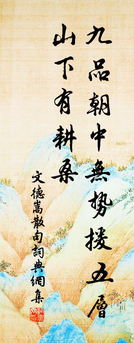 詩詞名句歷史字典書法欣賞書法字典國語詞典說文解字康熙字典古漢語字典標 題 作 者 詩 句 句作者:文德嵩 朝代:宋代句原文九品朝中無勢援,五層山下有耕桑。詩詞問答問:句的作者是誰?答:文德嵩問:句寫於哪個朝代?答:宋代文德嵩句書法欣賞句書法作品詩詞推薦看新曆釋文珦〔宋代〕又看景定新頒歷,百歲還驚五十過。憶昔壯懷多曠遠,只今衰鬢已蹉跎。飄零世路饒荊棘,展轉歸心念薜蘿。春草予欲金玉汝贈黃從善黃庭堅〔宋代〕汪山復重兮朋友失,長處幽篁兮隔離天日。鳥聲無人兮我友來即,久矣不聞德人之言兮,為余發藥。嘉若人兮甚好紅窗迥王哲〔元代〕磨著墨,木硯瓦。窗前竹,我看真箇瀟灑。試問點茶人人,得行行行者。慈悲慈悲不可舍。作善緣、敲盞何須音啞久不雨喜見晚雲文同〔宋代〕晚雲萬丈如銀山,日光返射紅孱顏。莫夸突兀在天上,且放滂沱來人間。雷公施力已憤怒,風伯壞事休庸頑。我將陳德瑞饋新茶朱松〔宋代〕空山冥冥雲霧窗,春風好夢欹殘缸。朝來果得故人信,微凸而么犀銙雙。貴人爭買百瓔珞,此心兒女久已降。坐觀野步賀鑄〔宋代〕津頭微徑望城斜,水落孤邨格嫩沙。黃草庵中疏雨濕,白頭翁嫗坐看瓜。次韻周守游海棠溪張嵲〔宋代〕浣紗何處是,空翠隔崔嵬。嫩綠連山暗,妖紅照水開。惜春嗟婉娩,載酒約徘徊。莫怪胭脂濕,曾經夜雨來。曉晴姜特立〔宋代〕晴光弄曉色,雲物共昭回。豈唯山川豁,覺我懷抱開。便欲御冷風,飄搖跨蓬萊。不視人世間,往往隔囂埃。寒食清明十首劉克莊〔宋代〕老人七十八,佳節一百五。丁寧海棠花,更可數日不。試院唱酬十一首其四次韻呂君興善寺靜軒蘇轍〔宋代〕自恨尋山計苦遲,年過四十始知非。小軒迎客如招隱,野鳥窺人自識機。窗外竹深孤鶴下,階前菊秀晚蜂飛。老僧四月十一日初食荔支蘇軾〔宋代〕南村諸楊北村盧,(謂楊梅、盧橘也。)白花青葉冬不枯。垂黃綴紫煙雨里,特與荔支為先驅。海山仙人絳羅襦,真瑞堂前丹桂范成大〔宋代〕血色凡花太俗生,花工新意染秋英。袍紅太重鞓紅淺,畫不能摹句寫成。舟行晚泊江上寺杜荀鶴〔唐代〕久勞風水上,禪客喜相依。掛衲雖無分,修心未覺非。日沈山虎出,鍾動寺禽歸。月上潮平後,談空漸入微。贈朱方李道人黃庭堅〔宋代〕觀骨橫穿壽門過,年比數珠剩三顆。橫吹鐵笛如怒雷,國初舊人惟有我。同兵部李紓侍郎刑部包佶侍郎哭皇甫侍御曾盧綸〔唐代〕攀龍與泣麟,哀樂不同塵。九陌霄漢侶,一燈冥漠人。舟沈驚海闊,蘭折怨霜頻。已矣復何見,故山應更春。得道陽王哲〔元代〕九月蒼天爽氣高。重樓復降雨瀟瀟。攪海赤龍真自在,迎風木馬肯無寥。每向*中作系腰。六銖衣掛勝紅綃。醉後次韻外舅黃虞卿為愛山園好八首喻良能〔宋代〕為愛山園好,芒鞵步步高。綠針撏露韭,碧箸翦春蒿。但得林泉趣,誰能州縣勞。何慚王孝伯,痛飲讀離騷。正夫草卷已就余例亦奏牘今得絕筆鄭獬〔宋代〕琳琅之寶出荊山,合作珪璋與佩環。楚澤白茅最微陋,何緣亦在貢書間。宴清都 端午梁寅〔元代〕帶恨湘江水。無柰遠、楚雲天際千里。靈均一去,芳蓀翠減,香籬青死。龍舟鼉鼓聲沸。嘆舊俗、空夸水戲。樂少臥病韓元吉〔宋代〕有身自覺皆為患,了事從來卻號痴。貧里定知強健樂,未妨斗酒百篇詩。名句推薦高處鶯啼低蝶舞。何況日長,燕子能言語。劉鉉《蝶戀花·送春》 芳樹無人花自落,春山一路鳥空啼。李華《春行即興》 重岡已隔紅塵斷,村落更年豐。元好問《人月圓·重岡已隔紅塵斷》 反水不收,後悔無及。范曄《後漢書·本紀·光武帝紀上》 漫江碧透,百舸爭流。 * 《沁園春·長沙》 明月,明月,胡笳一聲愁絕。戴叔倫《轉應曲·邊草》 是親不是親,非親卻是親。佚名《增廣賢文·上集》 闌乾風冷雪漫漫,惆悵無人把釣竿。姜夔《釣雪亭》 沙場烽火連胡月,海畔雲山擁薊城。祖詠《望薊門》 嘆十年心事,休休莫莫。吳潛《滿江紅·豫章滕王閣》