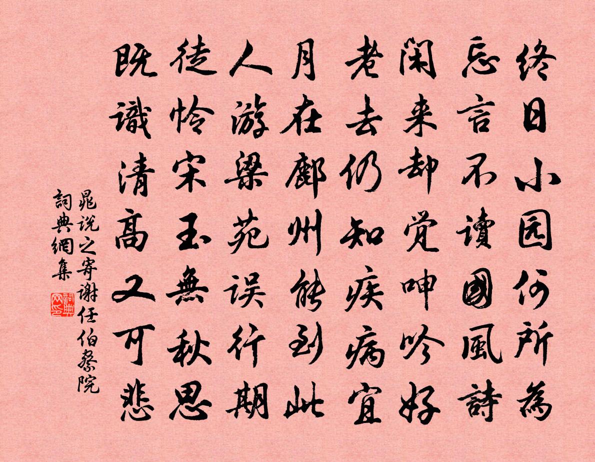 詩詞名句歷史字典書法欣賞書法字典國語詞典說文解字康熙字典古漢語字典標 題 作 者 詩 句 寄謝任伯察院作者:晁說之 朝代:宋代寄謝任伯察院原文終日小園何所為,忘言不讀國風詩。閒來卻覺呻吟好,老去仍知疾病宜。月在鄜州能到此,人游梁苑誤行期。徒憐宋玉無秋思,既識清高又可悲。詩詞問答問:寄謝任伯察院的作者是誰?答:晁說之問:寄謝任伯察院寫於哪個朝代?答:宋代晁說之寄謝任伯察院書法欣賞寄謝任伯察院書法作品詩詞推薦和立齋橘花韻王柏〔宋代〕梅花已仙去,草木同蕕薰。萬物競妖冶,二氣勞氤氳。南服有橘隱,春風罔知聞。濃露浥清曉,落月籠夜分。玉圓林文節贈賈收詩稿二詩帖贊岳珂〔宋代〕歐稱醉翁,公稱醒老。尚論平生,豈以詩考。慶曆之滁,元佑之湖。醒歟醉歟,醉歟醒歟。獨客釋文珦〔宋代〕嘖嘖陰蟲鳴不已,獨客無悰夜中起。迢遙星漢正西流,千峰浸月清如水。送妻弟魏生還里王世貞〔明代〕阿姊扶床泣,諸甥繞膝啼。平安只兩字,莫惜過江題。次法石寺即事韻胡仲弓〔宋代〕近郊來往熟,馴犬向人迎。半是吟將老,何時隱得成。月明山景合,潮落海痕生。歸路霜鍾外,微聞三數聲。溪居裴度〔唐代〕門徑俯清溪,茅檐古木齊。紅塵飄不到,時有水禽啼。方壺別墅汪楚材〔宋代〕面面軒窗好,溪山不待招。清風修竹徑,細雨綠荷橋。地僻人煙少,天恢景象饒。襟懷無一事,終老樂簞瓢。斗嬋娟(春感)張炎〔宋代〕舊家池沼。尋芳處、從教飛燕頻繞。一灣柳護水房春,看鏡鸞窺曉。暈宿酒、雙蛾淡掃。羅襦飄帶腰圍小。盡醉方後池新柳祖無擇〔宋代〕客來莫怪寡心情,俗吏喧曄不喜聽。多感後池楊柳眼,一回相對一回青。觀棋貫休〔唐代〕逸格格難及,半先相遇稀。落花方滿地,一局到斜暉。褚胤死不死,將軍飛已飛。今朝慚一行,無以造玄微。句趙彥彬〔宋代〕自愛檻前山有意,誰雲堂下水污人。松源山喻良能〔宋代〕征途未盡弋陽西,且過松源九節溪。煙雨濛濛山色好,鷓鴣更與盡情啼。老棕舒岳祥〔宋代〕馬鬃頻剪新心吐,鳳翅初開勁葉森。更有木魚三百尾,山僧鍋里煮黃金。二十日同官相約過水鄉蕃雨中先至偶成二詩趙蕃〔宋代〕此雨不易得,有秋端可期。微官如飽飯,餘事亦窮詩。雞遠村場聽,鳩深客路疑。是身真已老,何事此長羈。贈孫季蕃翁卷〔宋代〕立談飛絮中,相遇在吳宮。以我為生拙,憐君失計同。醉酣花落月,吟苦竹搖風。自作廬山記,幽奇欲遍窮。送崔載華、張起之閩中劉長卿〔唐代〕不識閩中路,遙知別後心。猿聲入嶺切,鳥道問人深。旅食過夷落,方言會越音。西征開幕府,早晚用陳琳。勸農虞儔〔宋代〕慚愧荒三徑,羈棲漫一同。青春非老事,白眼有途窮。柳暗鴉藏綠,花飄燕蹴紅。平生孔北海,未放酒樽空。過東亭湖喻良能〔宋代〕籃輿詰旦過東亭,日出煙銷十里平。翠袖舞風菰葉舉,紅妝照水藕花生。恨無釣艇浮深碧,賴有吟毫賦曉晴。歸對浪淘沙吳潛〔宋代〕長記去年時。雪滿征衣。佳人攜手畫樓西。今日關山千里外,此恨誰知。想見綠窗低。依舊空閨。惜春還是惜花飛青玉案 彥成以他故去,作此懷之 讀畫齊本玉顧阿瑛〔元代〕春寒側側春陰薄。整半月,春蕭索。旭日朝來升屋角。樹頭幽鳥,對調新語,語罷雙飛卻。紅入花腮青入萼。盡不名句推薦大仇必去,小人勿輕,禍不可伏。來俊臣《羅織經·固榮卷第六》 望雲慚高鳥,臨水愧游魚。陶淵明《始作鎮軍參軍經曲阿作》 春草如有情,山中尚含綠李白《金門答蘇秀才》 男兒何不帶吳鉤,收取關山五十州。李賀《南園十三首·其五》 獨在異鄉為異客,每逢佳節倍思親。王維《九月九日憶山東兄弟 / 九月九憶山東兄弟》 念歸林葉換,愁坐露華生。張九齡《西江夜行》 草草興亡休問,功名淚、欲盈掬。黃機《霜天曉角·儀真江上夜泊》 年年今夜,月華如練,長是人千里。范仲淹《御街行·秋日懷舊》 待何年歸去,談笑各爭雄。顧太清《高山流水·次夫子清風閣落成韻》 雨後輕寒猶未放。春愁酒病成惆悵。歐陽修《蝶戀花·面旋落花風蕩漾》