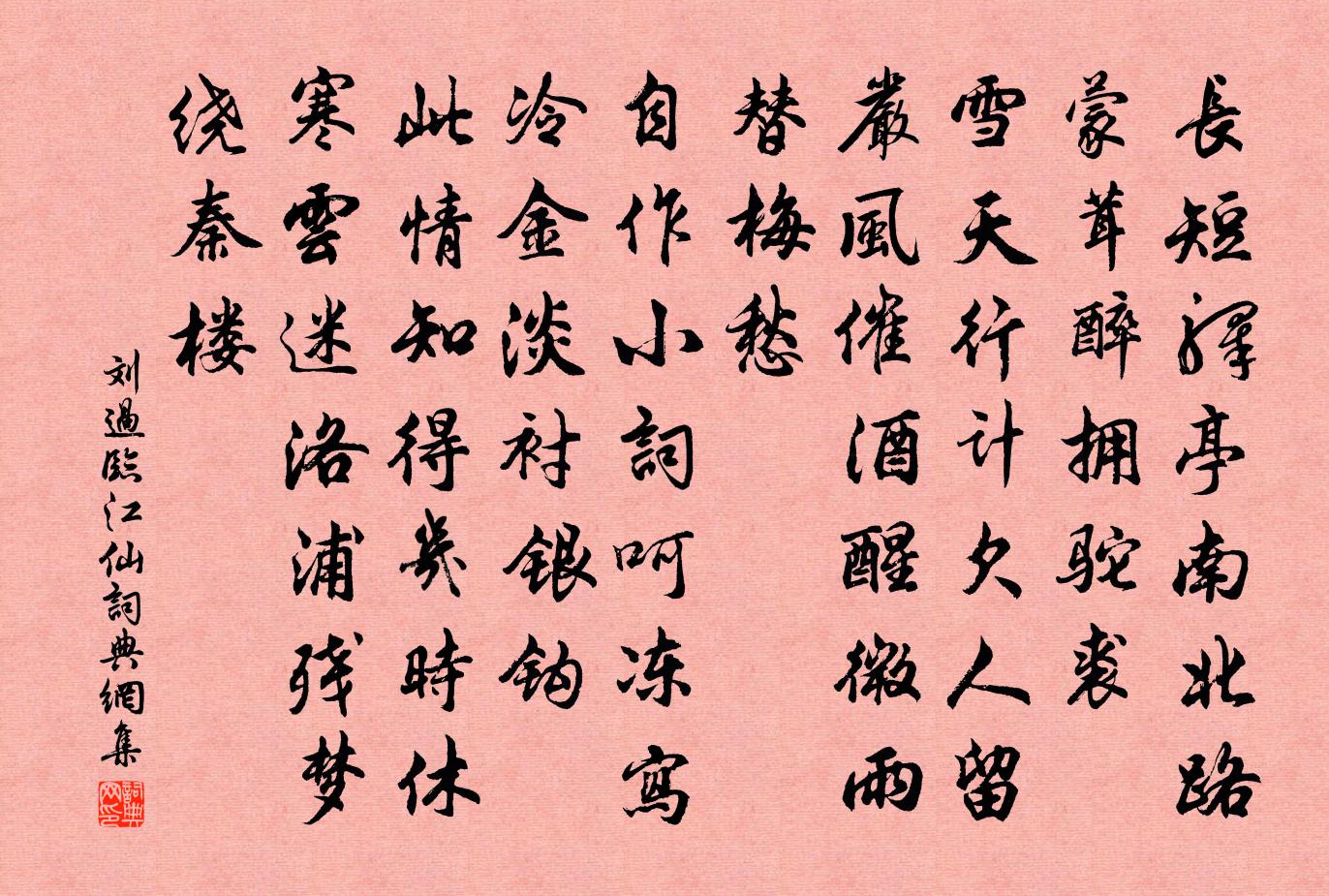 自作小詞呵凍寫,冷金淡襯銀鉤。