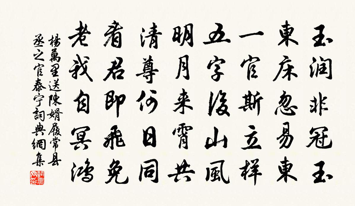 玉潤非冠玉,東床忽易東。一官斯立樣,五字後山風。