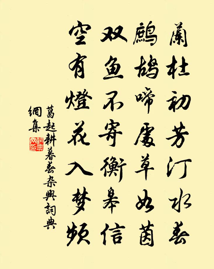詩詞名句歷史字典書法欣賞書法字典國語詞典說文解字康熙字典古漢語字典標 題 作 者 詩 句 暮春雜興作者:葛起耕 朝代:宋代暮春雜興原文蘭杜初芳汀水春,鷓鴣啼處草如茵。雙魚不寄衡皋信,空有燈花入夢頻。詩詞問答問:暮春雜興的作者是誰?答:葛起耕問:暮春雜興寫於哪個朝代?答:宋代葛起耕暮春雜興書法欣賞暮春雜興書法作品詩詞推薦次范無外孫花翁游法喜寺韻二首葉茵〔宋代〕江流環合路紆迴,香火千年地少埃。佛法本從方寸起,逢人剛道自西來。寄黃鶚秀才李中〔唐代〕長憶狂游日,惜春心恰同。預愁花片落,不遣酒壺空。草軟眠難捨,鶯嬌聽莫窮。如今千里隔,搔首對秋風。延平次趙糾曹韻十四首經史閣陳宓〔宋代〕小閣瞰清池,荷花鎮長見。吏休苟得暇,只攜書一卷。補史十忠詩參政行丞相事陸公秀夫劉壎〔宋代〕天地無托足,海天同隰光,明知復何為。不忍隳三綱。裸薦覬少延,謳歌寧遠忘。或者莒在齊,聊且帝一方。竭蹶和文與可洋州園亭三十詠其二十二菡萏軒蘇轍〔宋代〕開花濁水中,抱性一何潔。朱檻月明時,清香為誰發。寒食安厚卿具酒饌邀數君子游壓沙寺觀梨花獨強至〔宋代〕花前爛醉如泥淤,猶恐花過嗟空株。壓沙梨開百頃雪,春晚未賞計已疏。厚卿置酒趁寒食,蜂喧蝶鬧人意蘇。林間游鼓山真德秀〔宋代〕嚴宸有追詔,趣上太守符。疲民未甦醒,還雇空躊躇。來尋靈源盟,喜與佳客俱。始酌清泠泉,一浣丹墨洿。超然甘州(題戚五云云山圖)張炎〔宋代〕過千岩萬壑古蓬萊,招隱竟忘還。想乾坤清氣,霏霏冉冉,卻在闌乾。洞戶來時不鎖,歸水映花關。只可自怡悅,乙未元夕坐有用東坡上元韻二首胡銓〔宋代〕漫雲學佛意何曾,且伴西鄰正覺僧。莫言酒狂剛止酒,且來燈下看傳燈。人言星近如堪摘,誰謂天高不可升。見說寂後寄少林長老二首釋道濟〔宋代〕腳絣緊系興無窮。拄杖挑雲入亂峰。欲識老僧行履處,天台南嶽舊家風。早出晚歸白居易〔唐代〕早起或因攜酒出,晚歸多是看花回。若拋風景長閒坐,自問東京作底來。賢女祠戴復古〔宋代〕士有敗風節,慚魂埋九京。幽閨持大誼,千載著嘉名。父不重然諾,女能輕死生。寒潭墮秋月,心跡兩清明。鴛鴦湖棹歌 之五十六朱彝尊〔清代〕屋上鳩鳴穀雨開,橫塘游女蕩舟回。桃花落後蠶齊浴,竹筍抽時燕便來。真戒大師求頌釋正覺〔宋代〕炷香坐羊氈,默默心住禪。仙桂萌兔窟,神珠媚龍淵。湛照自家事,出隨群動緣。應機分手眼,不翅有千千。壬子正月四日後圃行散四首楊萬里〔宋代〕雙鵲營巢浪苦辛,棟條御折不辭頻。舊條老硬新條勒,卻向籬根拾落薪。答彭以直張埴〔宋代〕南山歲雲莫,此日別玄同。至今梅花句,華耀白髮翁。三見秋江月,何事苦縈系。兩夜金風生,吹清幾山桂。所思重感白居易〔唐代〕停驂歇路隅,重感一長吁。擾擾生還死,紛紛榮又枯。困支青竹杖,閒捋白髭鬚。莫嘆身衰老,交遊半已無。真定懷古陳孚〔元代〕千里桑麻綠蔭城,萬家燈火管弦清。恆山北走見雲氣,滹水西來聞雁聲。主父故宮秋草合,尉陀荒冢莫煙平。開元泛楚江崔塗〔唐代〕九重城外家書遠,百里洲前客棹還。金印碧幢如見問,一生安穩是長閒。送太守李公陳天麟〔宋代〕亂花翻陣雨,飛絮轉輕球。別思昏如醉,征鞍挽不留。職循今列郡,秩視古諸侯。當代人爭仰,惟公政最優。洋川名句推薦水中可居者曰洲,小洲曰陼,小陼曰沚,小沚曰坻。佚名《爾雅·釋水》 虛則知實之情,靜則知動者正。韓非及後人《韓非子·主道》 一笛當樓,謝娘懸淚立風前史達祖《玉蝴蝶·晚雨未摧宮樹》 簾控鉤,掩上珠樓,風雨替花愁喬吉《春閨怨·不系雕鞍門前柳》 天下三分明月夜,二分無賴是揚州。徐凝《憶揚州》 中山人予之貓,貓善捕鼠及雞。劉基《乞貓》 人有不為也,而後可以有為。孟子《孟子·離婁章句下·第八節》 謂誰朝來不作意,狂風挽斷最長條。杜甫《絕句漫興九首·其一》 莫見乎隱,莫顯乎微,故君子慎其獨也。子思《禮記·中庸》 名為虛,智者不計毀譽;利為上,愚者惟求良善。來俊臣《羅織經·制敵卷第五》