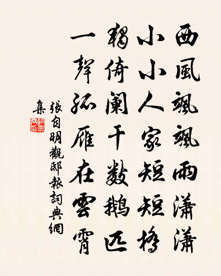 詩詞名句歷史字典書法欣賞書法字典國語詞典說文解字康熙字典古漢語字典標 題 作 者 詩 句 觀邸報作者:張自明 朝代:宋代觀邸報原文西風颯颯雨瀟瀟,小小人家短短橋。獨倚闌乾數鵝匹,一聲孤雁在雲霄。詩詞問答問:觀邸報的作者是誰?答:張自明問:觀邸報寫於哪個朝代?答:宋代張自明觀邸報書法欣賞觀邸報書法作品詩詞推薦十報恩馬鈺〔元代〕禁菸禁火禁心猿。真息調來永永綿。雲水不游芳草徑,身心豈著杏花天。為人勿作墳中鬼,學我能修物外仙。異日晉寧感興朱自牧〔金代〕莫將官況說葭蘆,一味蕭條稱鄙夫。老圃不禁蔬代肉,樵丁還喜炕連廚。兒音半已漸秦晉,鄉信無因接魯洙。三見天輔歸休再用前韻並其弟屬子勉所和詩見寄再李復〔宋代〕西北秋風動碧雲,經年忽忽慘離群。去辭北闕投新綬,歸老東山綴舊文。詩遇惠連須長價,書從阿買可張軍。平生西江月馬鈺〔元代〕是是非非遠遠。塵塵冗冗捐捐。人人肯肯解冤冤。步步灣灣淺淺。善善常常戀戀。玄玄永永綿綿。明明了了這圓圓一錢陸游〔宋代〕萬事紛紛不足論,滿庭枯草閉柴門。一錢留得終羞澀,持買餦餭引福孫。寄黃吉甫王安石〔宋代〕學兼文武在吾曹,別後應看虎豹韜。欲問廟堂誰鎮撫,尚傳邊塞敢驚騷。旌旗急引飛黃下,烽火遙連太白高。聞說春晚嘆陸游〔宋代〕一風花已快晴,花微雲復成花雨。盛麗花女郎花,坐看委泥土。蜂房蜜已熟,科斗生兩股。堂堂一年春,結束聽杜楚歸晉知罃左丘明〔先秦〕晉人歸楚公子谷臣,與連尹襄老之屍於楚,以求知罃。於是荀首佐中軍矣,故楚人許之。 王送知罃,曰:“子宣召赴龍圖閣觀太宗御書應製楊億〔宋代〕非煙蔥蔚蒼龍闕,紫府深沈大帝居。群玉中天開策府,神龜溫洛薦圖書。珠宮岑寂經行處,金簡熒煌拭目初。曾是次韻韶倅李通直二首蘇軾〔宋代〕一篇瀧吏可書紳,莫向長沮更問津。老去常憂伴新鬼,歸來且喜是陳人。曾陪令尹蒼髯古,又見郎君白髮新。回首清輝堂王朝佐〔宋代〕古汴寒灰不可溫,熒熒孤嶼火猶存。一抔未問長陵土,兩字先勞萬乘尊。卓筆有鋒兵自弱,投戈無志藝何論。清輝過廣愛寺,見三學演師,觀楊惠之塑寶山、朱蘇軾〔宋代〕妙跡苦難尋,茲山見幾層。亂峰螺髻出,絕澗陣雲崩。措意元同畫,觀空欲問僧。莫教林下意,終老嘆何曾。游越山幸元龍〔宋代〕上得越山半,方壺紫翠環。山幽春溜響,花落午見閒。梵剎依松外,仙家在竹間。小窗借高枕,風定鳥綿蠻。江村道中書觸目陸游〔宋代〕短籬曲曲對開門,修竹陰陰不見村。別浦回潮魚滬密,孤舟春近雁沙溫。路逢行客時交轡,店賣新醅一舉樽。忽過沁園春 玄旦日先君冀郡公作此示勉敬跋於後歐陽龍生〔元代〕玄子來前,還憶汝,今朝初度時。是吾家幾世,書香閥閱,我翁疇昔,心地坦夷。宅相伊何,泛紅老子,汝母慈仁六月閔雨黃庭堅〔宋代〕湯帝咨嗟懲六事,漢庭災異劾三公。聖朝罪己恩寬大,時雨愆期旱蘊隆。東海得無冤死婦,南陽疑有臥雲龍。傳聞落葉趙蕃〔宋代〕卷卷從何起,多因為晚風。飄飄久不下,還復反荒叢。次韻蘇和甫雨後觀梅魏了翁〔宋代〕歲寒賓友伴蕭蕭,客氣無根已盡凋。疏影照人騷夢冷,清香徹骨醉痕銷。話逢理到春生坐,飲為心知月滿瓢。更祝壽丞相慶七十五首吳泳〔宋代〕渤海兵戈靜,全淮版籍歸。紅繅蠶繭大,紫擘蟹鰲肥。柳港添生色,榆關閟殺機。君王新御殿,莫使諫書稀。禪人並化主寫真求贊釋正覺〔宋代〕額高眼深,該抹叢林。人驚大膽,我自無心。默轉機梭路,誰投缽水針。覿面相呈了也,抬頭何處相尋。名句推薦王孫莫把比蓬蒿,九日枝枝近鬢毛。鄭谷《菊》 鞠躬盡瘁,死而後已。諸葛亮《後出師表》 大丈夫相時而動。曹雪芹《紅樓夢·第四回》 野老念牧童,倚杖候荊扉。王維《渭川田家》 八月湖水平,涵虛混太清孟浩然《望洞庭湖贈張丞相/臨洞庭湖贈張丞相》 天與短因緣,聚散常容易。晏幾道《生查子·狂花頃刻香》 惟有樓前流水,應念我、終日凝眸。李清照《鳳凰台上憶 * ·香冷金猊》 殘霞夕照西湖好,花塢苹汀,十頃波平,野岸無人舟自橫。歐陽修《採桑子·殘霞夕照西湖好》 黃河曲里沙為岸,白馬津邊柳向城。高適《夜別韋司士》 金柳搖風樹樹,系彩舫龍舟遙岸。柳永《破陣樂·露花倒影》