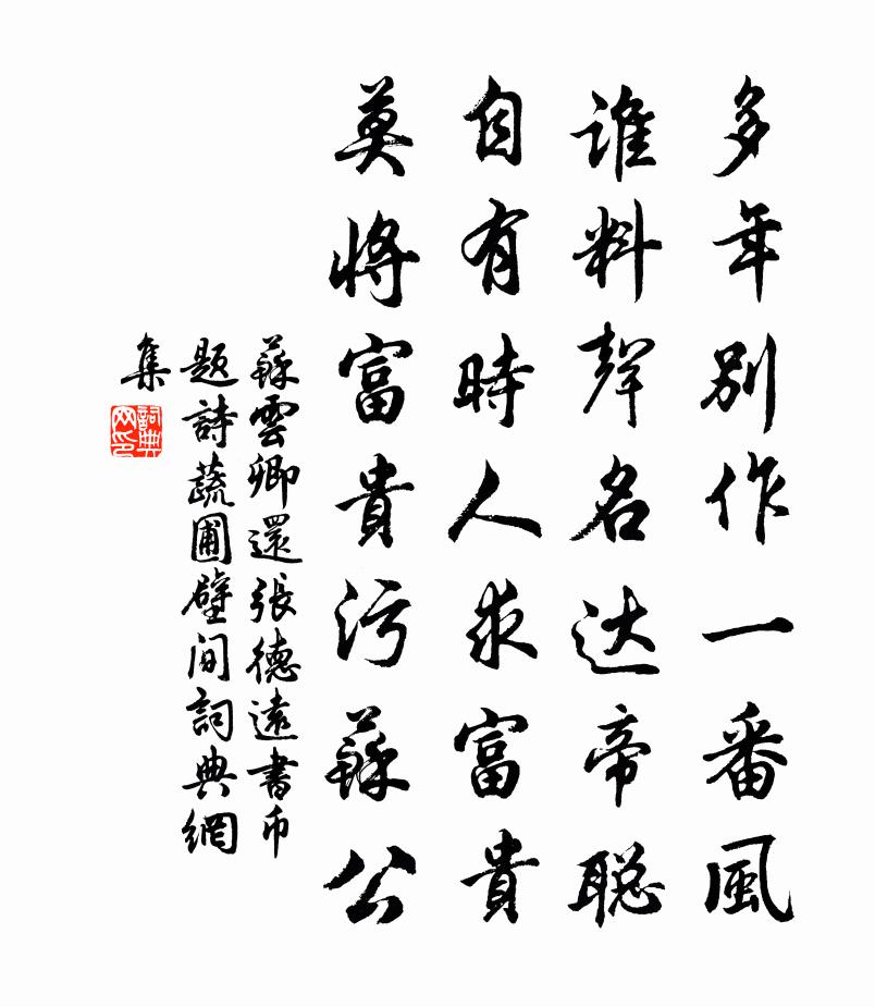詩詞名句歷史字典書法欣賞書法字典國語詞典說文解字康熙字典古漢語字典標 題 作 者 詩 句 還張德遠書幣題詩蔬圃壁間作者:蘇雲卿 朝代:宋代還張德遠書幣題詩蔬圃壁間原文多年別作一番風,誰料聲名達帝聰。自有時人求富貴,莫將富貴污蘇公。詩詞問答問:還張德遠書幣題詩蔬圃壁間的作者是誰?答:蘇雲卿問:還張德遠書幣題詩蔬圃壁間寫於哪個朝代?答:宋代蘇雲卿還張德遠書幣題詩蔬圃壁間書法欣賞還張德遠書幣題詩蔬圃壁間書法作品詩詞推薦依韻和浙憲任度支邵雍〔宋代〕官路尋真已得真,可堪輕負洛城春。江湖想望三千里,休使鄉朋想望頻。偈頌十六首釋如淨〔宋代〕不勞澄九鼎,流動百花新。木雞前樹報,月磨蘿鏡輪。句陳伯強〔宋代〕丈人論行輩,高出五嶽列。出清口陳師道〔宋代〕家世山東飽耕稼,晚托一舟順流下。漁溝寒餅不下箸,推柂轉頭更五夜。平明放溜出清口,霜落潮回霧連野。平淮蝶戀花袁去華〔宋代〕十二峰前朝復暮。空憶蘭台,公子高唐句。斷雨殘雲無覓處。古來離合歸冥數。咫尺明河無限路。牛女佳期,猶解赴大舟投老齋吳則禮〔宋代〕枕籩夢事忽遽蘧,起著青鞋喚竹輿。投老惟堪聽齋鼓,此生端愧坐儒書。十年枵腹猶堪在,一缽連床便有餘。驀直覓句史彌寧〔宋代〕山院清吟雪作堆,錦囊開口等詩來。尚嫌句里欠平淡,忍冷巡檐看老梅。皇后閣端午帖子許應龍〔宋代〕辟邪不用符為佩,續命何須彩結絲。逮下徽音繼樛木,穰穰福履已來綏。失題陸雲〔魏晉〕有美一人。芳問芬葩。嗟我欽羨。夢想光華。亦既至止。上下欣嘉。德馥秋蘭。容茂春羅。淑似令娣。惟予陋何。奉酬襲美苦雨四聲重寄三十二句平上聲陸龜蒙〔唐代〕層雲愁天低,久雨倚檻冷。絲禽藏荷香,錦鯉繞島影。心將時人乖,道與隱者靜。桐陰無深泉,所以逞短綆。送邵兵曹歸江南盧仝〔唐代〕春風楊柳陌,連騎醉離觴。千里遠山碧,一條歸路長。花開愁北渚,雲去渡南湘。東望濛濛處,煙波是故鄉。柳李靜獨〔宋代〕顏色鮮明能幾時,未辭黃葉已辭枝。都緣愛管閒離別,多恨多愁故早衰。大晟府擬撰釋奠十四首佚名〔宋代〕自生民來,誰底其盛。惟王神明,度越前聖。粢幣具成,禮容斯稱。黍稷非聲,惟神之聽。和孫奇父胡寅〔宋代〕攬轡丹青久更恬,掛冠高處靜尤厭。情田不是年年熟,世味安能種種簾。虎鼠乘時爭用舍,鳶魚適意自飛潛。也應夜感自遣(一作失志夜坐思歸楚江,又作苦學吟)孟郊〔唐代〕夜學曉未休,苦吟神鬼愁。如何不自閒,心與身為讎。死辱片時痛,生辱長年羞。清桂無直枝,碧江思舊遊。沁園春侯善淵〔元代〕養浩頤神,離欲澄虛,物外定觀。見玉關傾落,霜千點聚,碧岩漂渺,雪降團團。混內豁然,空中有象,天地相交上巳日劉駕〔唐代〕上巳曲江濱,喧於市朝路。相尋不見者,此地皆相遇。日光去此遠,翠幕張如霧。何事歡娛中,易覺春城暮。物情小苑春望宮池柳色裴達〔唐代〕勝游經小苑,閒望上春城。御路韶光發,宮池柳色輕。乍濃含雨潤,微澹帶雲晴。冪歷殘煙斂,搖揚落照明。幾條和經略煥章朱公千葉白梅詩胡長卿〔宋代〕天憐素質太柔輕,不奈西風雪片凝。故與紅顏如美玉,尚余清影似寒冰。黃香僅可追多葉,重萼堪憐只兩層。欲問王叔武示忠州張使君德遠近詩次韻三首曾協〔宋代〕安心今得法,問道舊名庵。雅致追龐老,高風數泐潭。遠公容入社,彌勒本風龕。寄語邦人道,叢林始罷參。名句推薦無功不賞,無罪不罰。荀子《荀子·王制》 樓前柳,憔悴幾秋風。賀鑄《小重山·花院深疑無路通》 春未來時,酒攜不到千岩路。吳文英《點絳唇·越山見梅》 荷花開後西湖好,載酒來時。歐陽修《採桑子·荷花開後西湖好》 多少新亭揮淚客,誰夢中原塊土。劉克莊《賀新郎·送陳真州子華》 摩頂放踵利天下,為之。孟子《孟子·盡心章句上·第二十六節》 知者順時而謀,愚者逆理而動范曄《後漢書·列傳·朱馮虞鄭周列傳》 黃鸝驚夢破,青鳥喚春還。張弘范《臨江仙·憶舊》 道隱於小成,言隱於榮華。莊子《莊子·內篇·齊物論》 鳥聲有悲歡,我愛口流血。孟郊《苦寒吟》