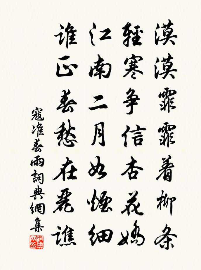 詩詞名句歷史字典書法欣賞書法字典國語詞典說文解字康熙字典古漢語字典標 題 作 者 詩 句 春雨作者:寇準 朝代:宋代春雨原文漠漠霏霏著柳條,輕寒爭信杏花嬌。江南二月如煙細,誰正春愁在麗譙。詩詞問答問:春雨的作者是誰?答:寇準問:春雨寫於哪個朝代?答:宋代問:寇準的名句有哪些?答:寇準名句大全寇準春雨書法欣賞春雨書法作品詩詞推薦送輝上人再住空相趙師秀〔宋代〕忽然聞受請,鐵錫指秋風。寺在寒城裡,州居野水中。生緣拋未盡,舊講續應終。不用相尋別,浮雲去住同。雪晴王洋〔宋代〕牆角寒梅未試監,熬波何事被凝嚴。解教爐火添餘燼,似妒陽烏到短檐。幽谷但期回暖律,交光何用映疏簾。朝來集英殿乾節大燕教坊樂語口號王珪〔唐代〕清蹕傳音紫集來,逡巡萬玉擁鈞台。南山鎮地符長算,北斗傾霞入宴杯。鎬飲篇中魚汪漾,虞韶聲里鳳徘徊。年年四月望再游西湖十首陳造〔宋代〕前時小舫冒氛昏,重到輕橈破麴塵。湖面風煙飽姿態,一番到眼一番新。飯牛歌蒲壽宬〔宋代〕新秧插遍水盈疇,童穉相呼去飯牛。極目平坡菸草細,歌聲何處雨颼颼。陳叔進秘書送鶉分粟為謝乃辱佳句次韻發笑周必大〔宋代〕有鶉不博禾三百,卻向枯河擲釣緡。他日陳平宰天下,如瑜翻作指囷人。依韻和長安龍圖陳學士登煕煕台之什二首魏野〔宋代〕鶉野龍圖陳學士,迎秋登眺稱英奇。一聲玉管風流處,百尺金台雨霽時。雲近上清爭縹緲,山連太白斗參差。碧紗清平樂 白芍藥劉敏中〔元代〕何年金屑。飛上玲瓏雪。一樹風情誰解說。只有盈盈夜月。牡丹紅葉相夸。鉛華各自名家。為向看花人道,此花不夕陽吳錫疇〔宋代〕夕陽牛背數家村,一笛聲中欲斷魂。人世百年雙短鬢,不知禁得幾黃昏。行香子吳潛〔宋代〕行香子,走筆和韻世事塵輕,寵辱何驚。□不須、更問君平。一帆客棹,幾曲漁汀。正年華晚,露華澹,月華明。謝張德恭送糟蚶三首陳造〔宋代〕壓倒淤泥白蓮藕,半捐介甲露濃纖。玉川水厄那知此,急具姜蔥喚阿添。谷簾下二首白玉蟾〔宋代〕步入青紅紫翠間,仙翁朝斗有遺壇。竹梢露重晝猶濕,松里雲深夏亦寒。召公諫厲王止謗佚名〔先秦〕厲王虐,國人謗王。召公告曰:“民不堪命矣!”王怒,得衛巫,使監謗者。以告,則殺之。國人莫敢言,道路以風雨旬日春後始晴陸游〔宋代〕風吹過雁作斜行,雨洗殘梅只淡香。南浦春回波漸綠,東庵睡起日初長。詩囊屬稿慚新思,博齒爭豪悔昔狂。莫向次韻裴仲謀同年黃庭堅〔宋代〕交蓋春風汝水邊,客床相對臥僧氈。舞陽去葉才百里,賤子與公皆少年。白髮齊生如有種,青山好去坐無錢。煙沙負河陽河清濟源三處之約以詩愧謝之邵雍〔宋代〕秋霖積久泥正滑,念念何日天開晴。親朋延望固已甚,衰軀怯寒難遠行。一程相去雖不遠,兩次講行終未成。二事送石揚休還蜀歐陽修〔宋代〕長愛謫仙夸蜀道,送君西望重吟喔。路高黃鵠飛不到,花發杜鵑啼更多。清禁寒生鳳池水,繡衣榮照錦江波。昔年秋莫西軒邵雍〔宋代〕繞欄種菊一齊芳,戶牖軒窗總是香。得意不能無興詠,樂時況復遇豐穰。深秋景物隨宜好,向老筋骸粗且康。飲罷仙居縣傅夢得〔宋代〕經過太匆匆,山行去路通。客衣沾曉露,縣陌帶春風。沽酒從村市,騎牛任老翁。相逢有吟者,約我醉城中。繡鶴竹張舜民〔宋代〕好客精神來萬里,此君風格聳雙枝。丹青絕筆真難得,不似佳人粉錦時。名句推薦蠶無夏織桑充寨,田廢春耕犢勞軍。杜荀鶴《題所居村舍》 亂山殘雪夜,孤燭異鄉人。崔塗《除夜 / 巴山道中除夜書懷 / 除夜有懷》 稻花香里說豐年。聽取蛙聲一片。辛棄疾《西江月·夜行黃沙道中》 百年歌自苦,未見有知音。杜甫《南征》 開荒南野際,守拙歸園田。陶淵明《歸園田居·其一》 不是花中偏愛菊,此花開盡更無花。元稹《菊花》 君子貴其身而後能及人,是以有禮。左丘明《左傳·昭公·昭公二十五年》 照野旌旗,朝天車馬,平沙萬里天低。周密《高陽台·送陳君衡被召》 江山故宅空文藻,雲雨荒台豈夢思。杜甫《詠懷古蹟五首·其二》 蟬鳴空桑林,八月蕭關道。王昌齡《塞下曲四首》