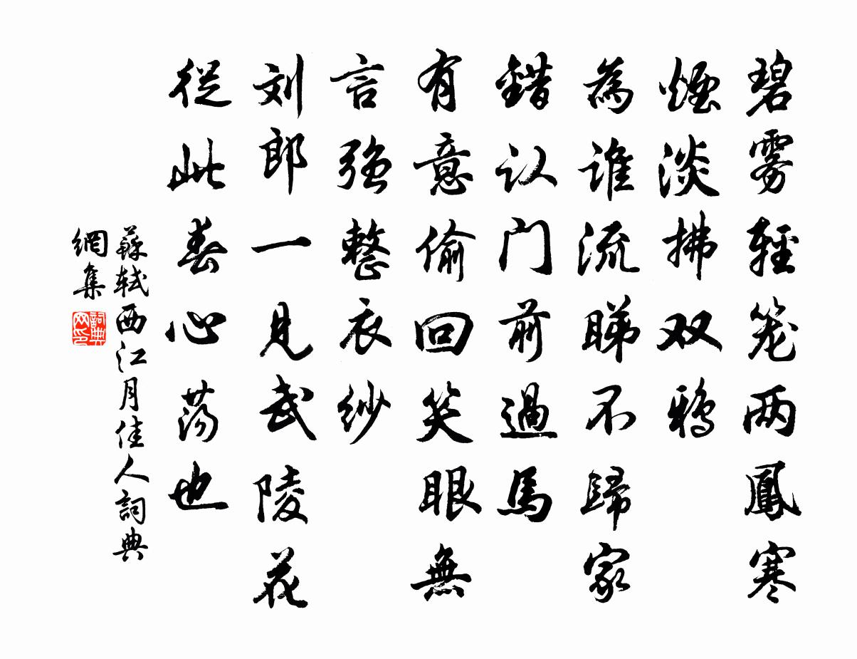 碧霧輕籠兩鳳,寒煙淡拂雙鴉。為誰流睇不歸家。