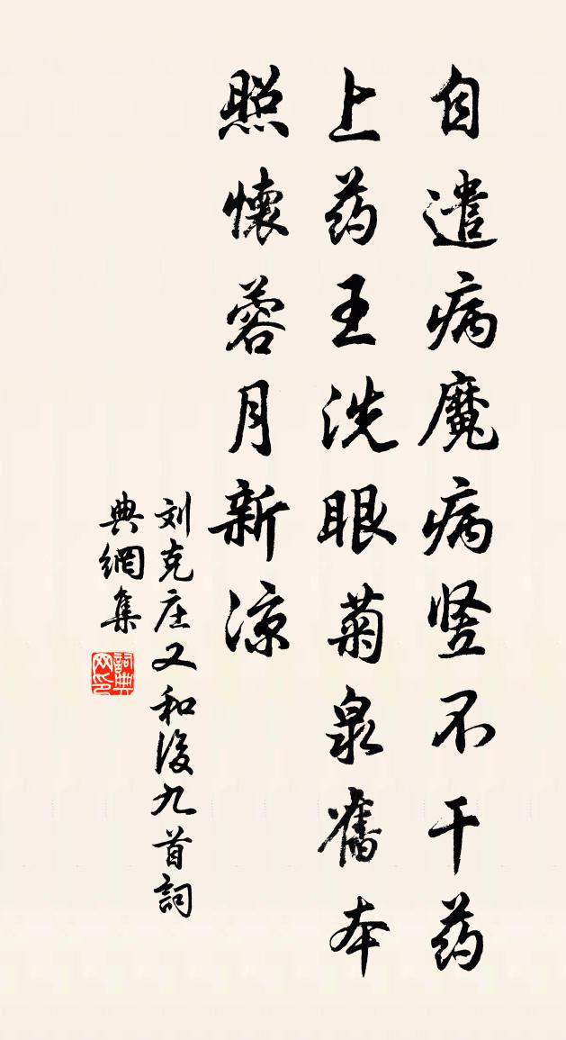 自遣病魔病豎,不乾藥上藥王。洗眼菊泉舊本,照懷蓉月新涼。