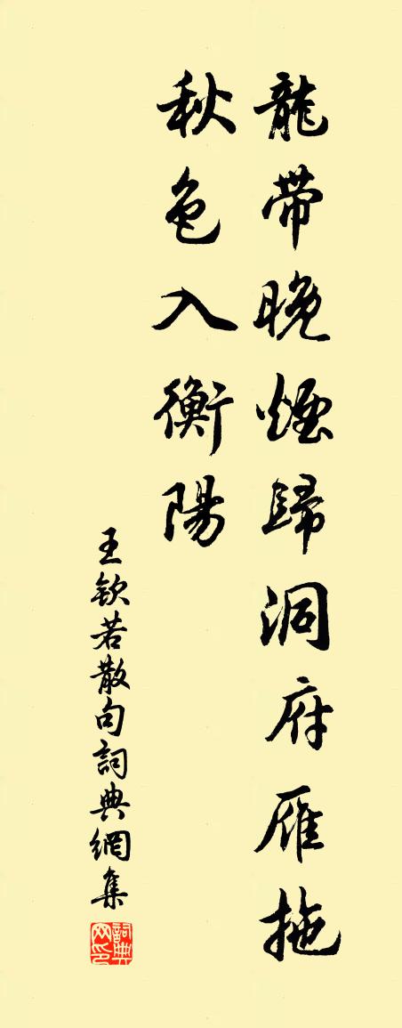 詩詞名句歷史字典書法欣賞書法字典國語詞典說文解字康熙字典古漢語字典標 題 作 者 詩 句 句作者:王欽若 朝代:宋代句原文龍帶晚煙歸洞府,雁拖秋色入衡陽。詩詞問答問:句的作者是誰?答:王欽若問:句寫於哪個朝代?答:宋代王欽若句書法欣賞句書法作品詩詞推薦金字經·樂閒張可久〔元代〕百年渾似醉,滿懷都是春,高臥東山一片雲。嗔,是非拂面塵。消磨盡,古今無限人。苔蘚山歌顧況〔唐代〕野人夜夢江南山,江南山深松桂閒。野人覺後長嘆息,帖蘚粘苔作山色。閉門無事任盈虛,終日欹眠觀四如。一如劉行簡見借詩稿以長句歸之沈與求〔宋代〕文章偏忌聲名早,富貴政須門第好。了知二物不相關,風月膏粱兼者少。劉郎天韻真不凡,飛騰宜在蓬萊島。年來送朱季公守封川樓鑰〔宋代〕韶陽生長十餘年,城郭重經固宛然。嘆息紫微仙去久,尚余遺墨照山川。送長兄赴調上都次田俊卿韻二首廖行之〔宋代〕從今日日聽新除,去馬加鞭不用徐。最是好為三釜計,不妨頻寄萬金書。君行霄漢無留軔,我得江湖欲縱魚。更念深春張耒〔宋代〕啾啾凍草群飛雀,裊裊高林獨嘯猿。忽憶淮南春意動,早梅池館斷鴻天。見獨斯行叔綺子為赴春試一出江頭送別殊令牽林亦之〔宋代〕巴闌獨還歲月深,相送出門自沉吟。十年交舊總如許,狂歌一曲傷人心。今人讀書如過客,壺飧只向市頭索。吾曹西域圖黃文雷〔宋代〕大哉天地間,品類不可齊。誰為好事人,貌此縣度西。松花瑣碎沙草肥,是間可牧羊千蹄。可憐群鹿正走險,或爾送葉夢錫赴荊南韓元吉〔宋代〕南郡開邊古上流,君王側席用嘉謀。壯懷何止入雲夢,雄略行看半九州。風勁鼓聲連岸動,雪晴江影與天浮。一樽和魯望風人詩三首皮日休〔唐代〕刻石書離恨,因成別後悲。莫言春繭薄,猶有萬重思。鏤出容刀飾,親逢巧笑難。日中騷客佩,爭奈即闌乾。江上偶成二首張耒〔宋代〕烏啼宮直散,歸舍日猶長。暗樹殘春綠,迴風欲雨涼。久知痴有絕,端為酒成忙。可是嘲須解,平生一漫郎。休日欲報謁林子長值雨不能前用小詩以謝不敏虞儔〔宋代〕朝雨城南柳色新,溪光溶漾宛如銀。地偏心遠開三徑,風引船回欠一巡。二月欲來正月盡,三分已過一分春。鶯啼資中八首范祖禹〔宋代〕五月江流萬賈船,迅如飛電擘群山。荊雲峽雨須臾過,白帝江陵朝暮間。南樓李彌遜〔宋代〕百尺危樓枕水濱,風煙入眼亂紛紛。趁虛漁唱來成市,入壠田歌去作群。閣雨雲深山著帽,駕潮風急浪翻雲。寄言泛清波摘遍晏幾道〔宋代〕催花雨小,著柳風柔,都似去年時候好。露紅煙綠,盡有狂情斗春早。長安道。鞦韆影里,絲管聲中,誰放艷陽輕悟黃梁王丹桂〔元代〕浮名浮利兩悠悠。終不道,把身囚。好貪多敗更多憂。又著個,甚來由。願人識破早抽頭。從前事,盡都休。飄飄都城初秋和趙京府朱浚〔宋代〕宇宙清愁望眼中,誰將涼雨借龍公。秋風夜入關河迥,破賊紅旗{左矢右先}曉空。宮詞王仲修〔宋代〕玲瓏翠綱隔塵埃,鑒裹雙鸞掛寶台。睡起日高花影轉,玉盤香篆半成灰。次韻雨阻遊人方岳〔宋代〕村塢花飛片片紅,橫遭澀雨又慳風。無何春事三分過,不肯遊人一笑同。窮勝園林惟我輩,儻來軒冕付諸公。煙雲戲題輞川別業王維〔唐代〕柳條拂地不須折,松樹披雲從更長。藤花欲暗藏猱子,柏葉初齊養麝香。名句推薦田野荒而倉廩實,百姓虛而府庫滿,夫是之謂國蹶。荀子《荀子·富國》 野水參差落漲痕,疏林欹倒出霜根。蘇軾《書李世南所畫秋景二首》 醉後莫思家,借取師師宿。晏幾道《生查子·落梅庭榭香》 如絲苣甲飣春盤,韭葉金黃雪未乾。張耒《春日·如絲苣甲飣春盤》 敏捷詩千首,飄零酒一杯。杜甫《不見》 一去無訊息,那能惜馬蹄。薛道衡《昔昔鹽》 夫寵而不驕,驕而能降,降而不憾,憾而能珍者鮮矣。左丘明《左傳·隱公·隱公三年》 蓮渚收香,蘭皋浮爽,涼思頓欺班扇。王月山《齊天樂·夜來疏雨鳴金井》 江漢思歸客,乾坤一腐儒。杜甫《江漢》 秋風夜渡河,吹卻雁門桑。王昌齡《塞下曲·秋風夜渡河》