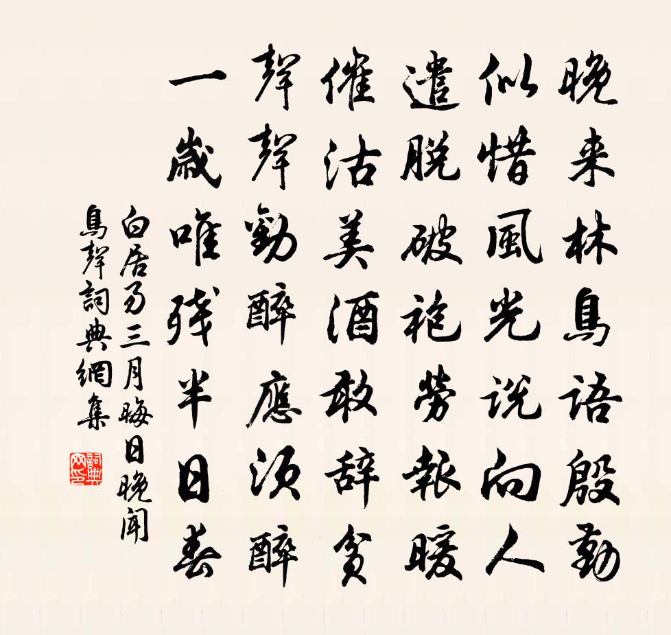 晚來林鳥語殷勤,似惜風光說向人。遣脫破袍勞報暖,催沽美酒敢辭貧?聲聲勸醉應須醉,一歲唯殘半日春。